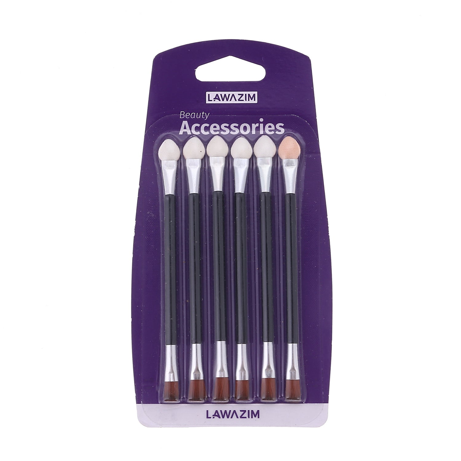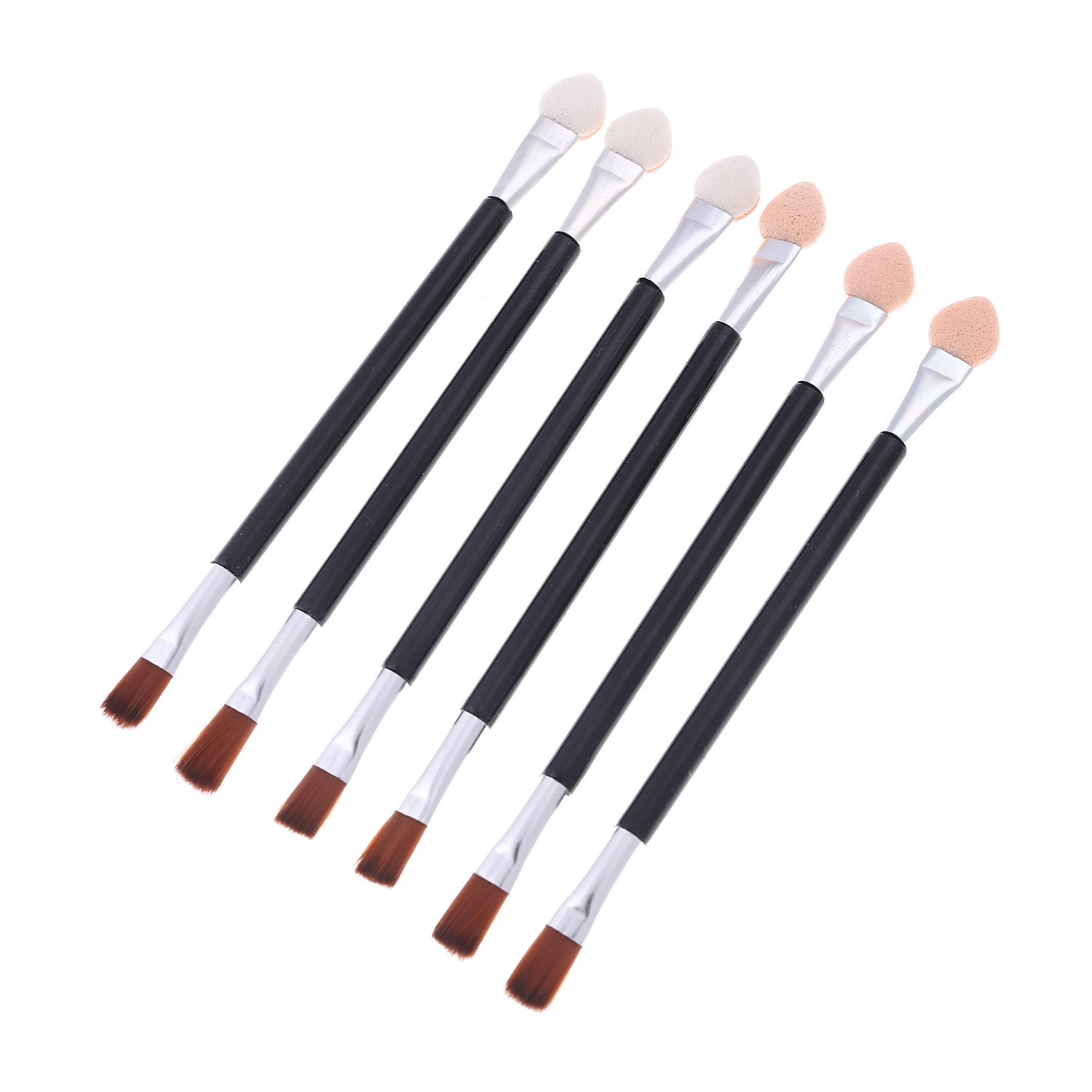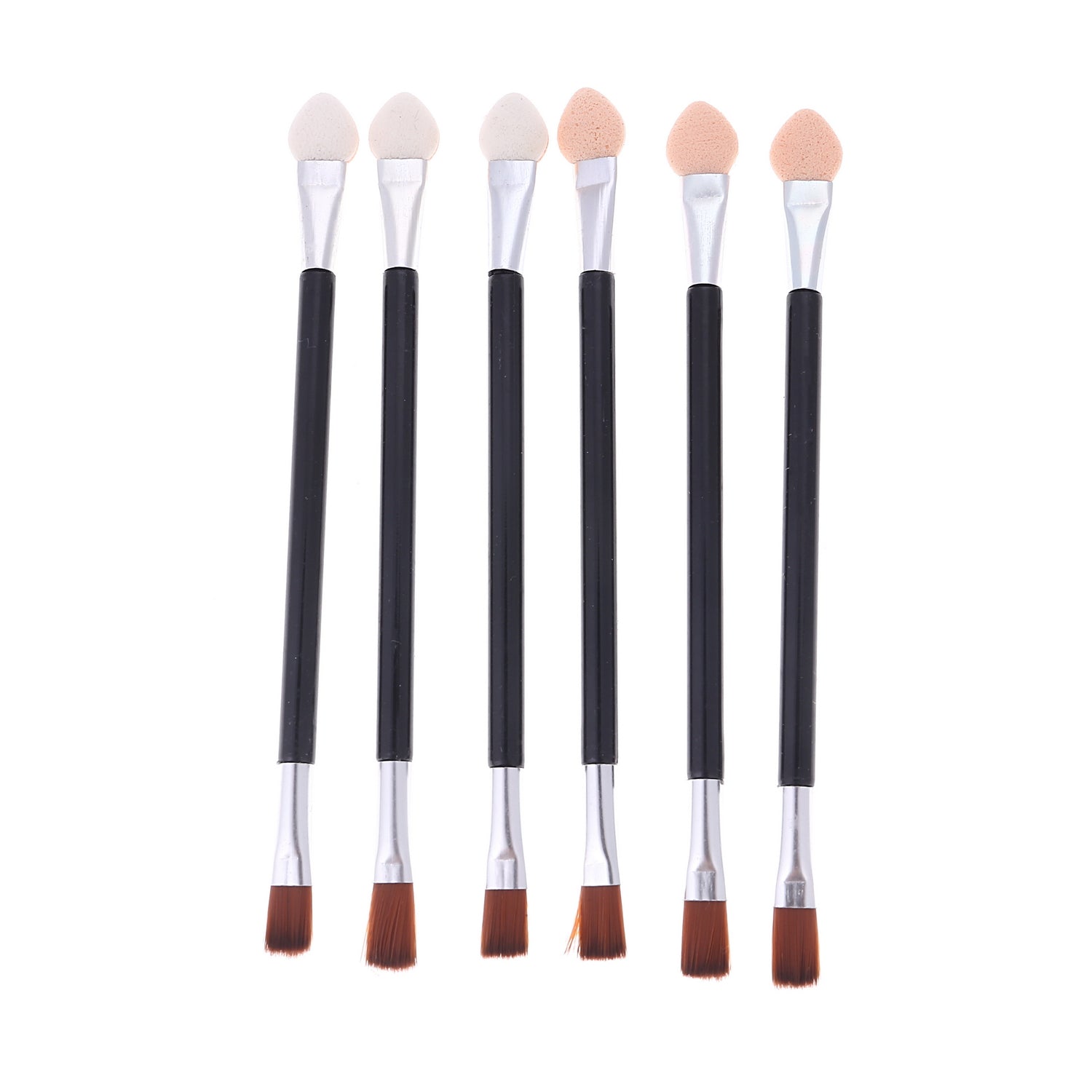 إسفنجة وفرشاة تطبيق مزدوجة الجوانب من 6 قطع - أسود/فضي/بيج - أداة مكياج ظلال العيون