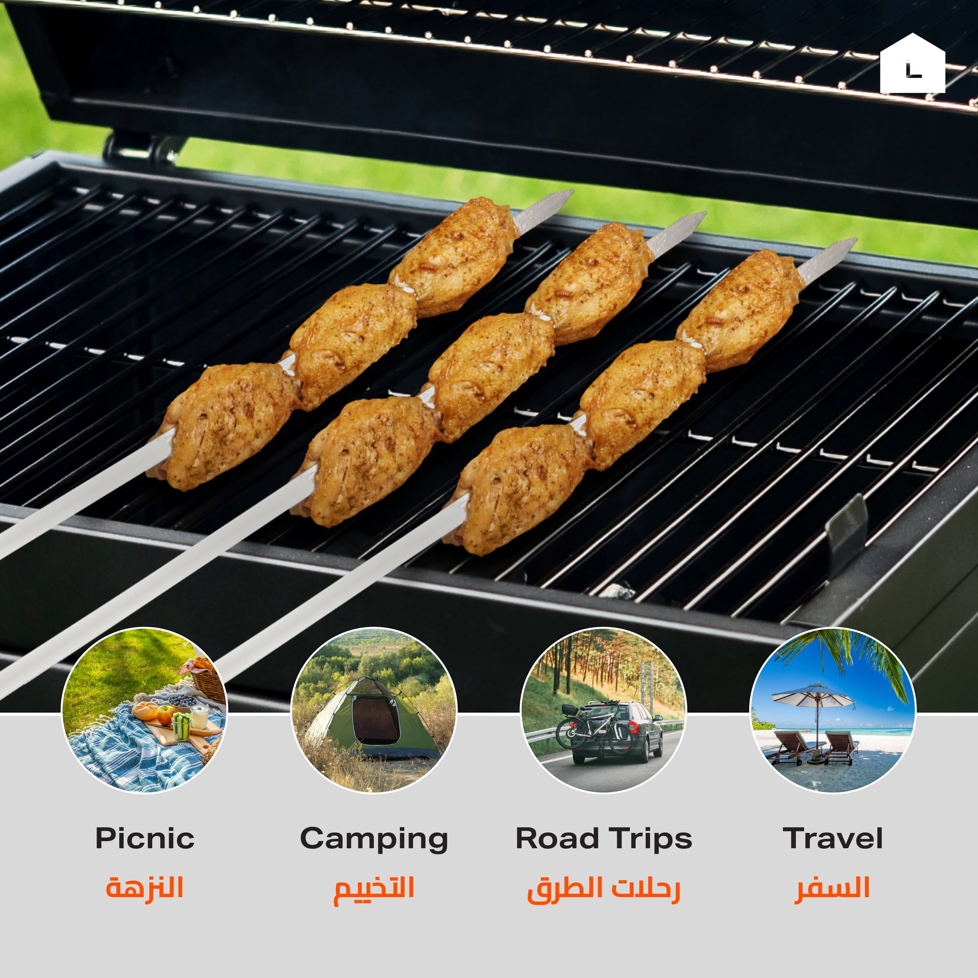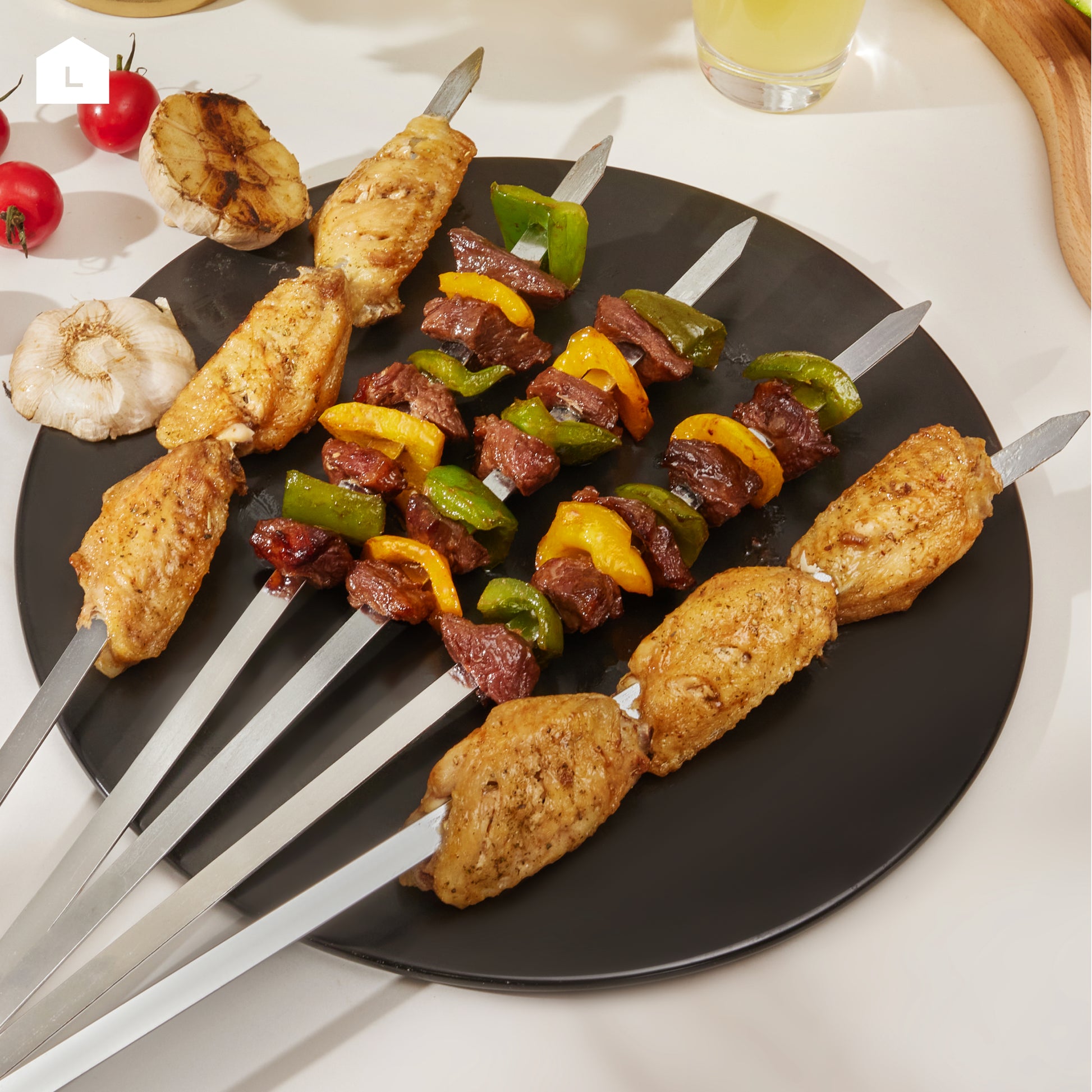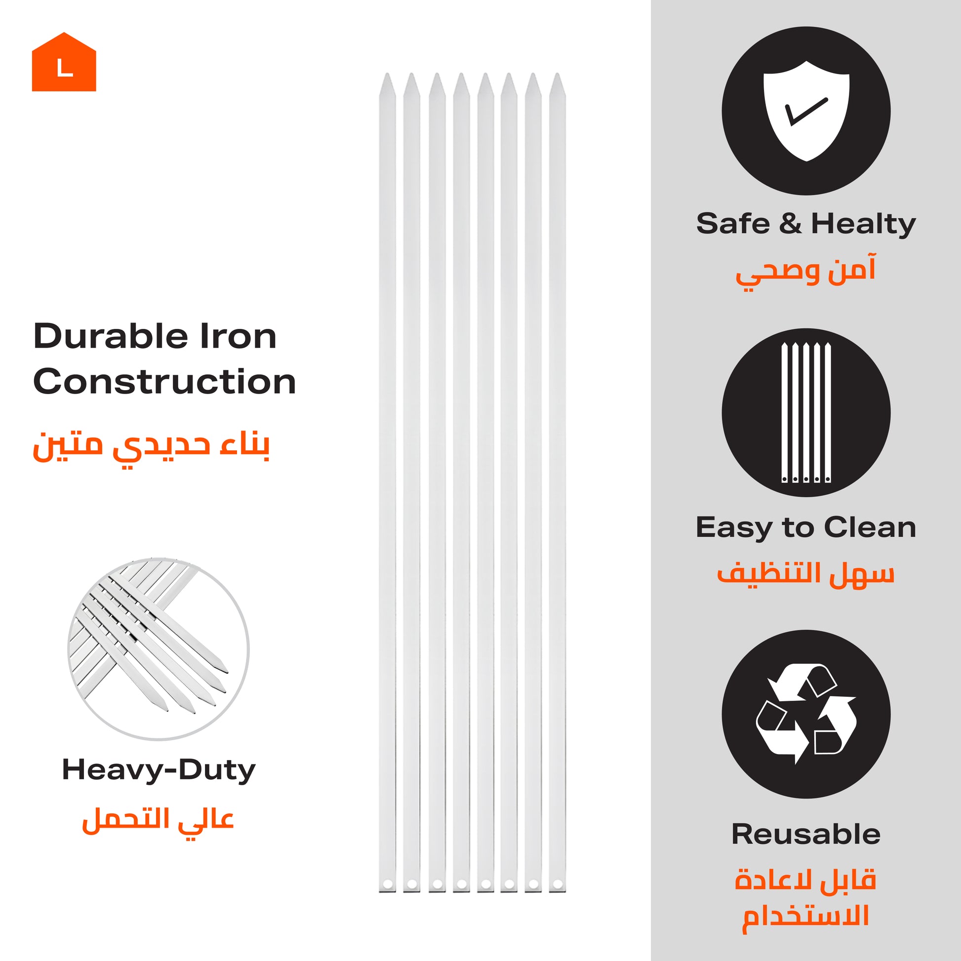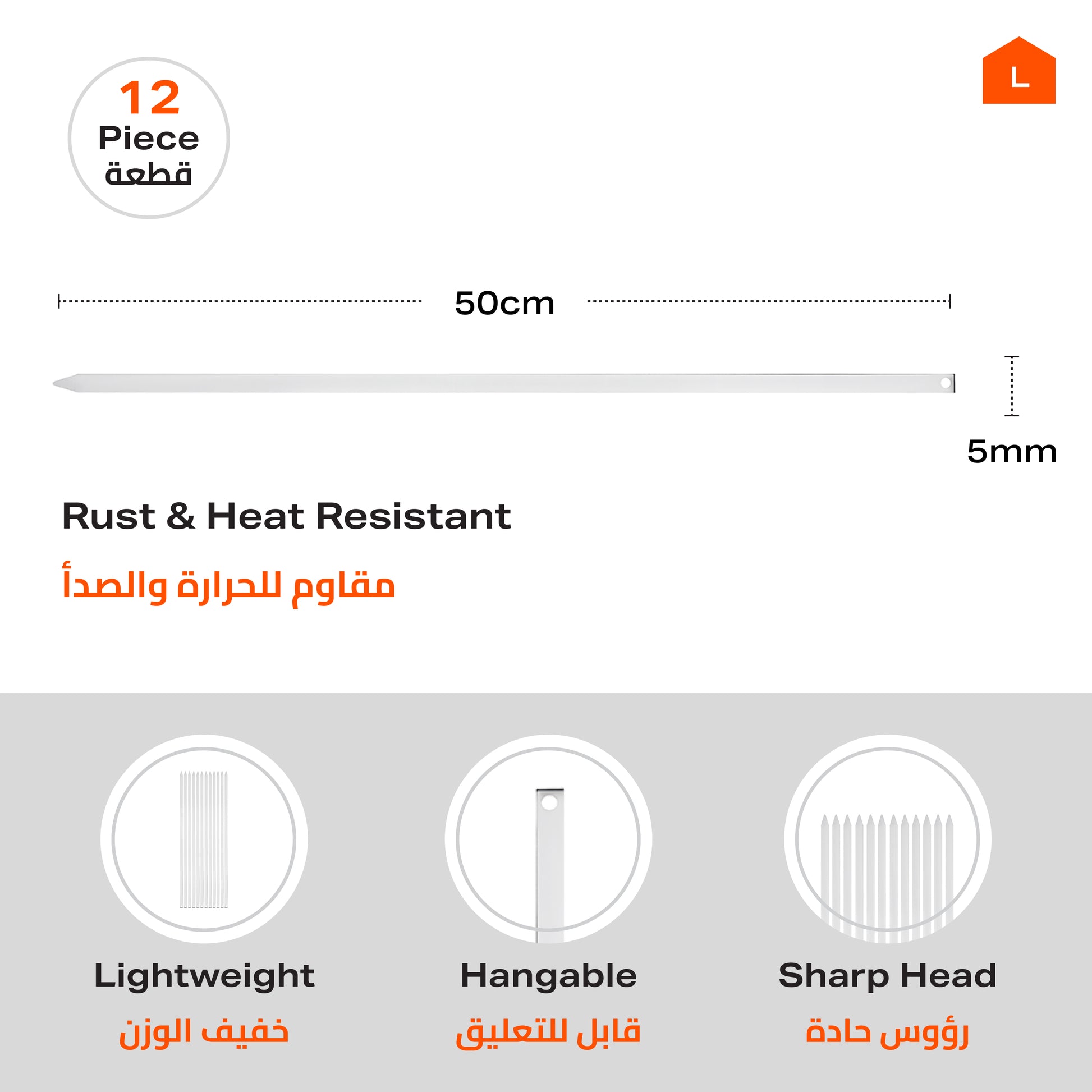أسياخ شواء شيش طاووق - 12 قطعة 50 سم×5 مم×5 مم - أسياخ حديدية للشيش طاووق والكباب واللحوم والخضروات