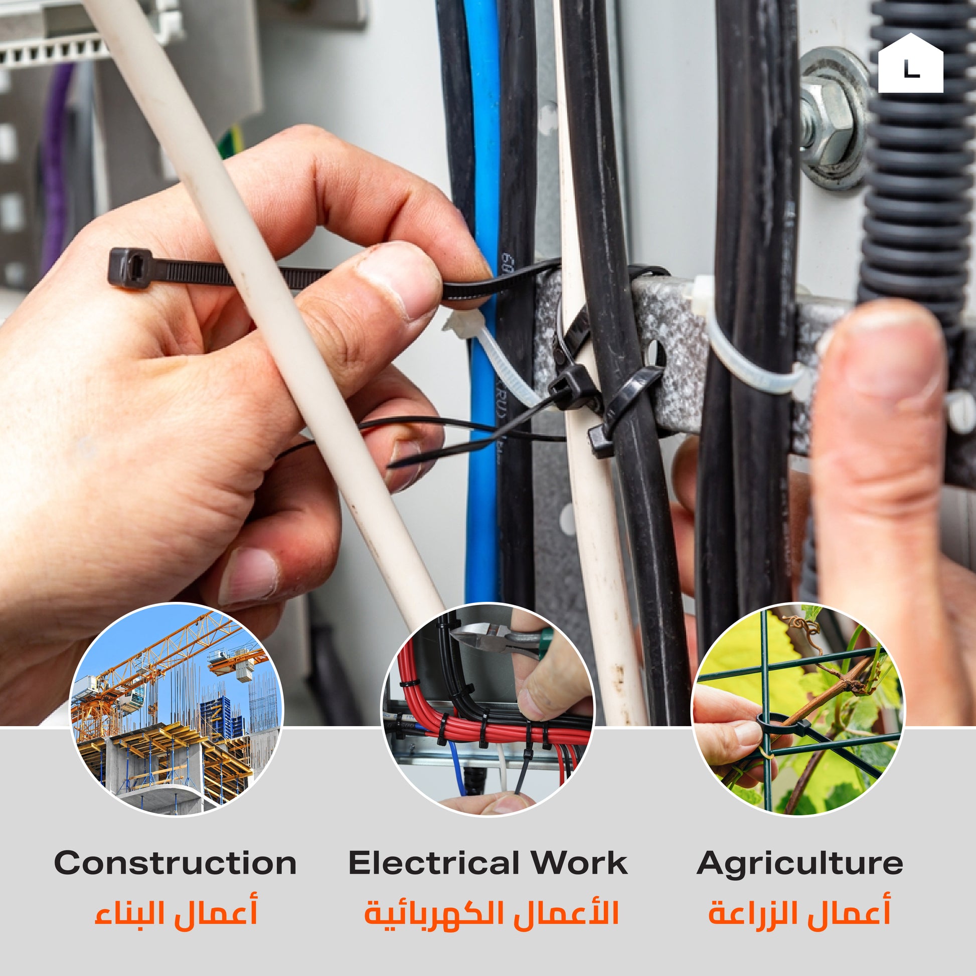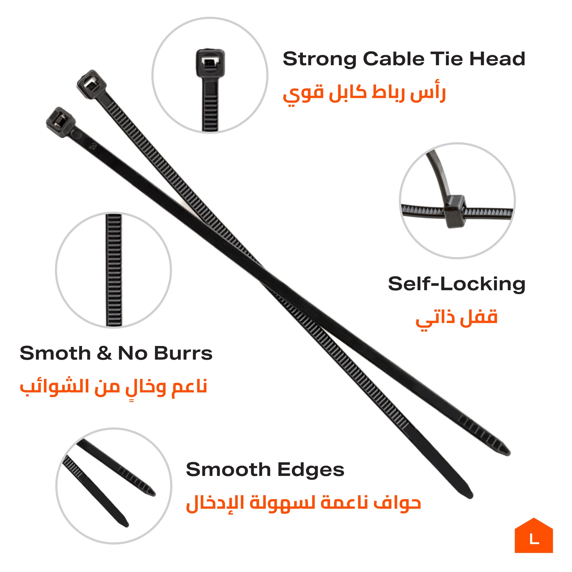 ربطة كابلات - عبوة من 60 قطعة، 300 مم × 4 مم من أربطة النايلون السوداء لإدارة الكابلات والأعمال الكهربائية والاستخدام المنزلي والسيارات