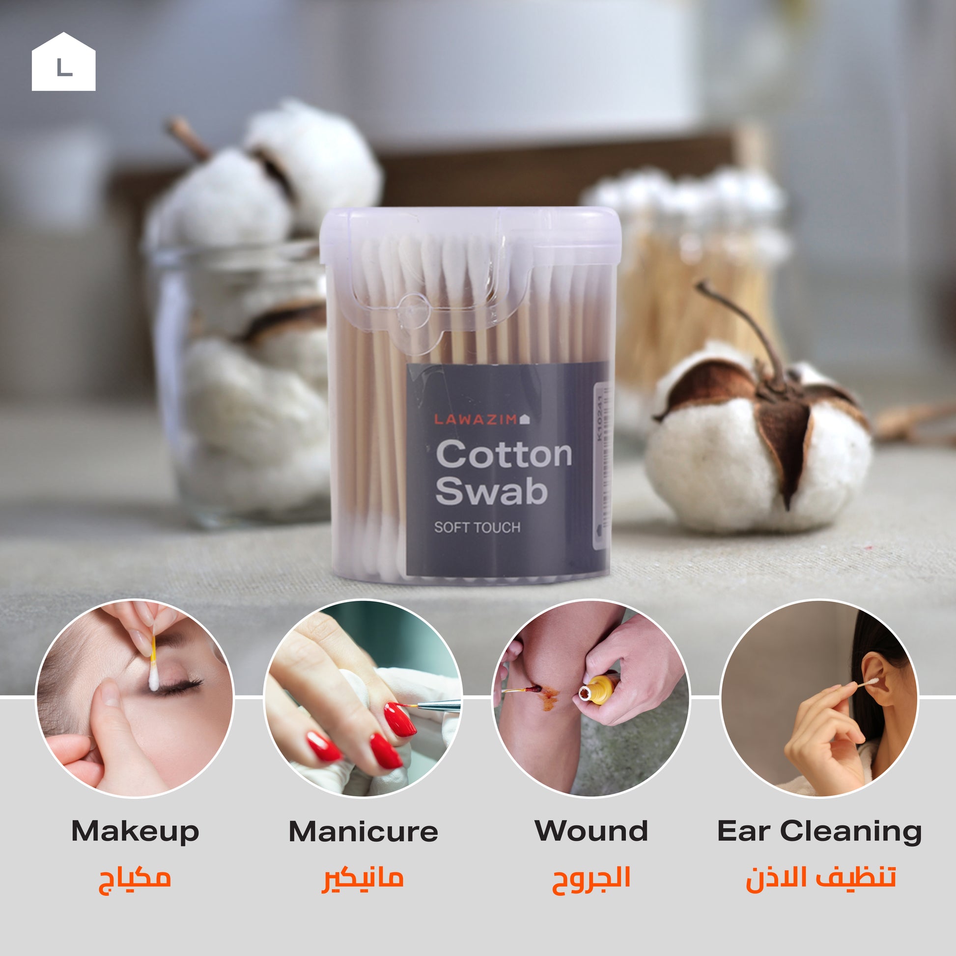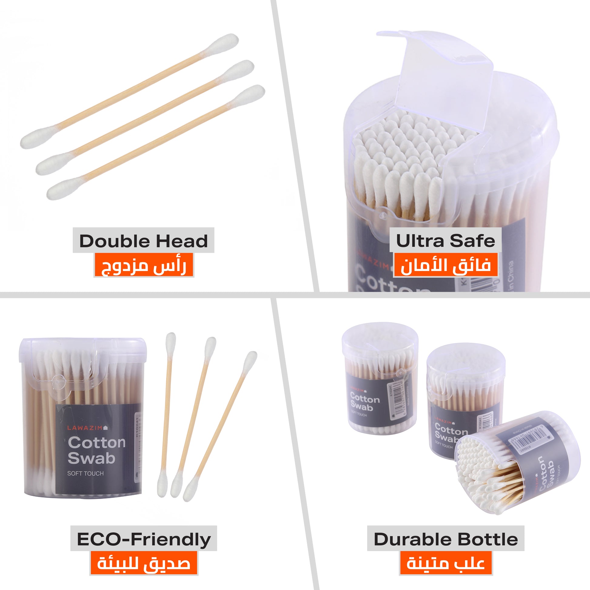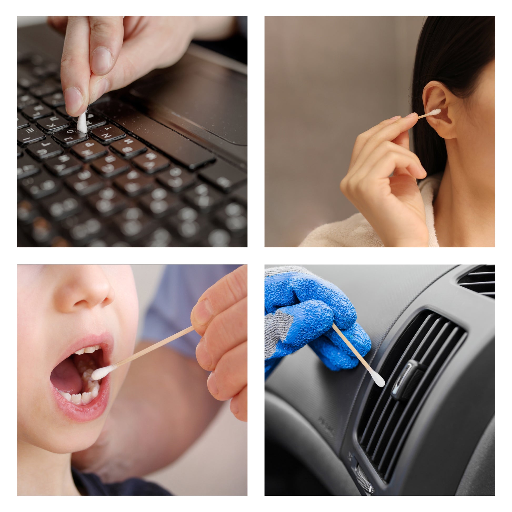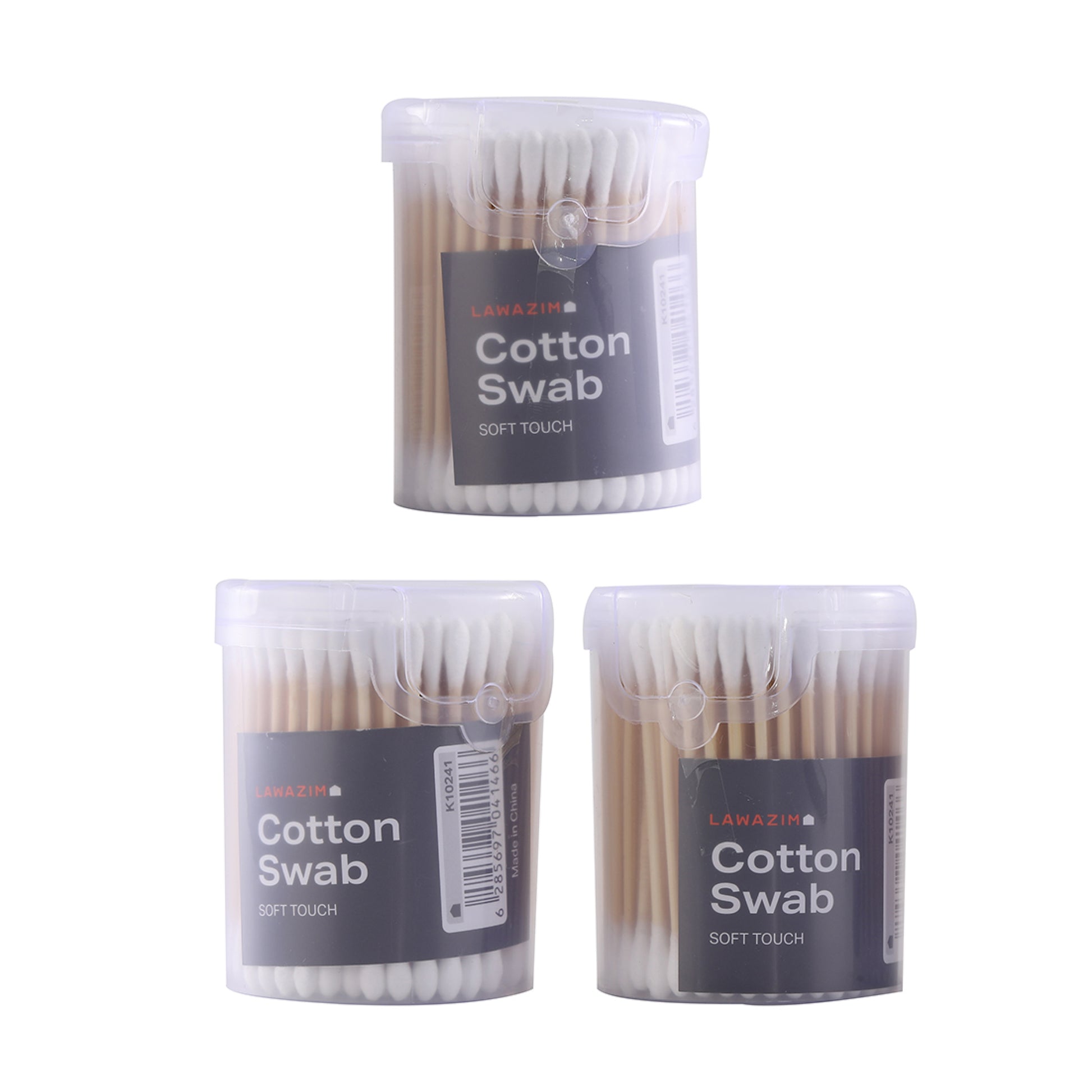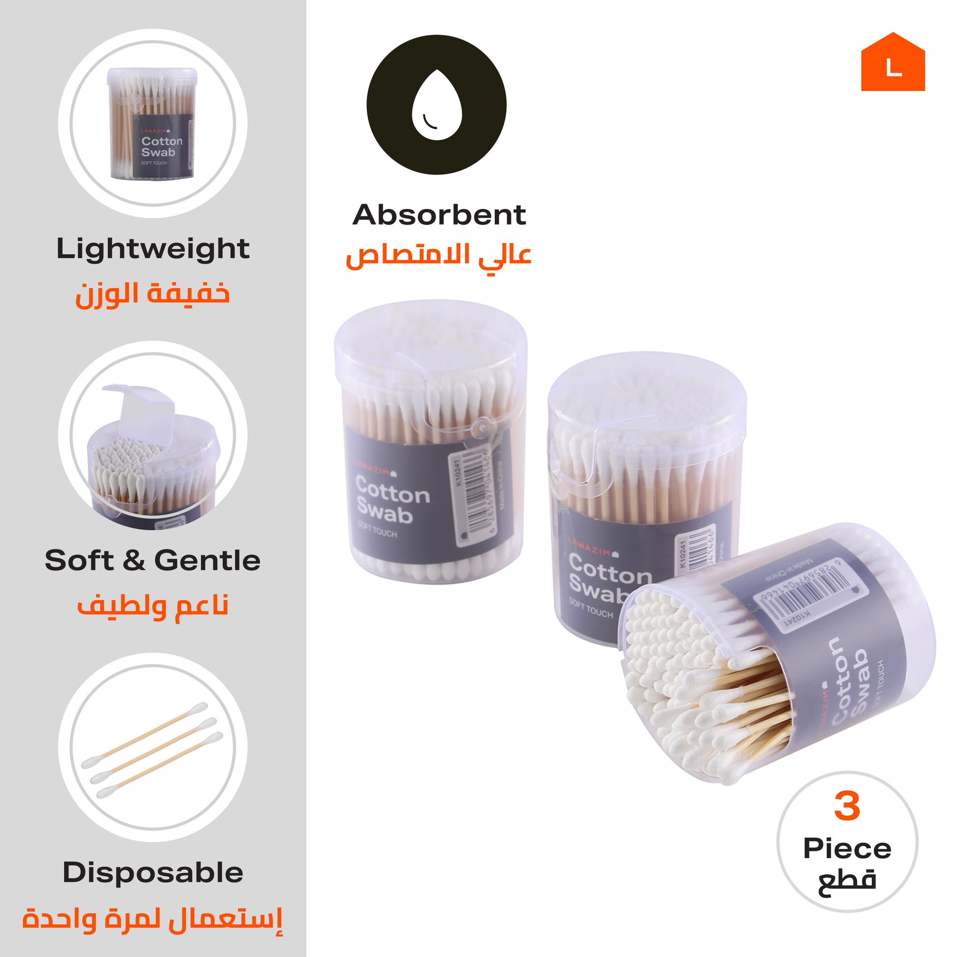 مجموعة أعواد قطنية - مجموعة من 3 قطع - أعواد قطنية طبيعية للأذن للمكياج والتنظيف اليومي والعناية بالحيوانات الأليفة