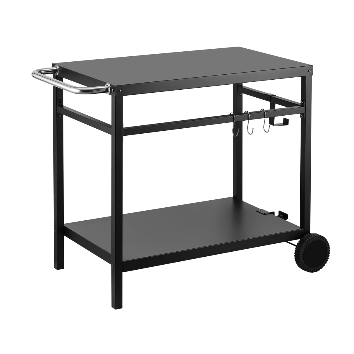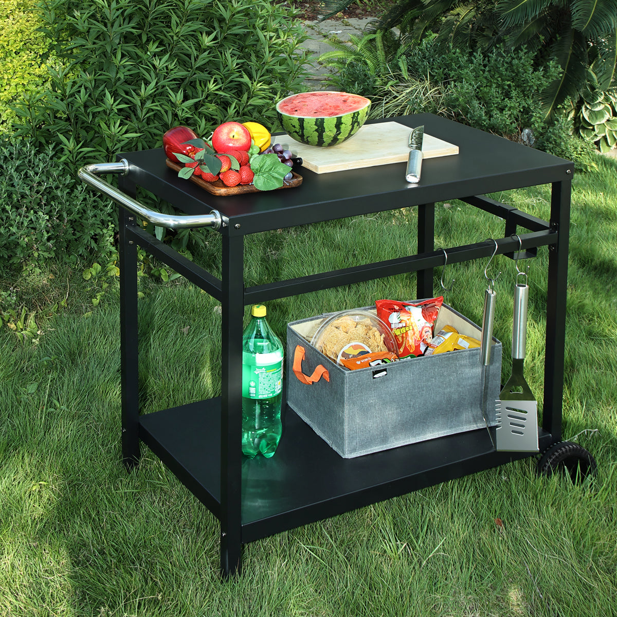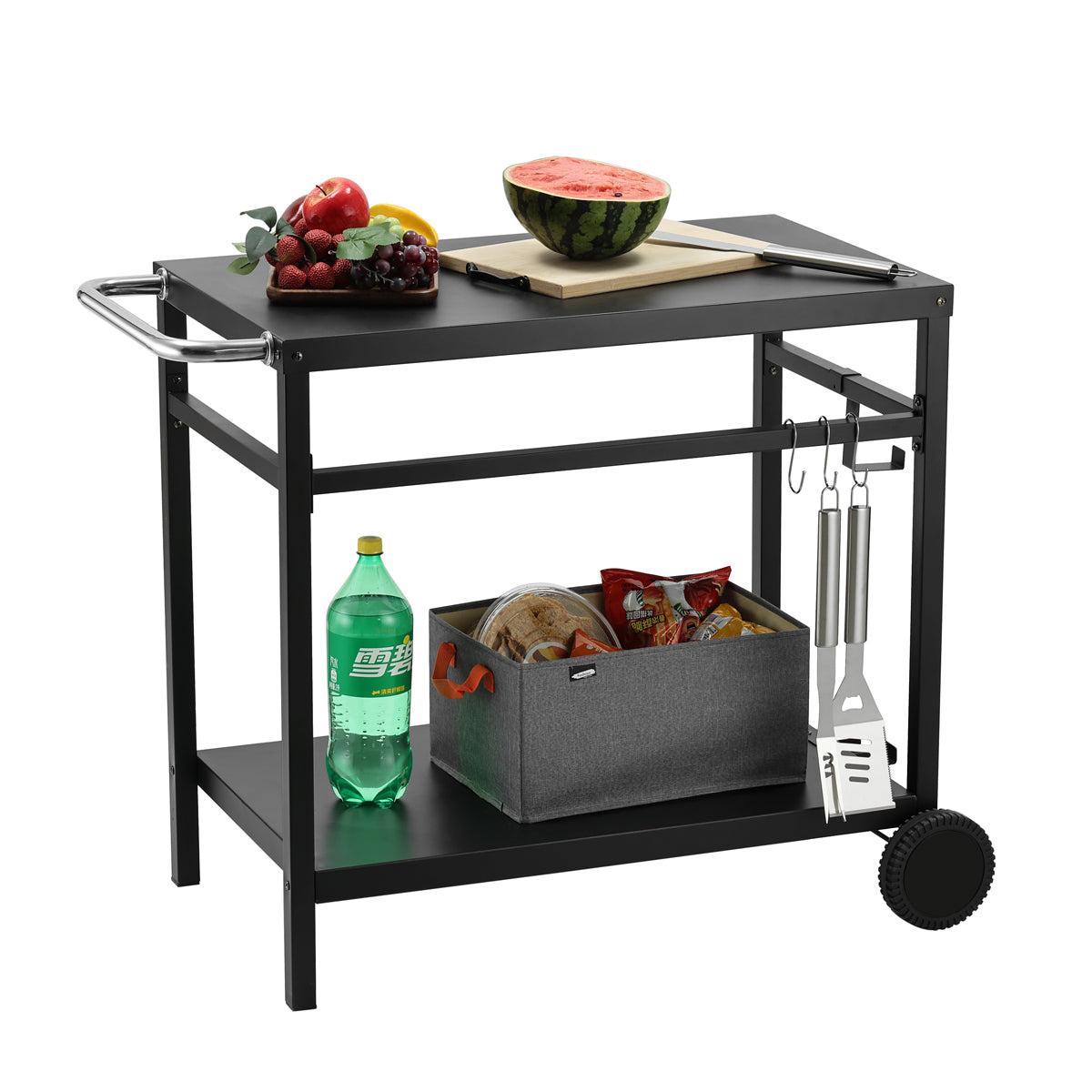 عربة طعام مع رف مزدوج وخطافات ومقبض جانبي - عربة طعام متعددة الاستخدامات بطابقين للاستخدام الخارجي والتخييم