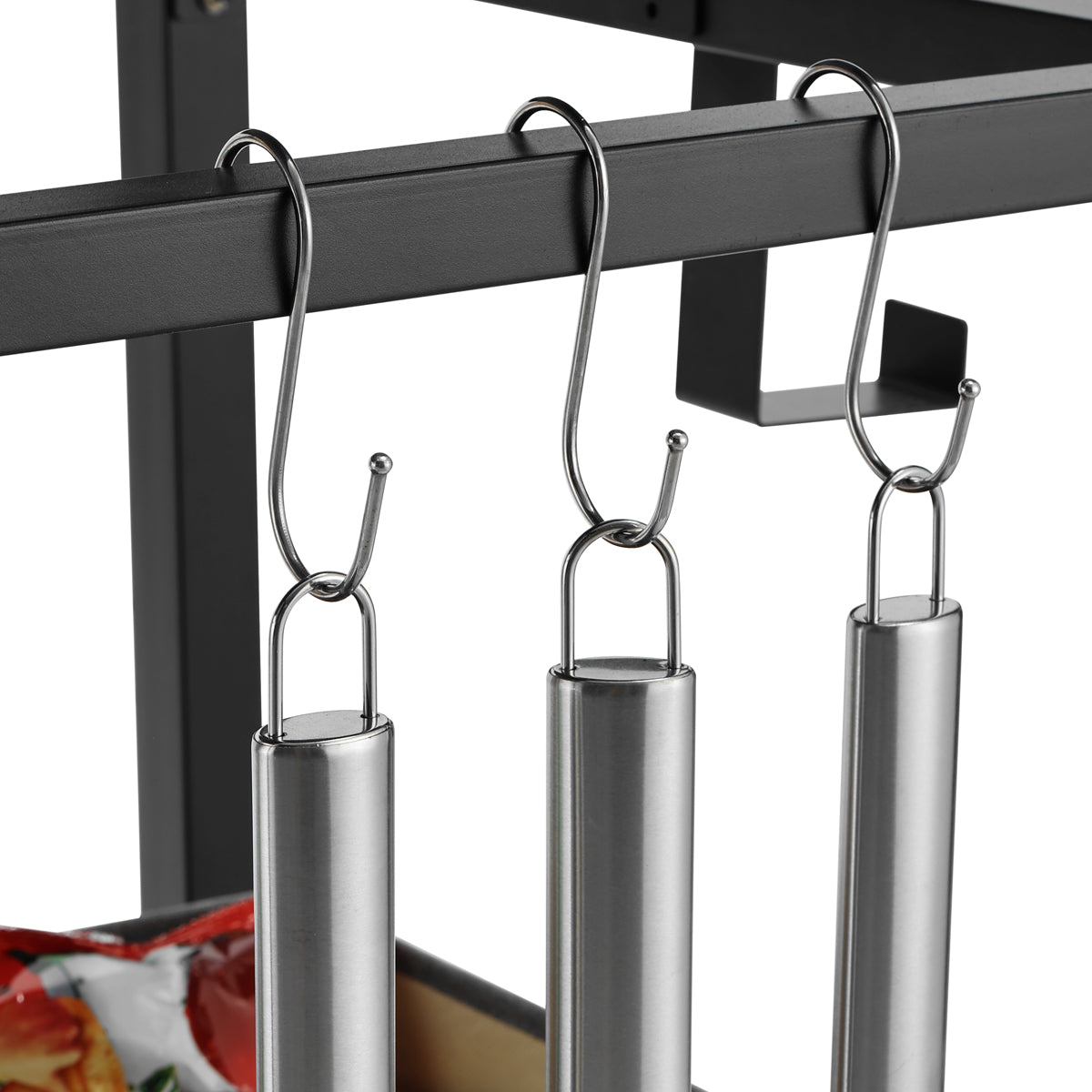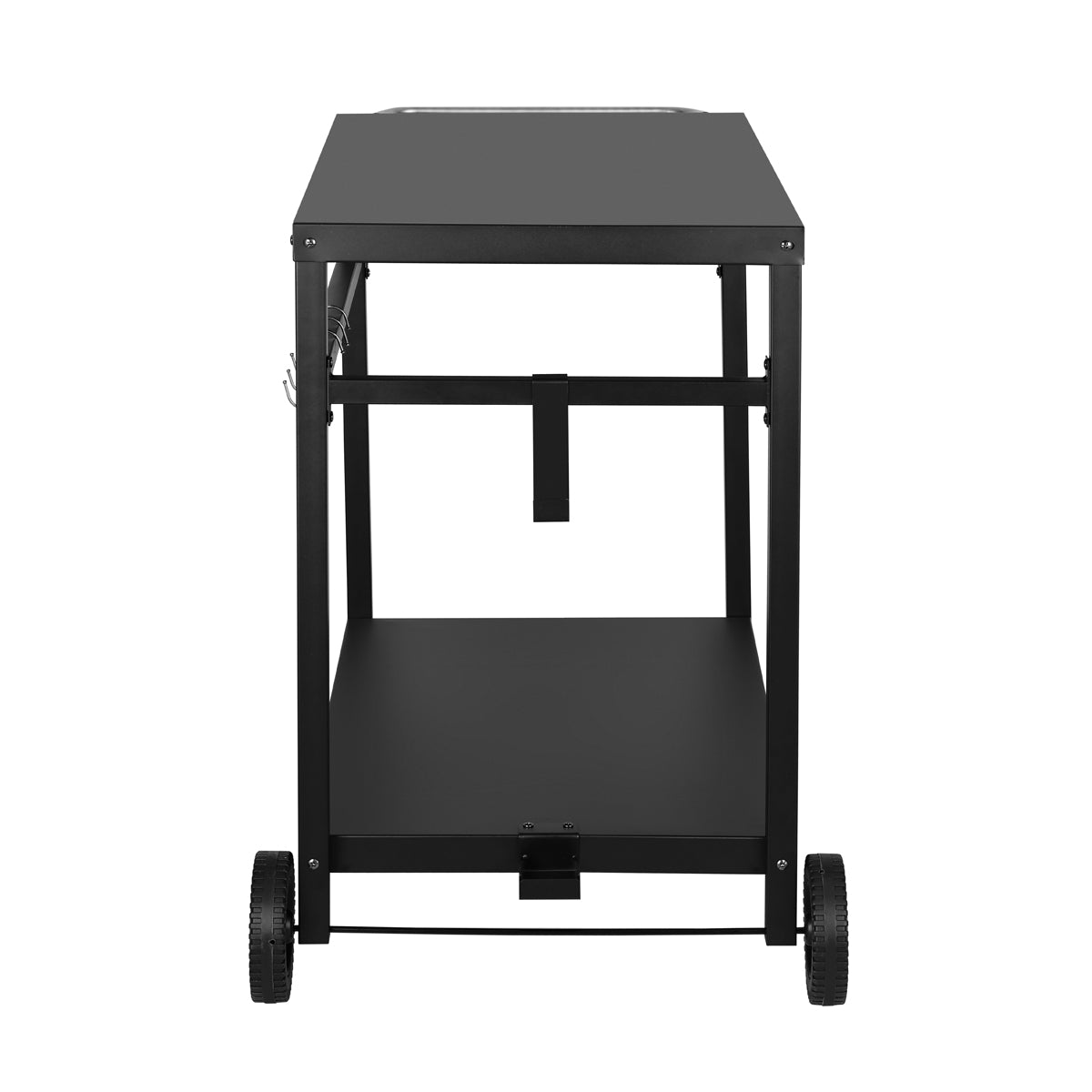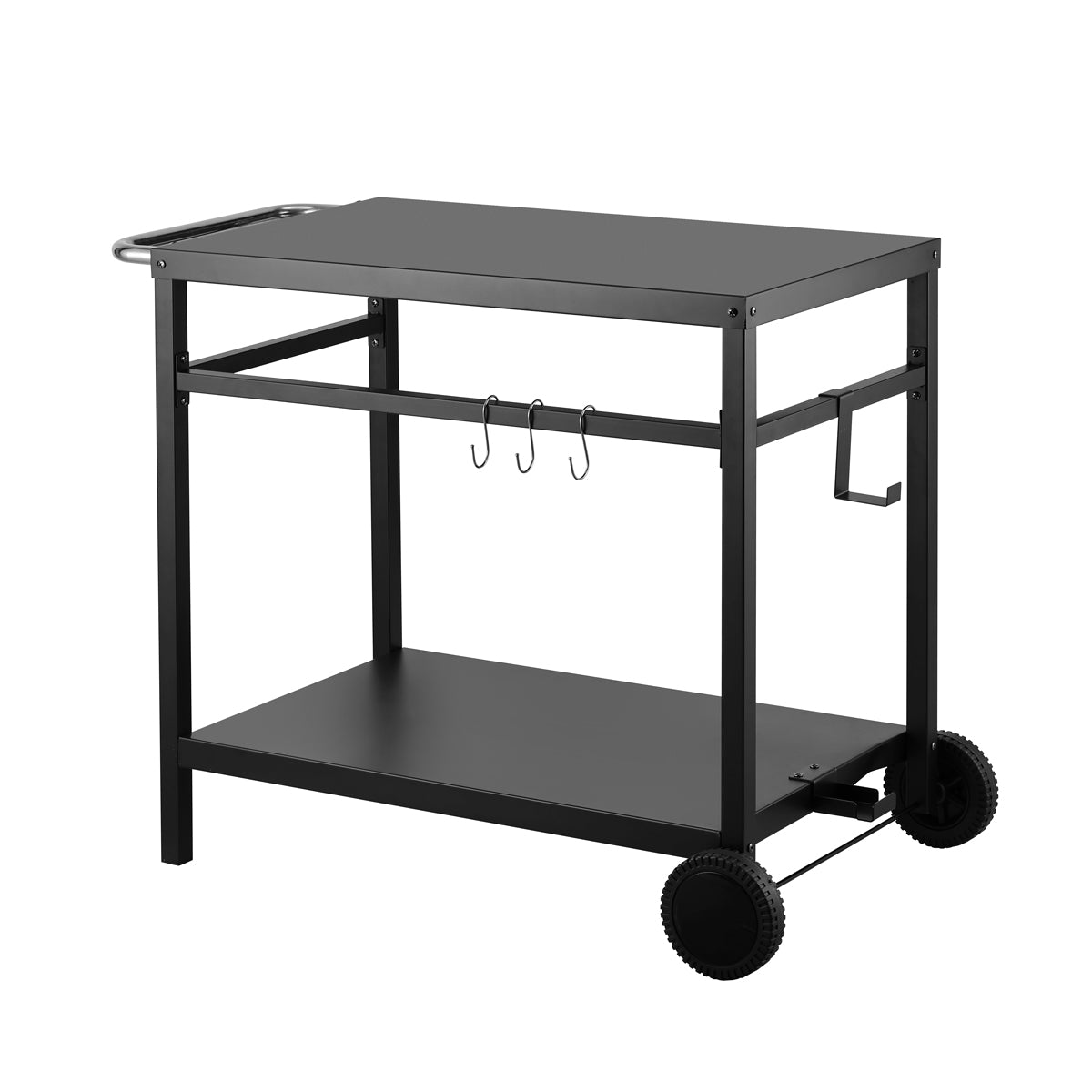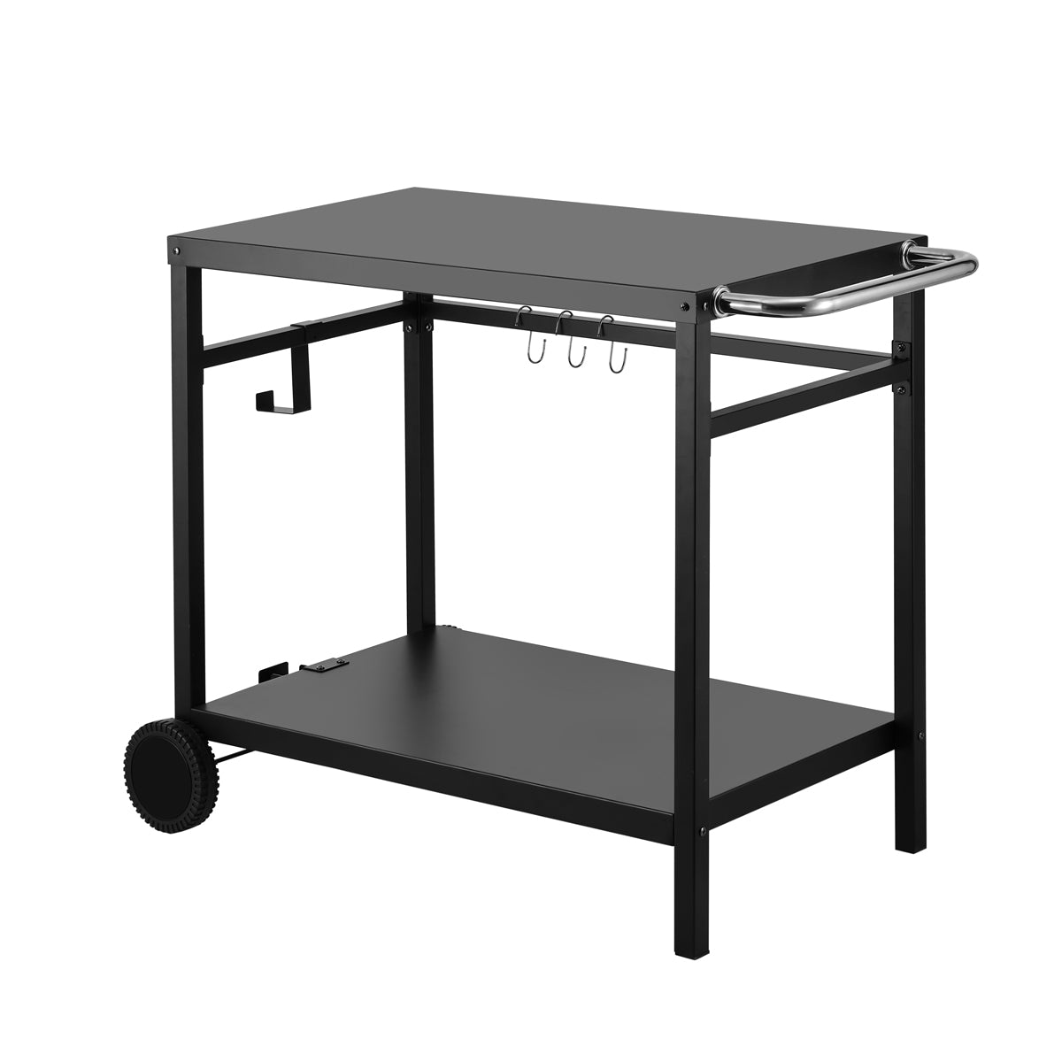 عربة طعام مع رف مزدوج وخطافات ومقبض جانبي - عربة طعام متعددة الاستخدامات بطابقين للاستخدام الخارجي والتخييم