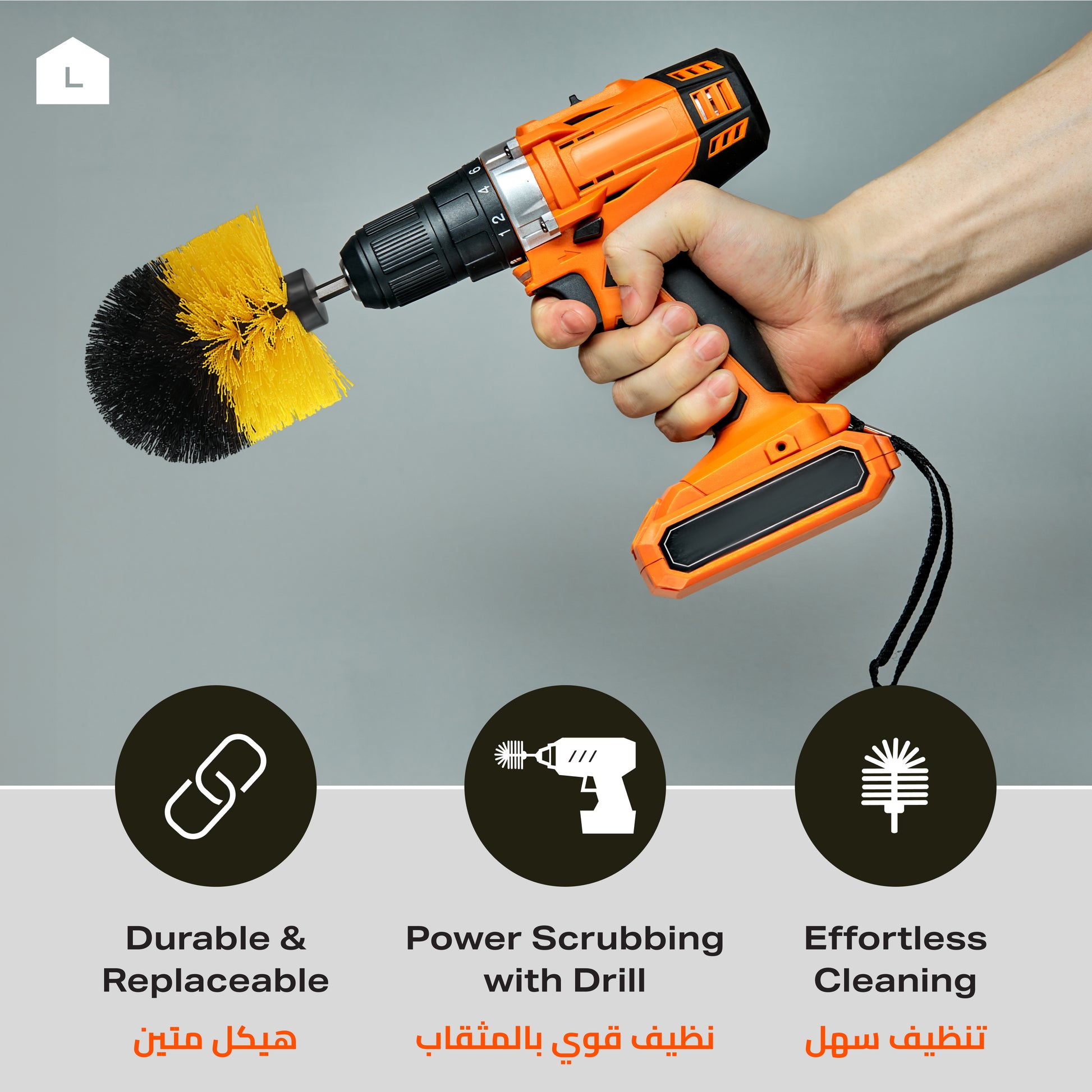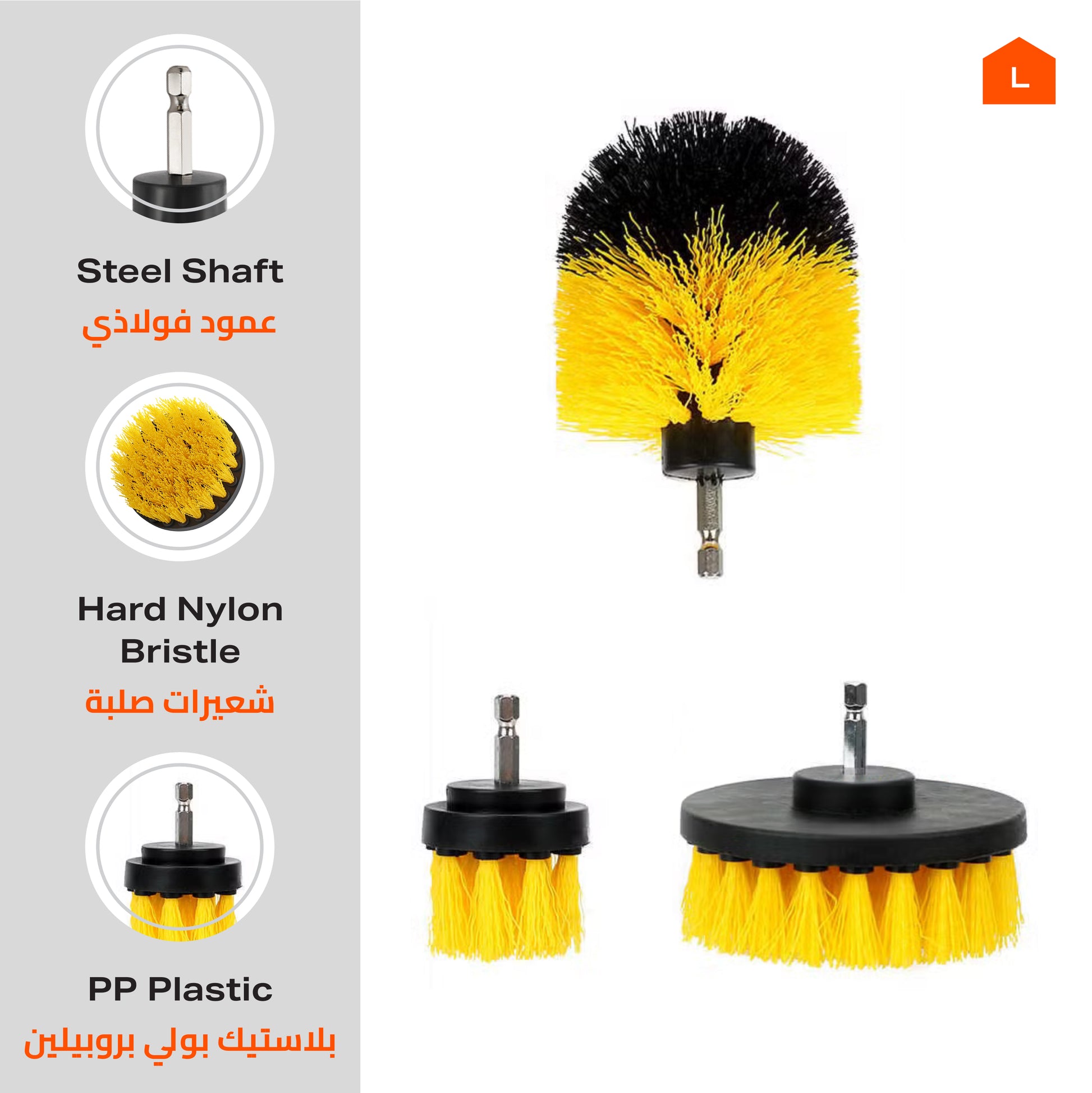 مجموعة فرشاة الحفر - صفراء - شعيرات نايلون متينة لتنظيف الأسطح المتعددة