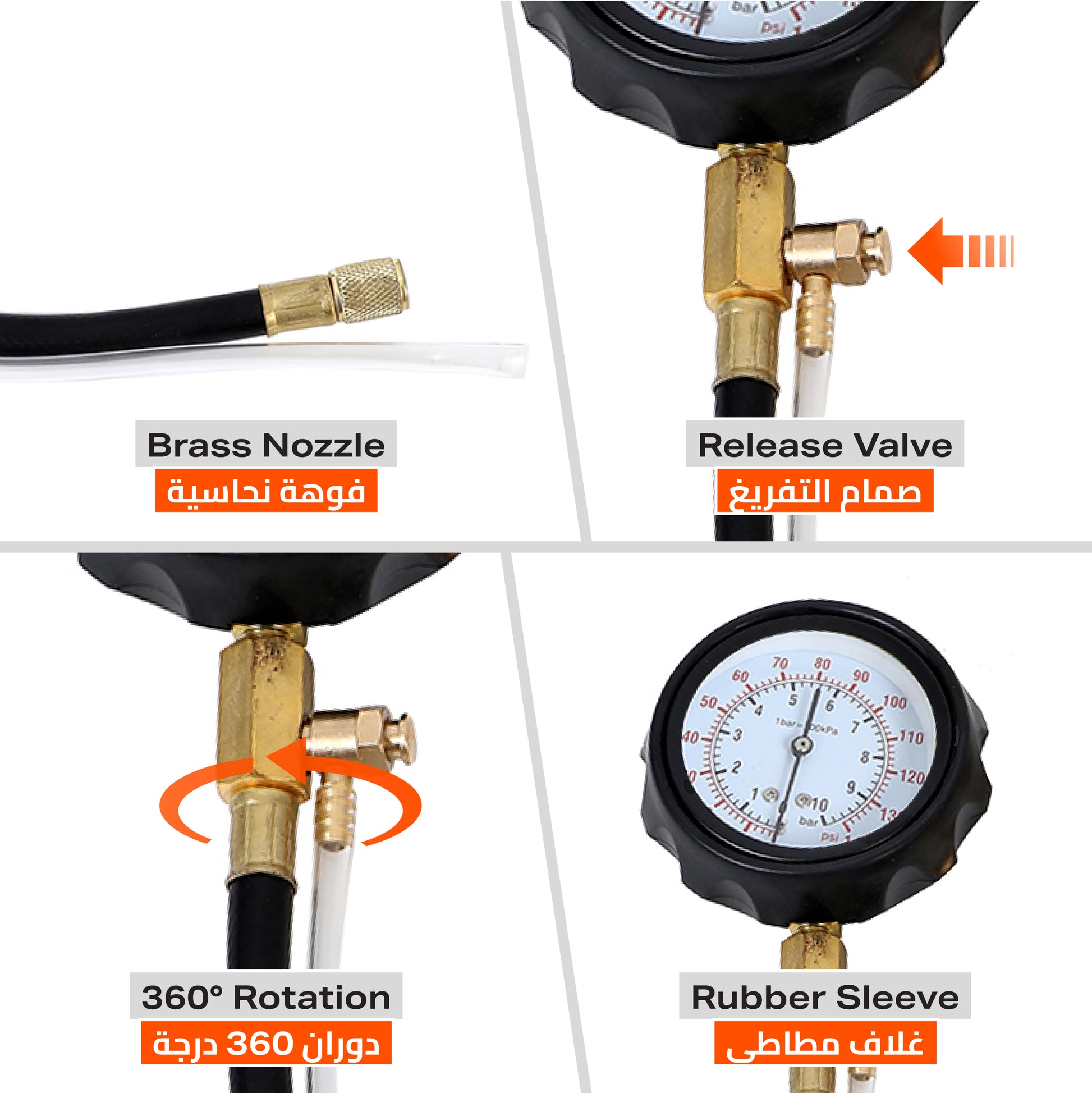 مقياس ضغط 114 – مقياس ميكانيكي لتشخيص أعطال السيارات وفحص المحرك