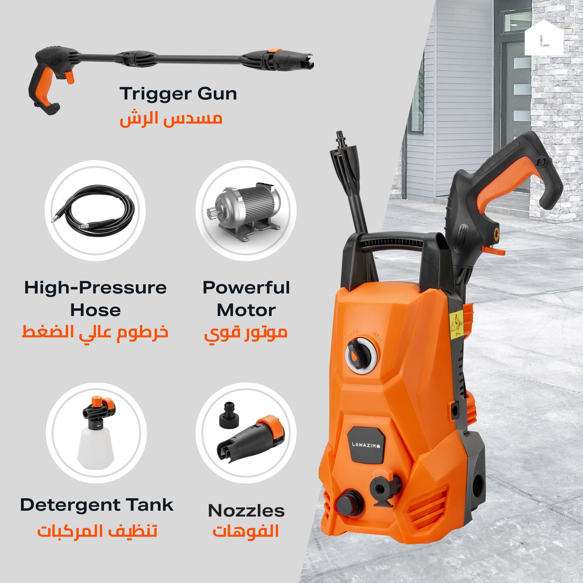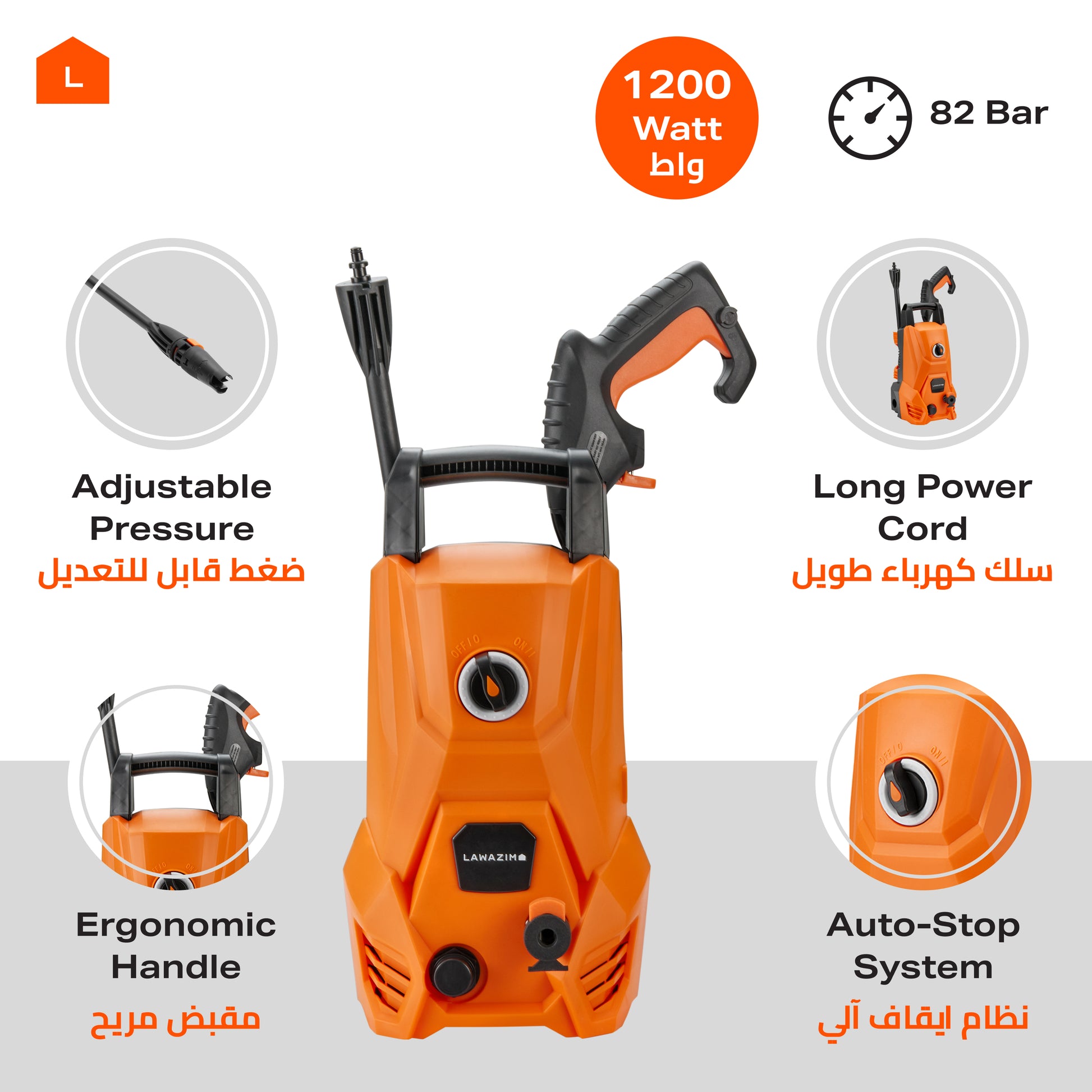 غسالة ضغط كهربائية 82 بار - 1200 واط لتنظيف المنزل، السيارات، الباحات، والتنظيف الخارجي والصناعي