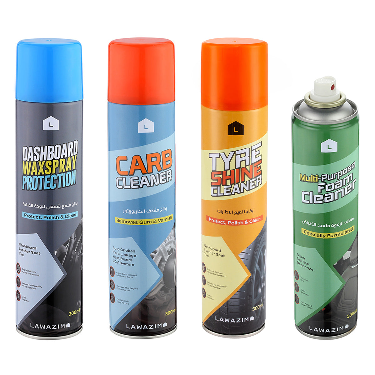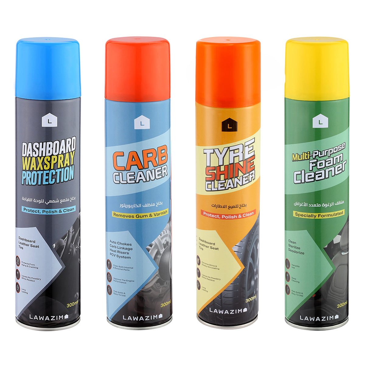 مجموعة بخاخ تنظيف السيارات متعددة الاستخدامات - 4 قطع - مجموعة تنظيف للسيارة من الداخل والخارج والإطارات