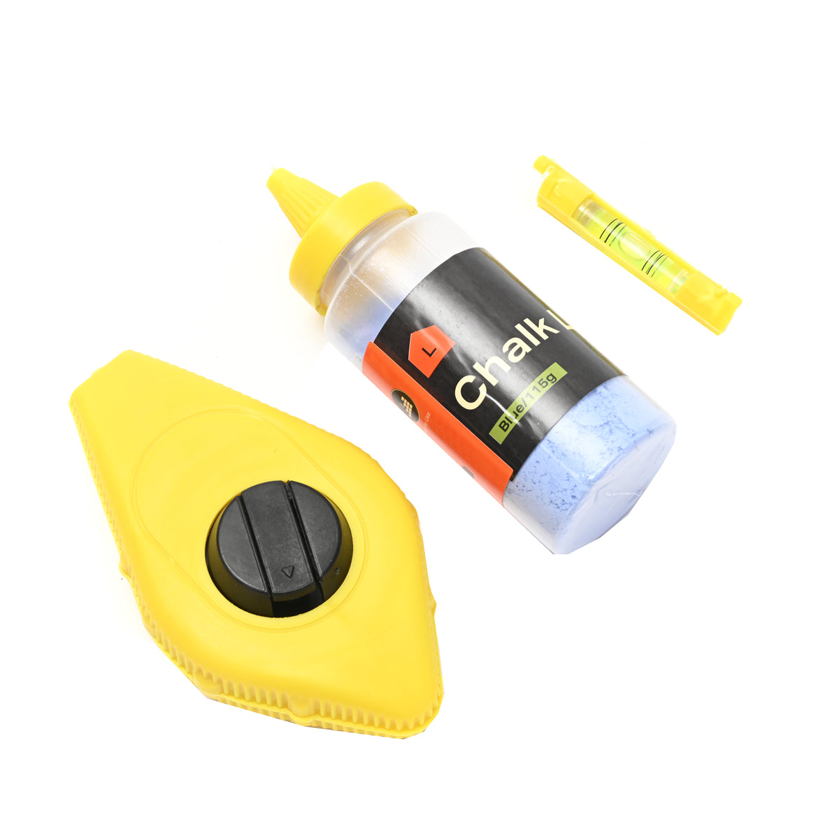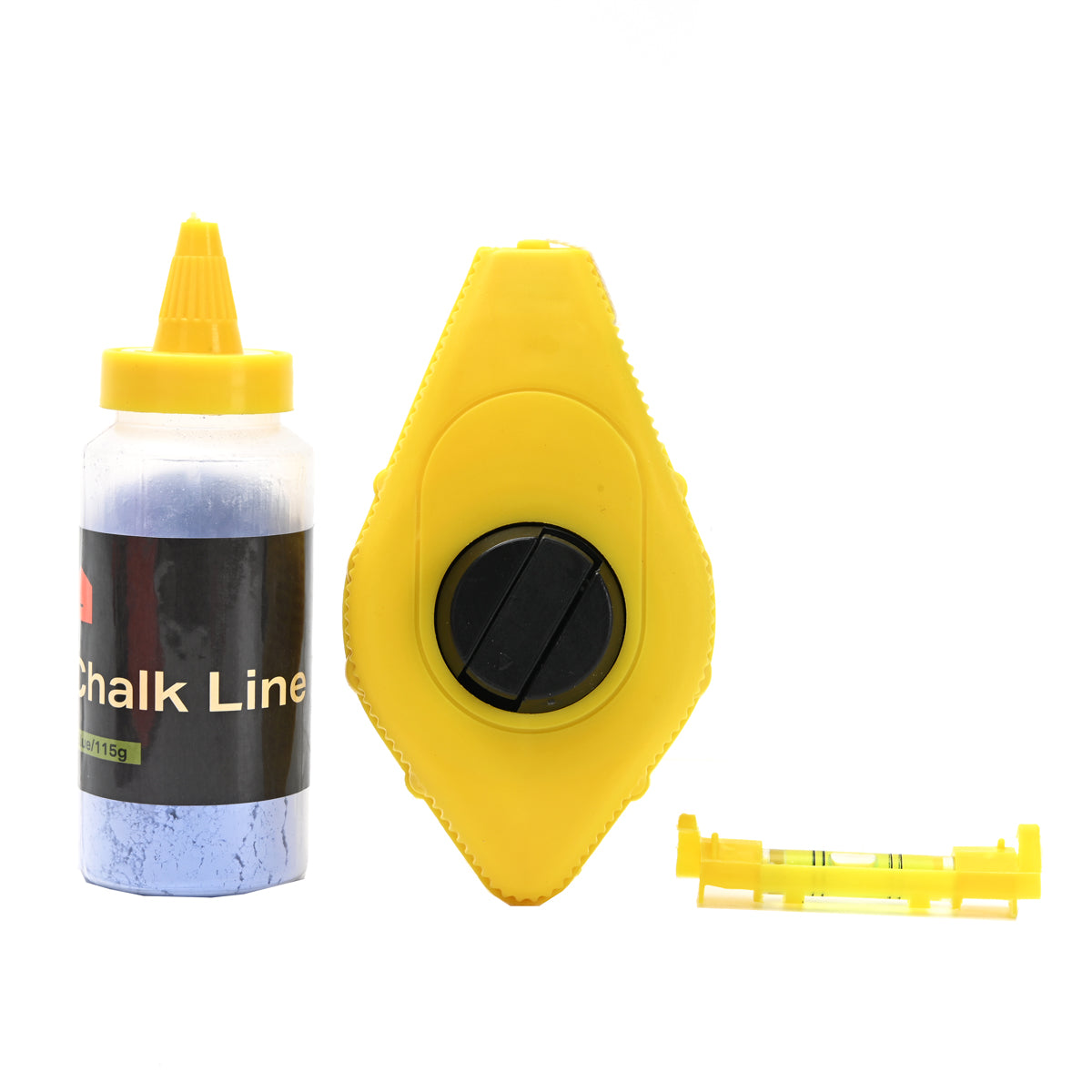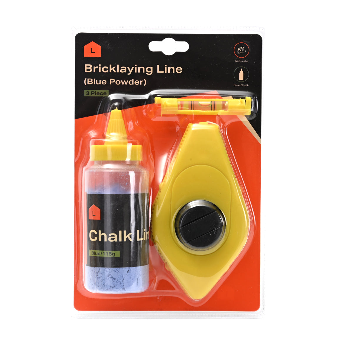 خط بناء الطوب مع مسحوق أزرق - 3 قطع - بكرة خط طباشير مع عبوة طباشير 115 جرام، ومستوى مدمج - لوضع العلامات الدقيقة والبناء والبناء