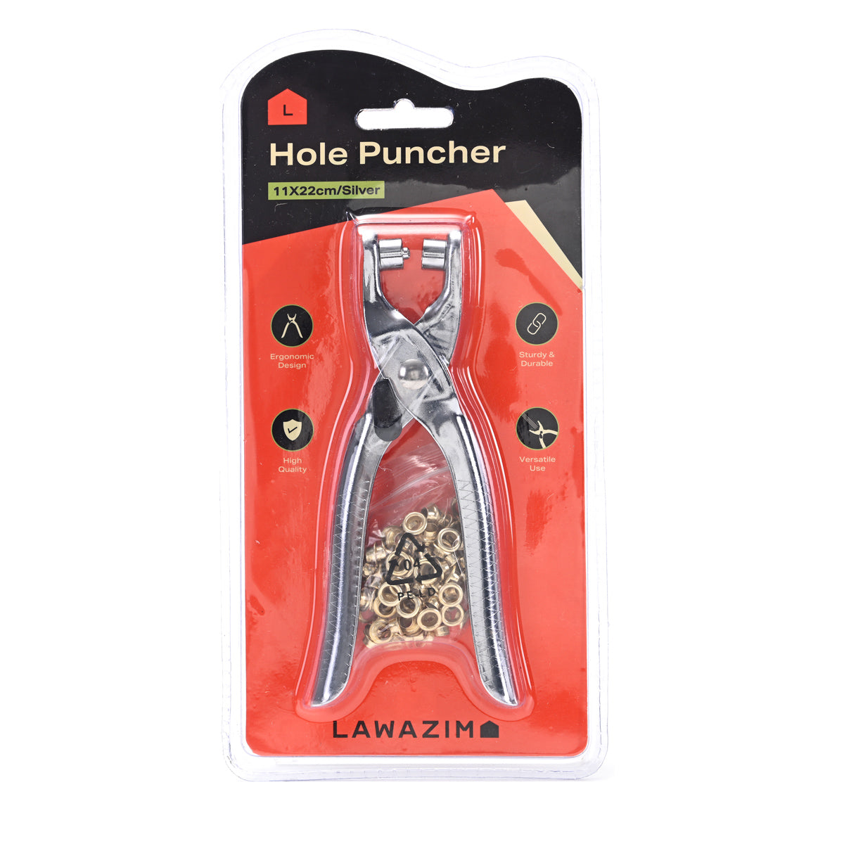 كماشة ثقب - أداة ثقب ذات حلقات معدنية مقاس 11×22 سم مع حلقات معدنية للجلود والقماش والأحزمة والأحذية والأقمشة والورق والمشاريع الحرفية