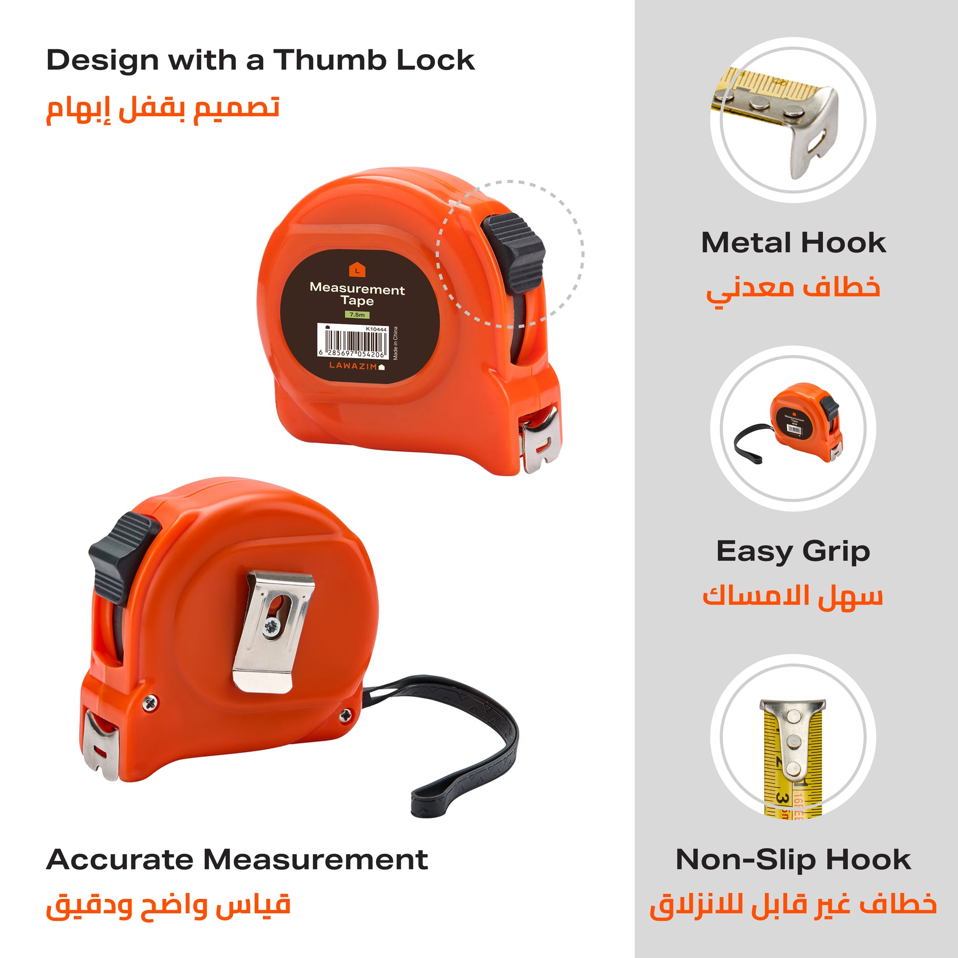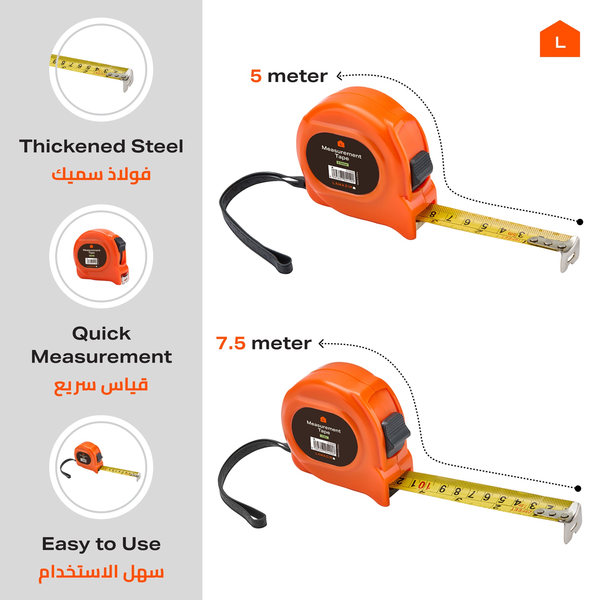 مجموعة من شريطي قياس (7.5 متر و5 متر) - شريطي قياس بوحدتين (قدم ومتر) للمشاريع المنزلية والبناء وتحسين المنزل