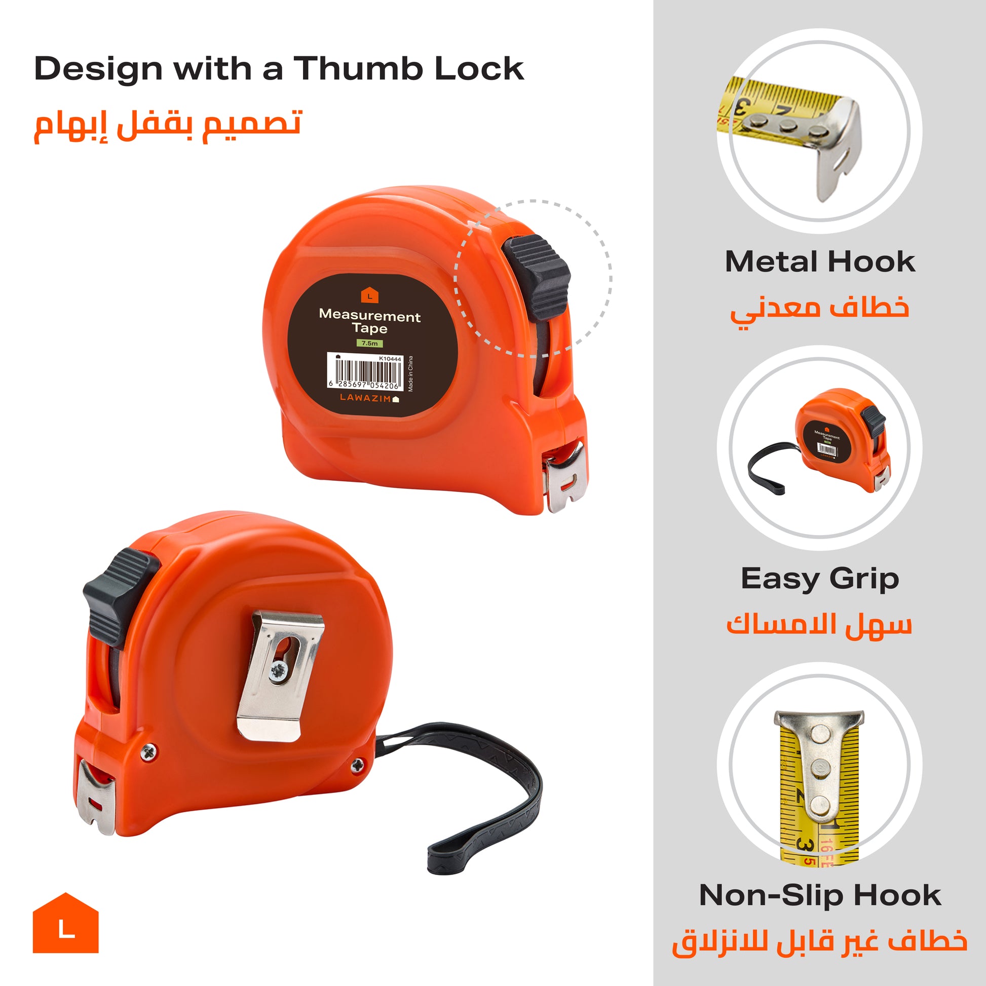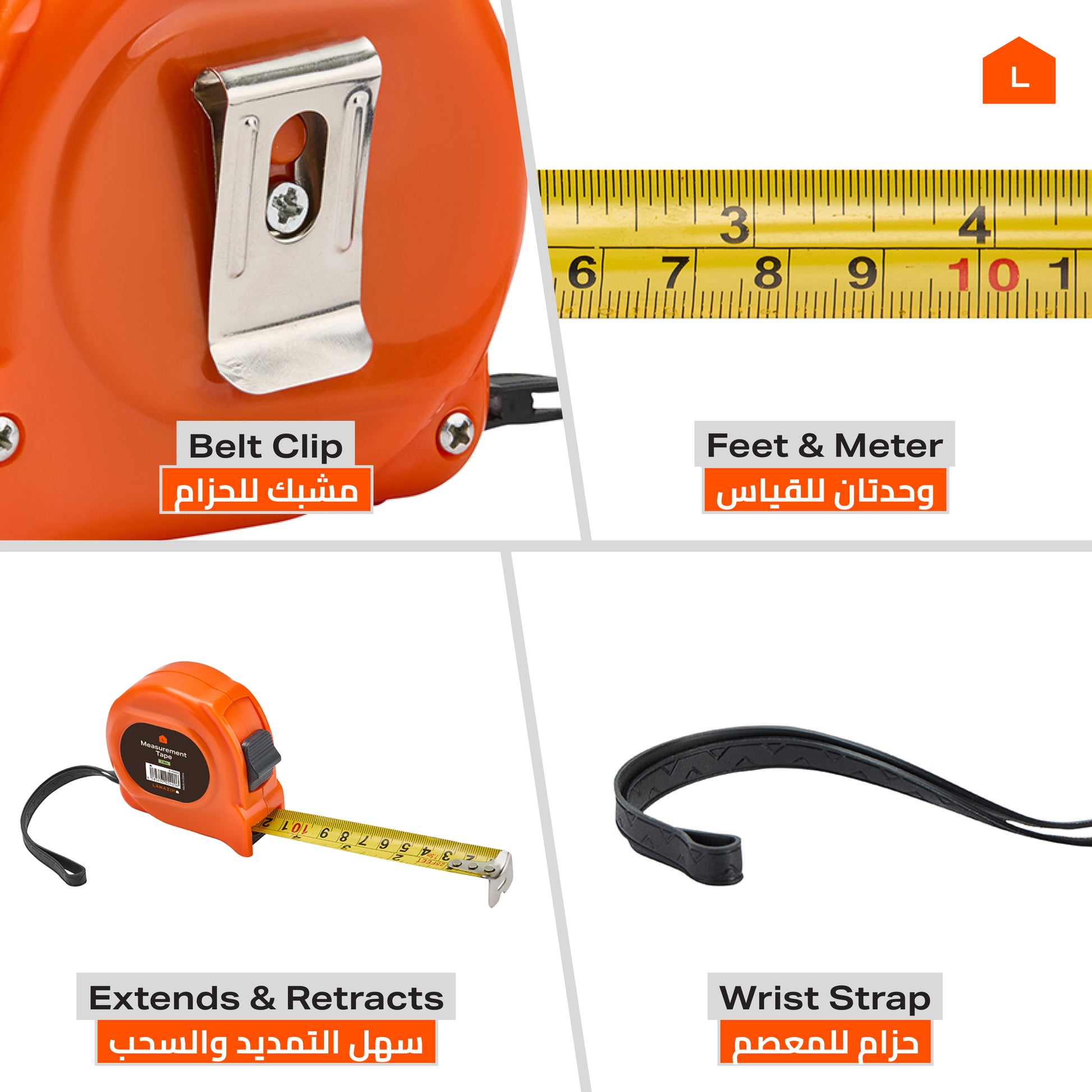 شريط قياس - شفرة قابلة للسحب مع قفل، وحافظة مقاومة للصدمات، ومشبك حزام - لأعمال النجارة والخياطة والبناء والمشاريع المنزلية