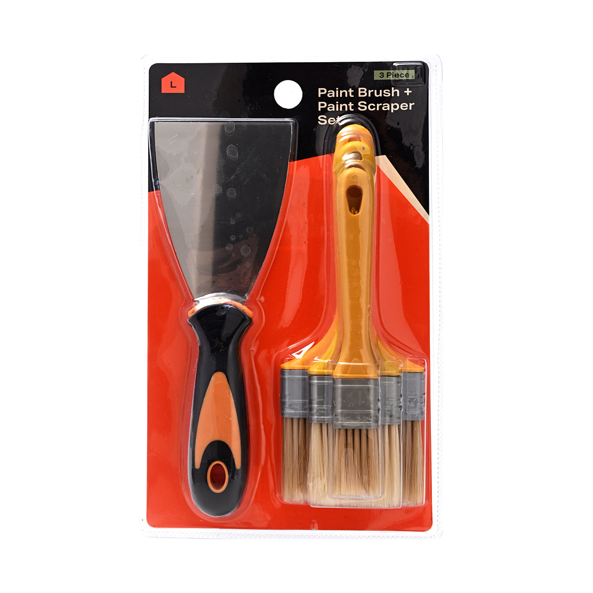 مجموعة مكونة من 3 قطع من فرشاة الطلاء والمكشطة - شعيرات غير قابلة للتساقط للطلاء وتحضير الأسطح