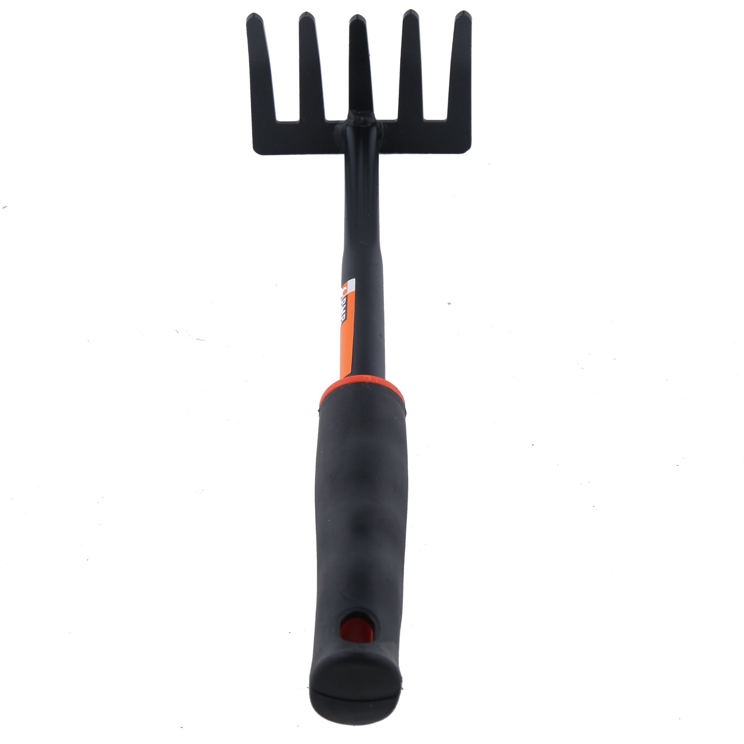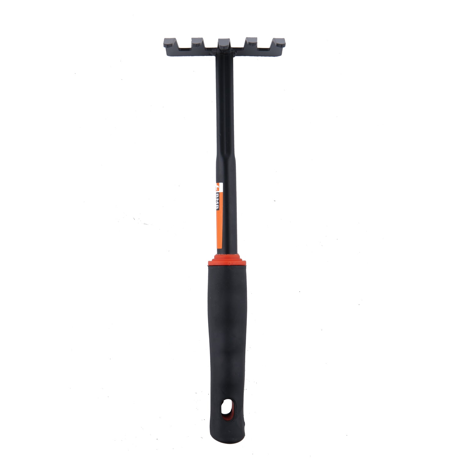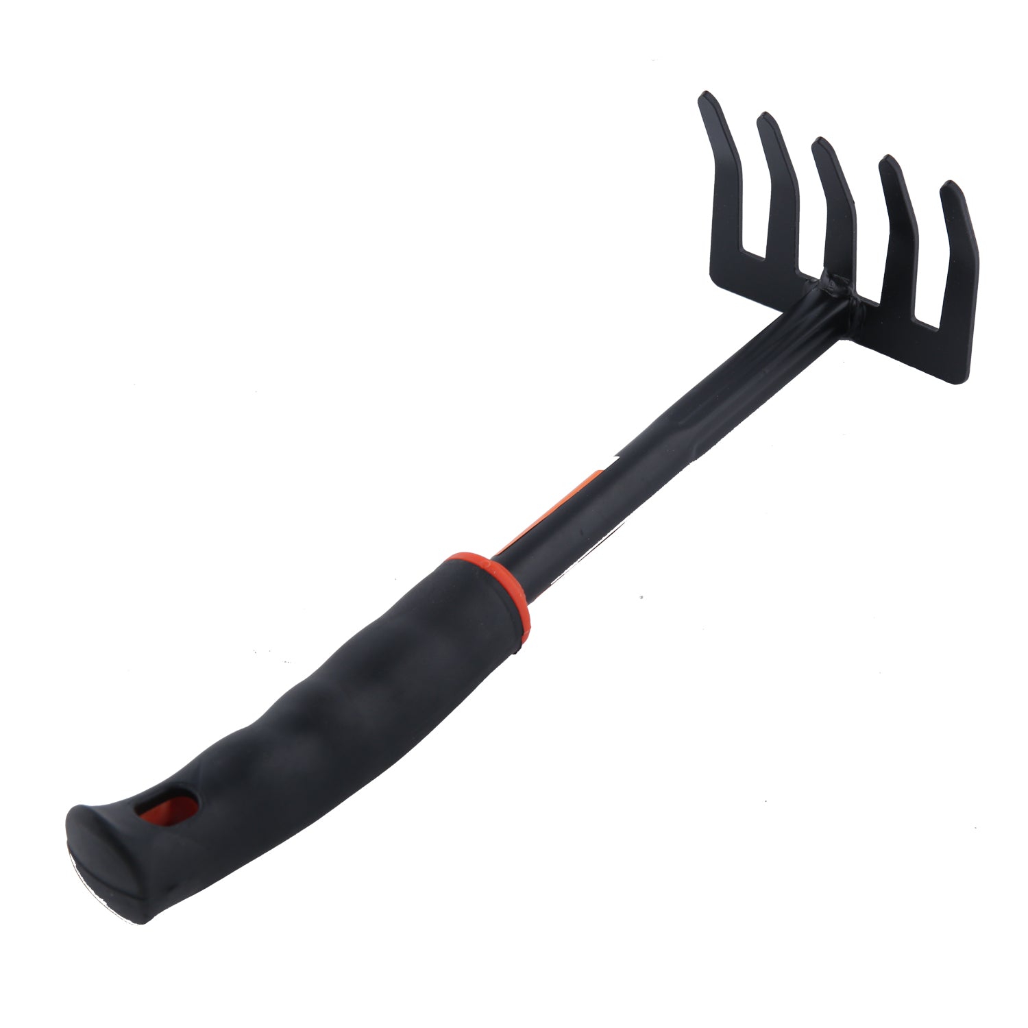 مشط يدوي أسود من الحديد - أداة بستة أسنان للحدائق مع قبضة مريحة لإزالة الأعشاب الضارة وزراعة التربة