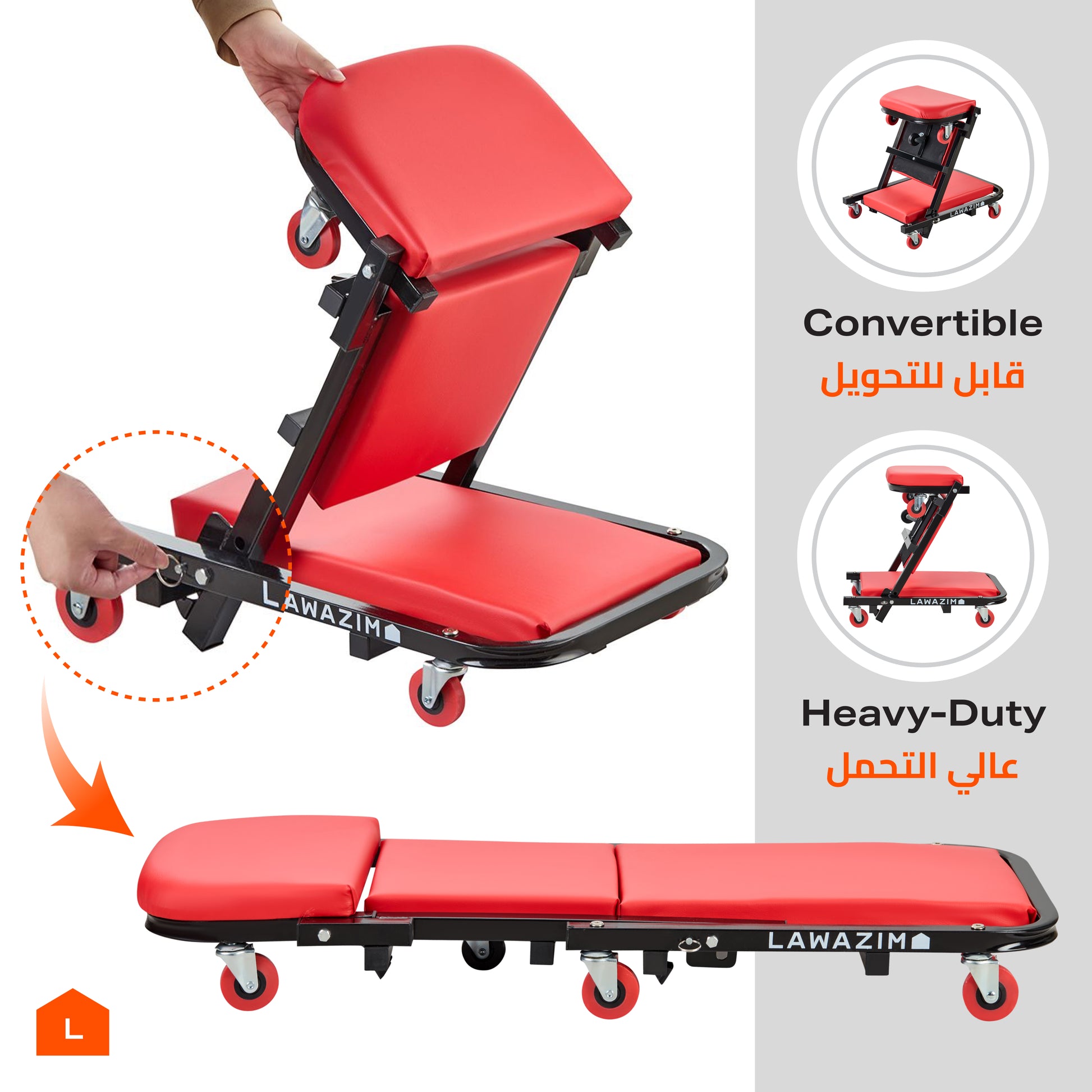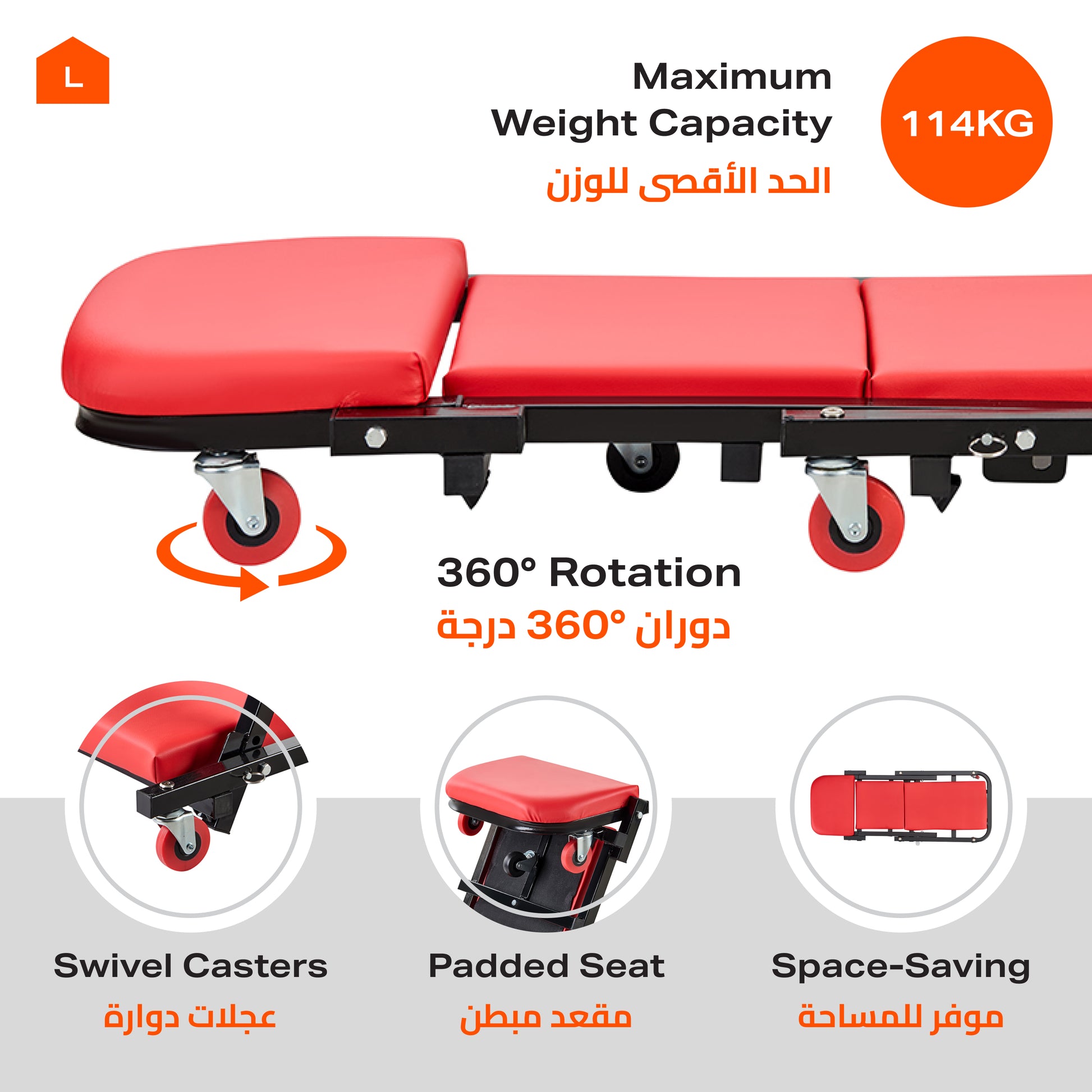 لوح ميكانيكي متحرك - 40 بوصة - أحمر وأسود - مقعد ميكانيكي 2 في 1 متحرك للاستخدام في المرآب المنزلي