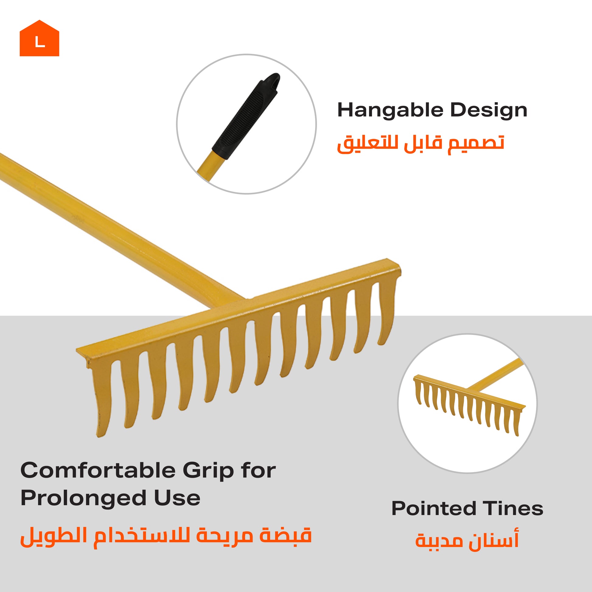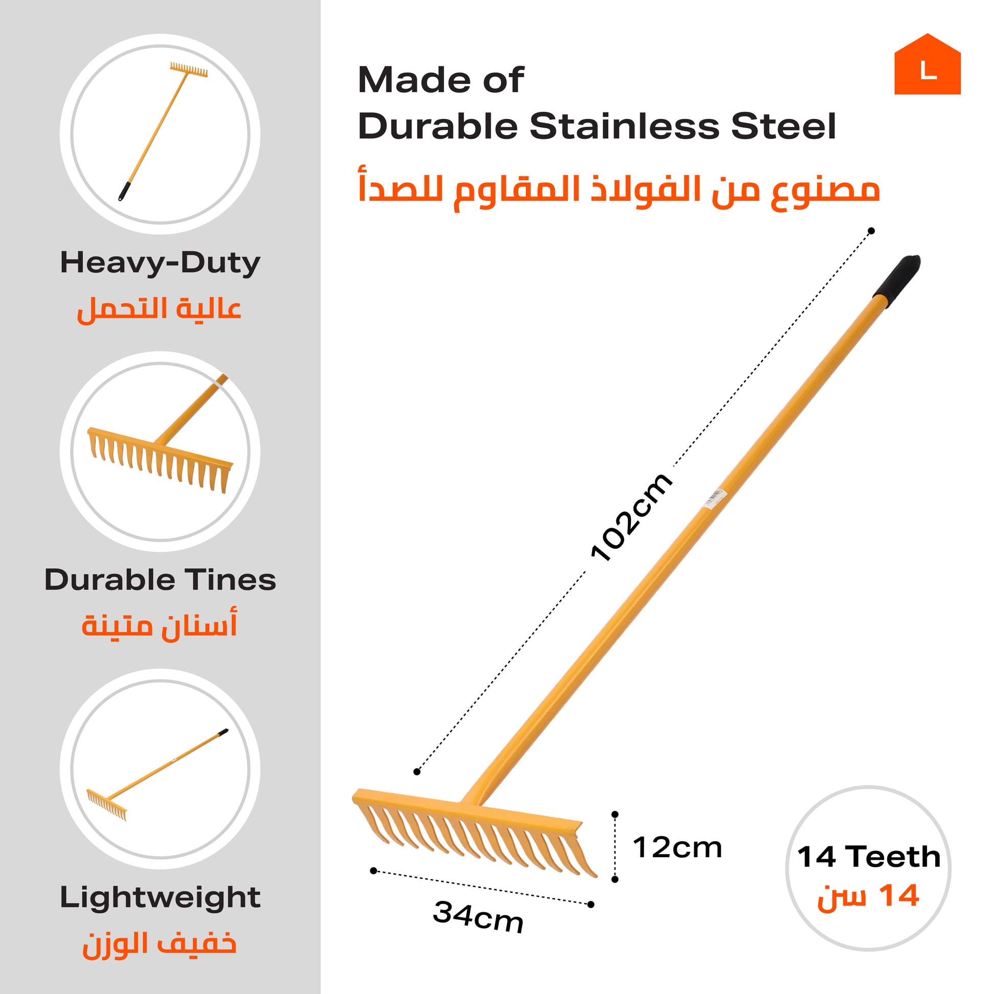 مشط حديقة - 1.2 متر من الفولاذ المقاوم للصدأ لإزالة التربة والرمل والحطام