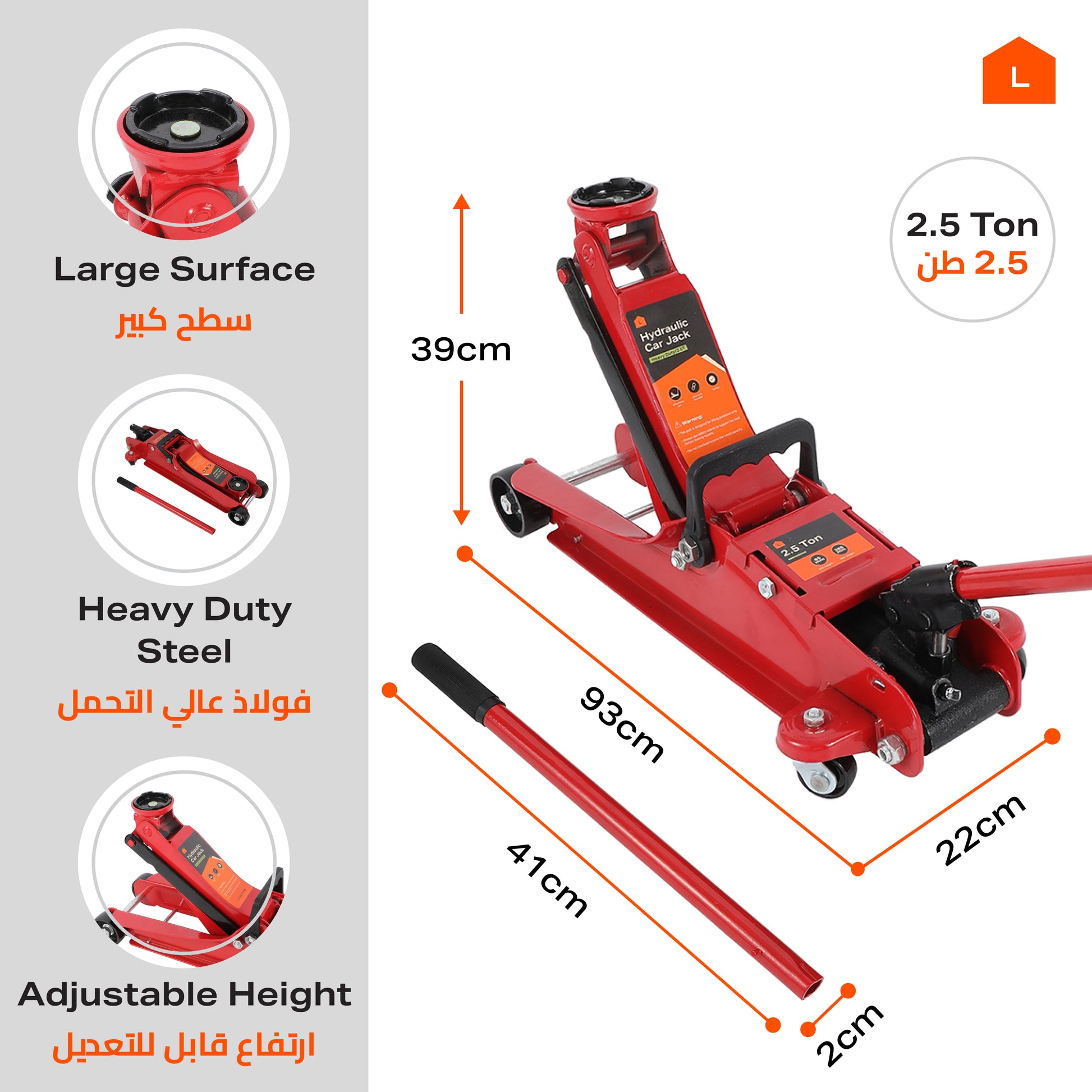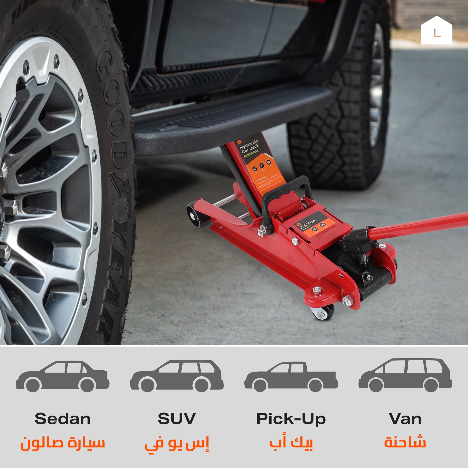رافعة هيدروليكية قوية للسيارات - سعة 2.5 طن - لورش الصيانة وتغيير الإطارات وإصلاح المركبات