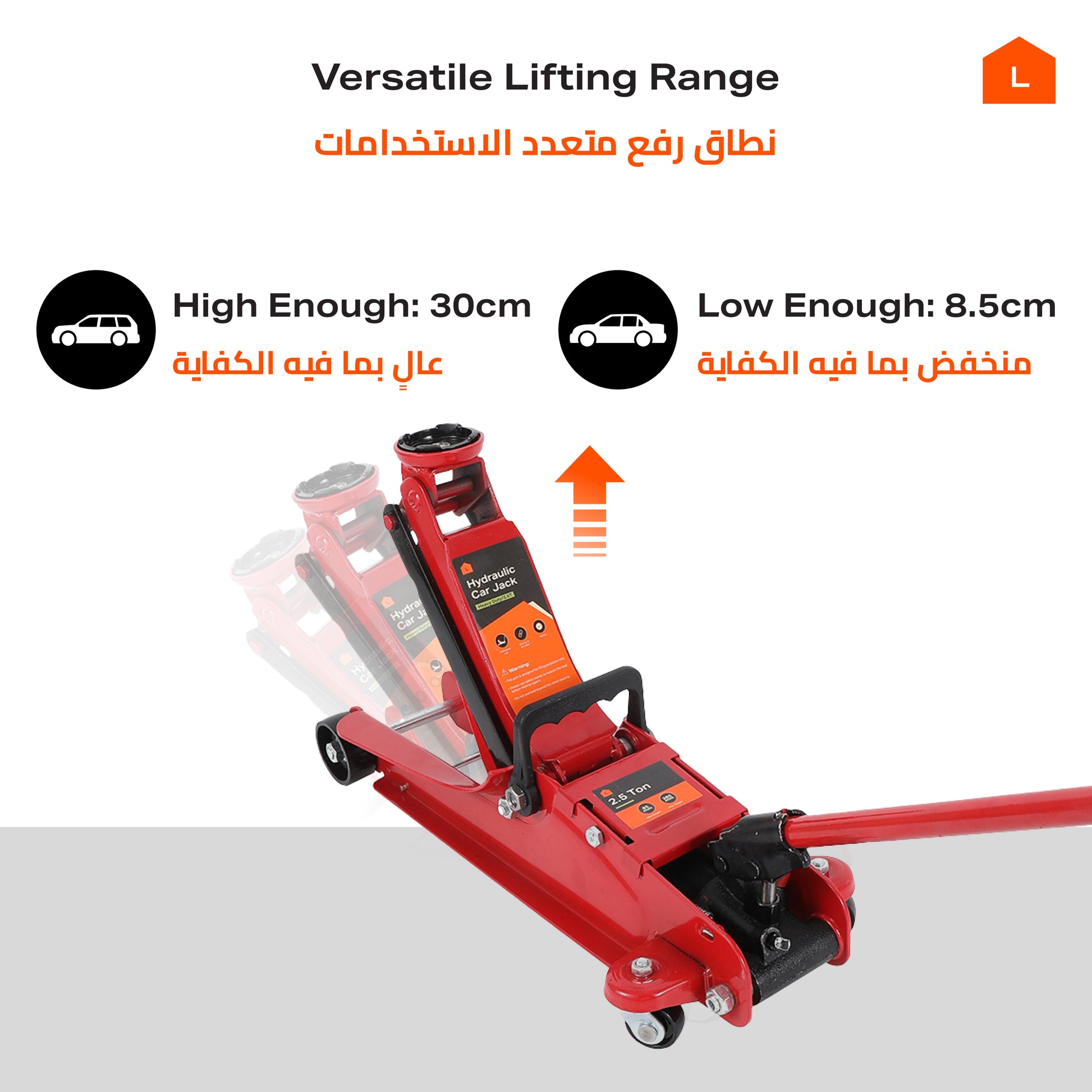 📏 [ارتفاع قابل للتعديل] ارتفاع من 8.5 سم حتى 30 سم، مناسب للمركبات منخفضة الارتفاع والسيارات ذات الهيكل المرتفع.