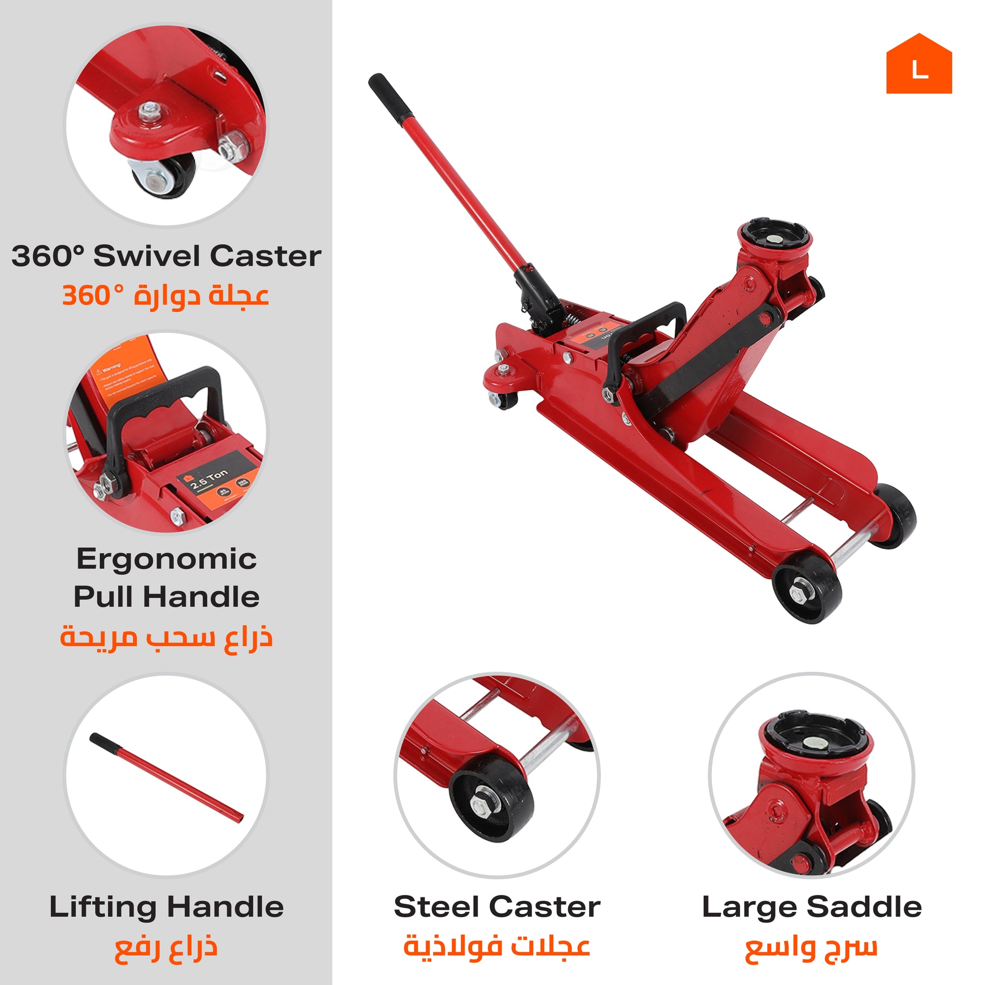 🤲 [تشغيل مريح] مقبض مريح مع مضخة بمكبس واحد يضمن رفعًا سلسًا بجهد أقل وتحكمًا أفضل أثناء الاستخدام.
