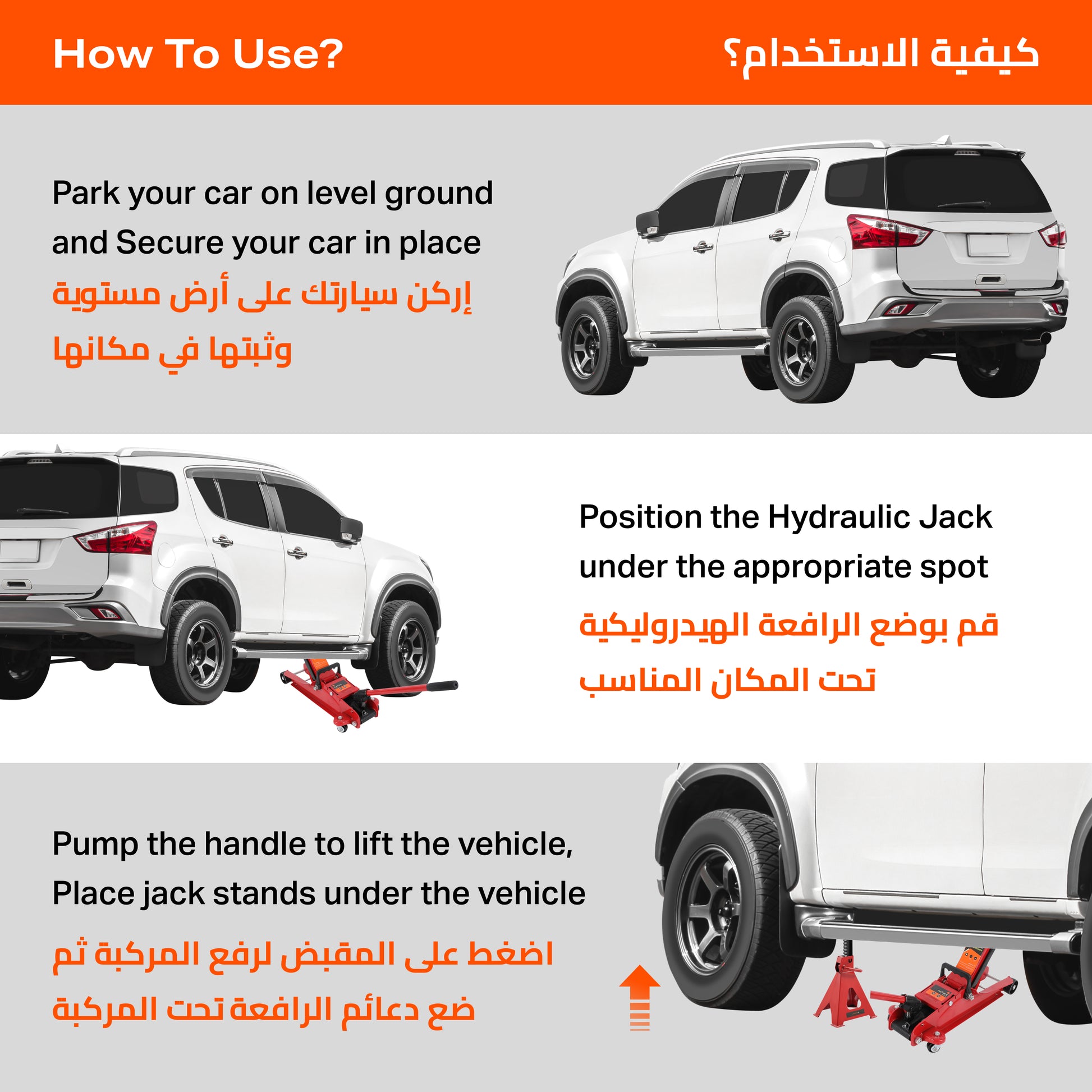🛡️ [منصة ثابتة] منصة عريضة تضمن تلامسًا آمنًا مع هيكل المركبة، مما يعزز الثبات والسلامة أثناء الرفع.