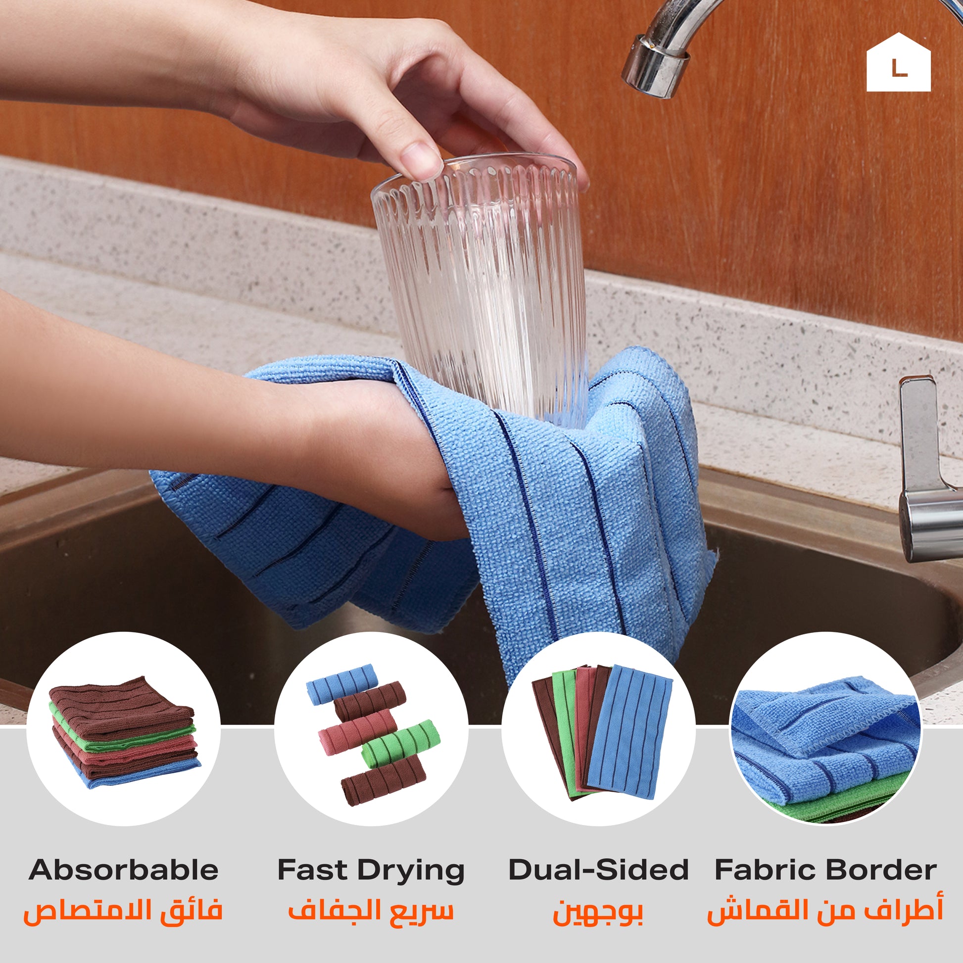 مناشف مطبخ - 10 قطع 30×30 سم - مناشف تنظيف مايكروفايبر للاستخدام في المنزل والمطبخ والأعمال المنزلية