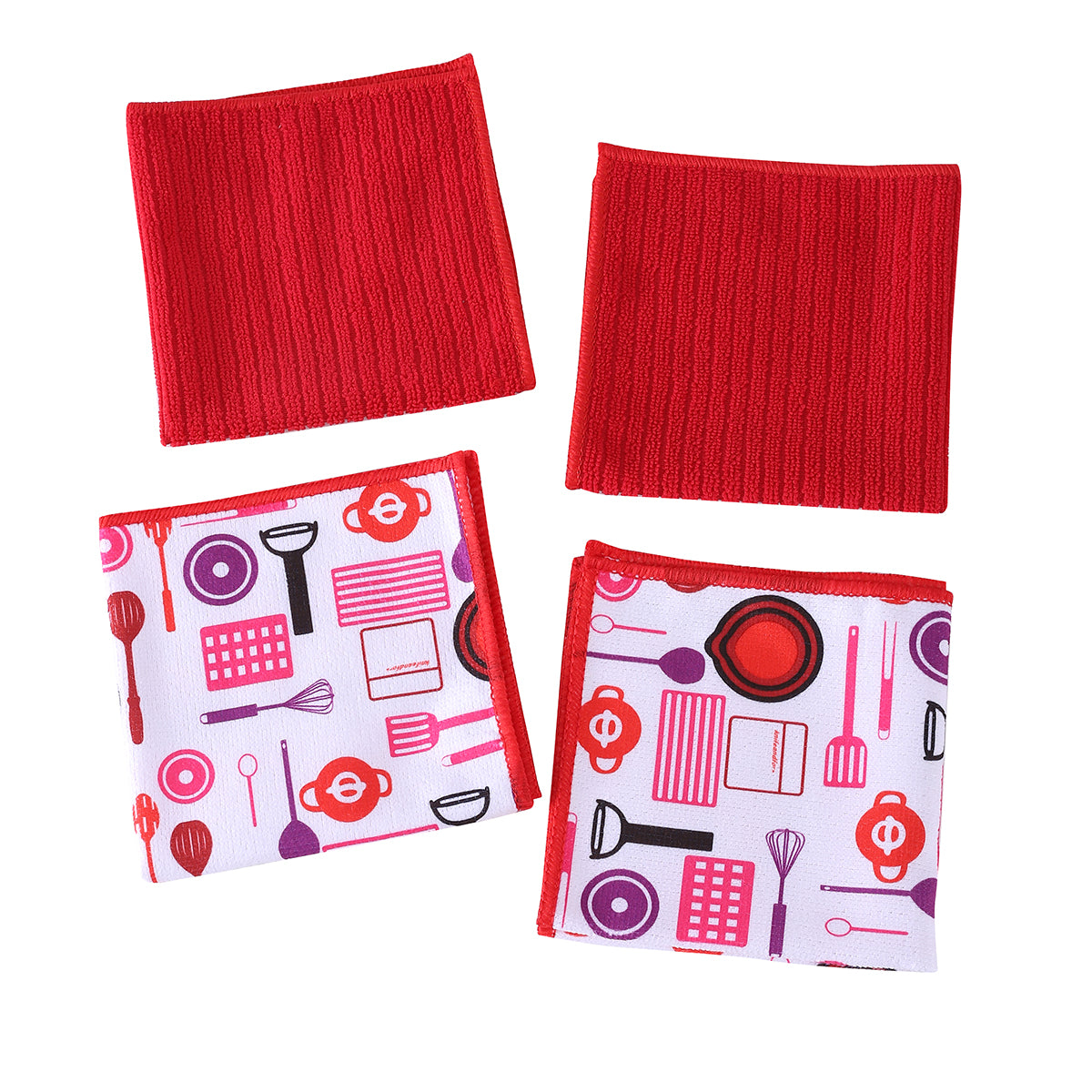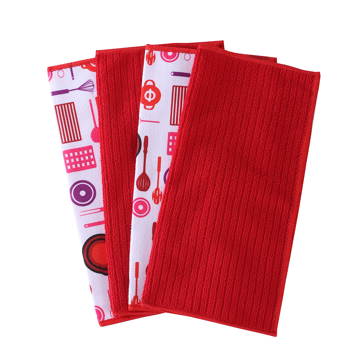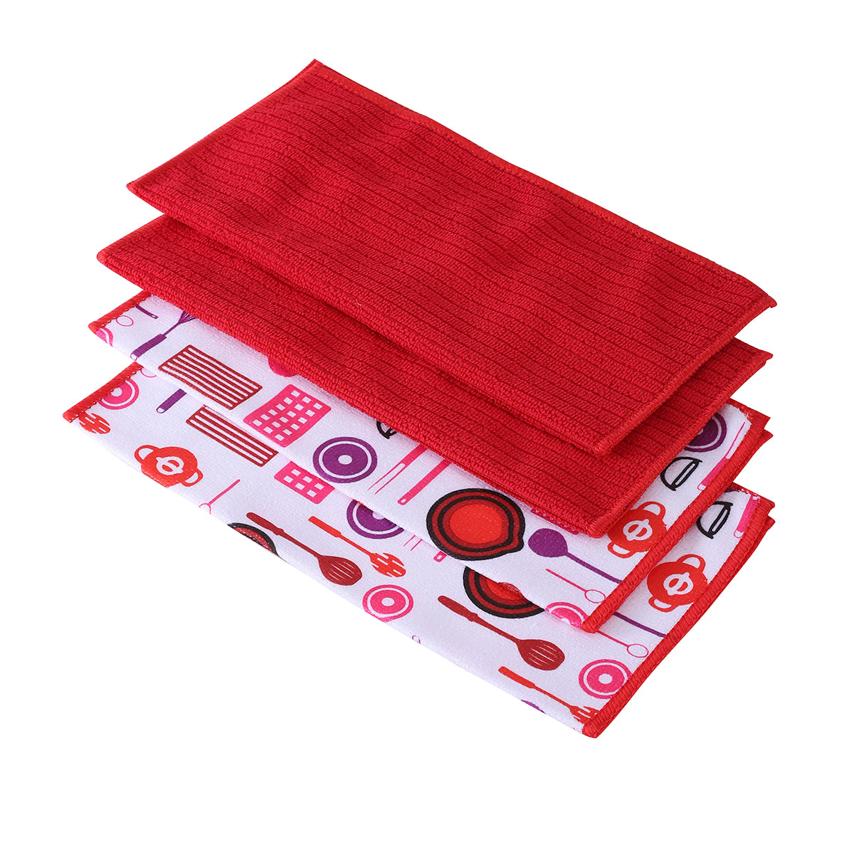 مناشف مطبخ - 4 قطع 30×30 سم - مناشف مايكروفايبر لتجفيف الصحون وتنظيف المطبخ ومسح الأسطح