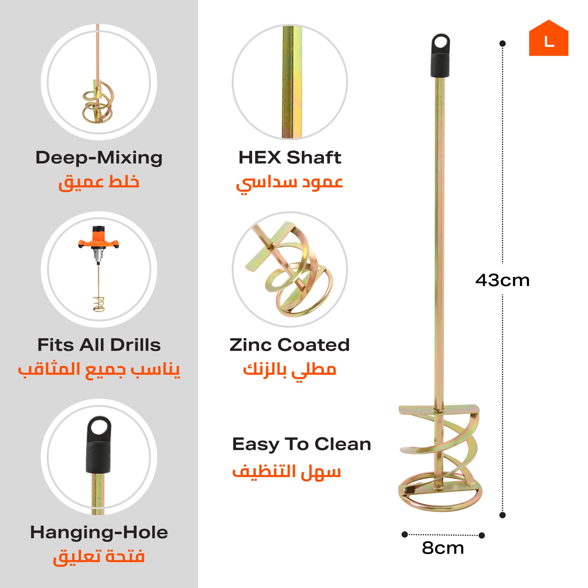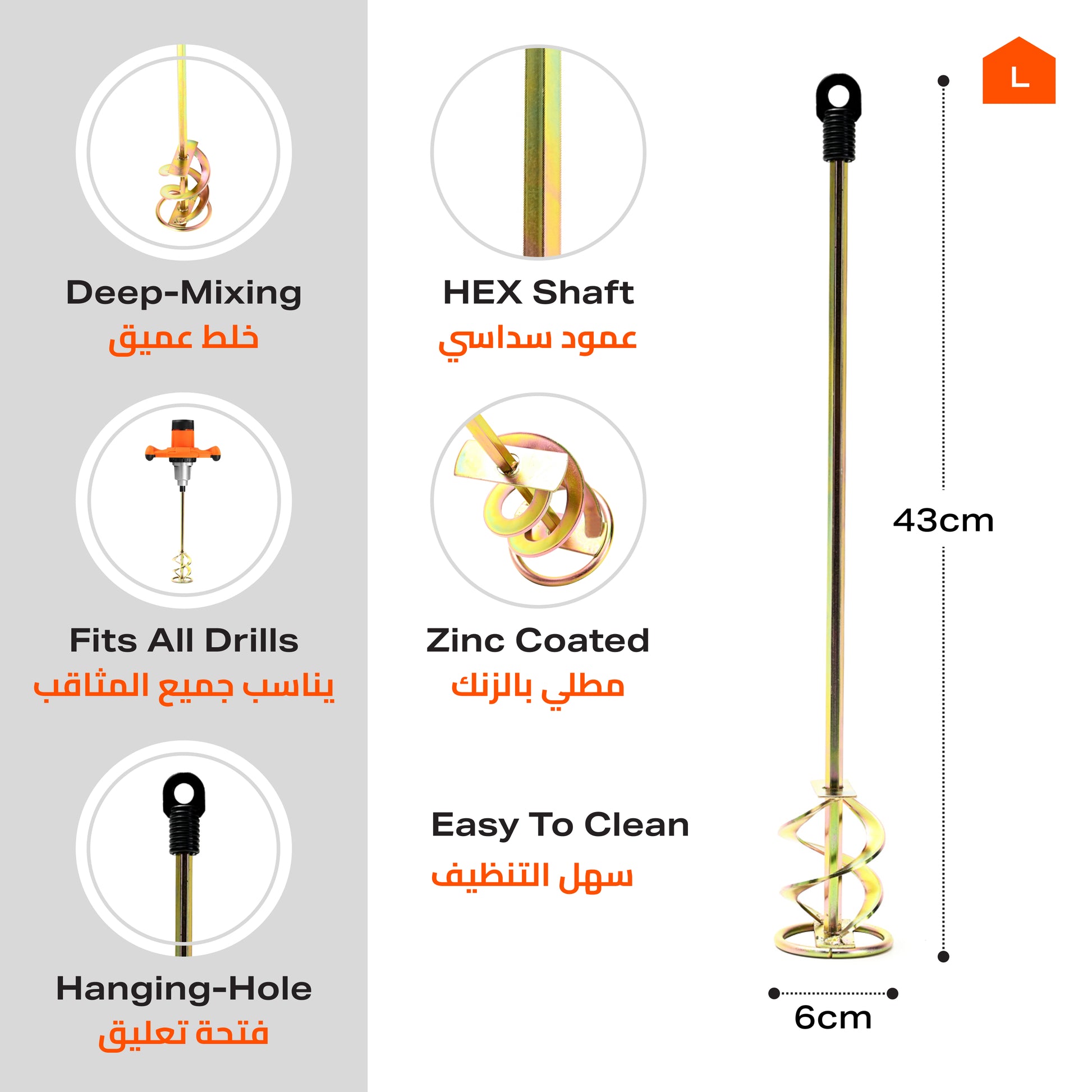 🛠️ [توافق الطاقة] يعمل مع مجموعة واسعة من الدريل الكهربائي الدوّار، مع طول ممتد للخلط الفعّال في الحاويات العميقة