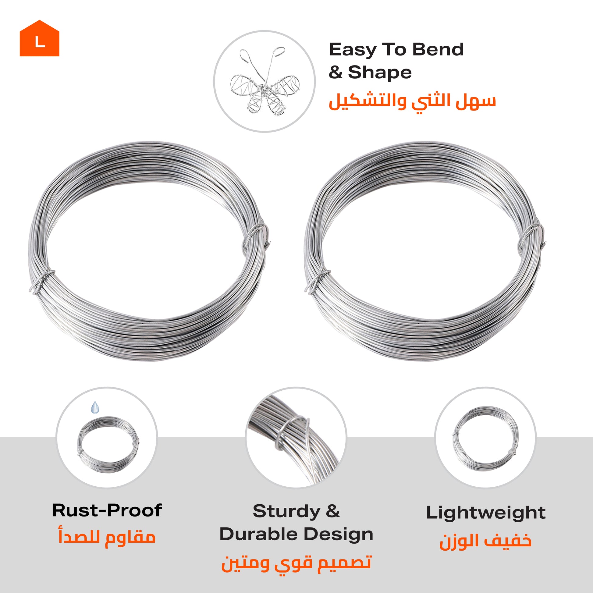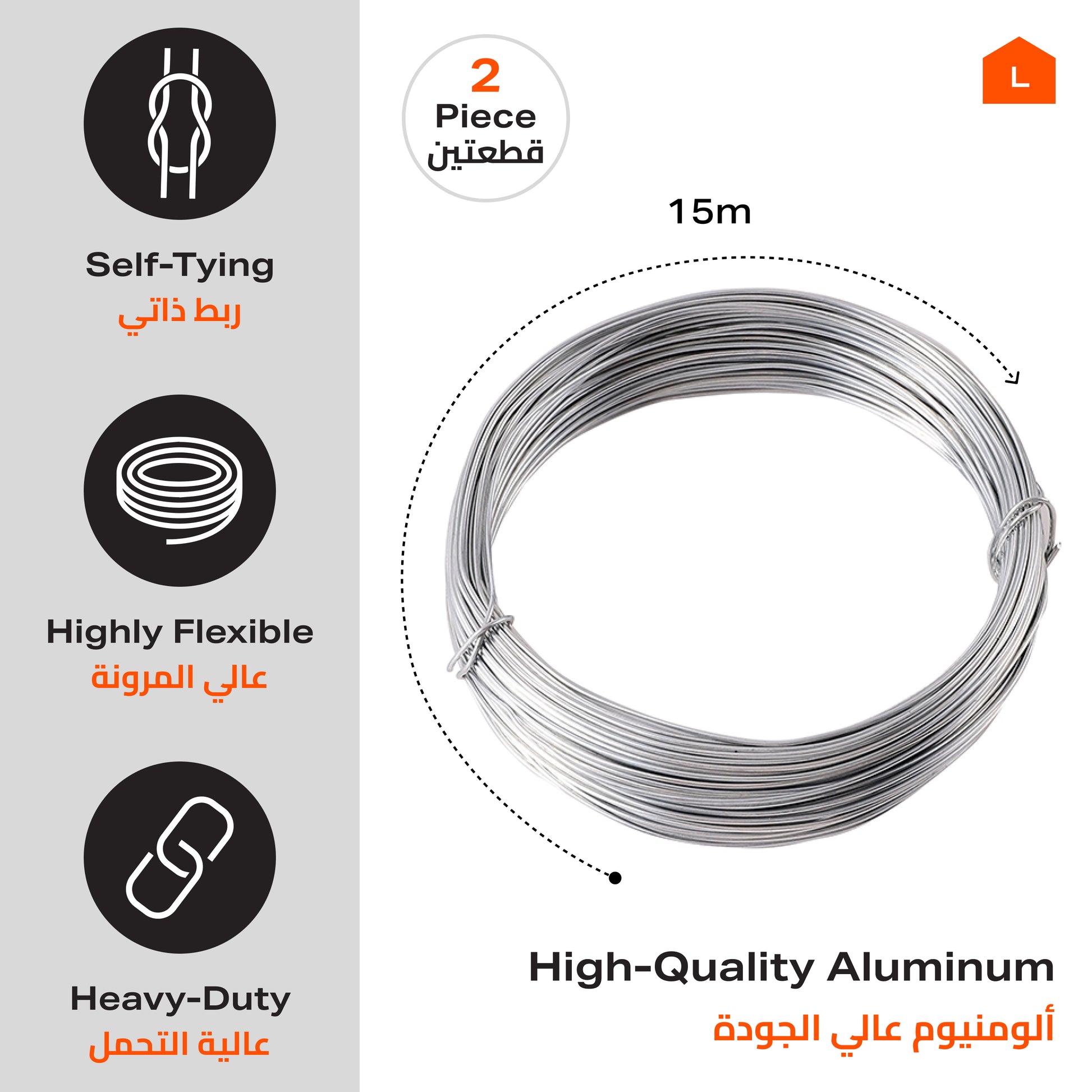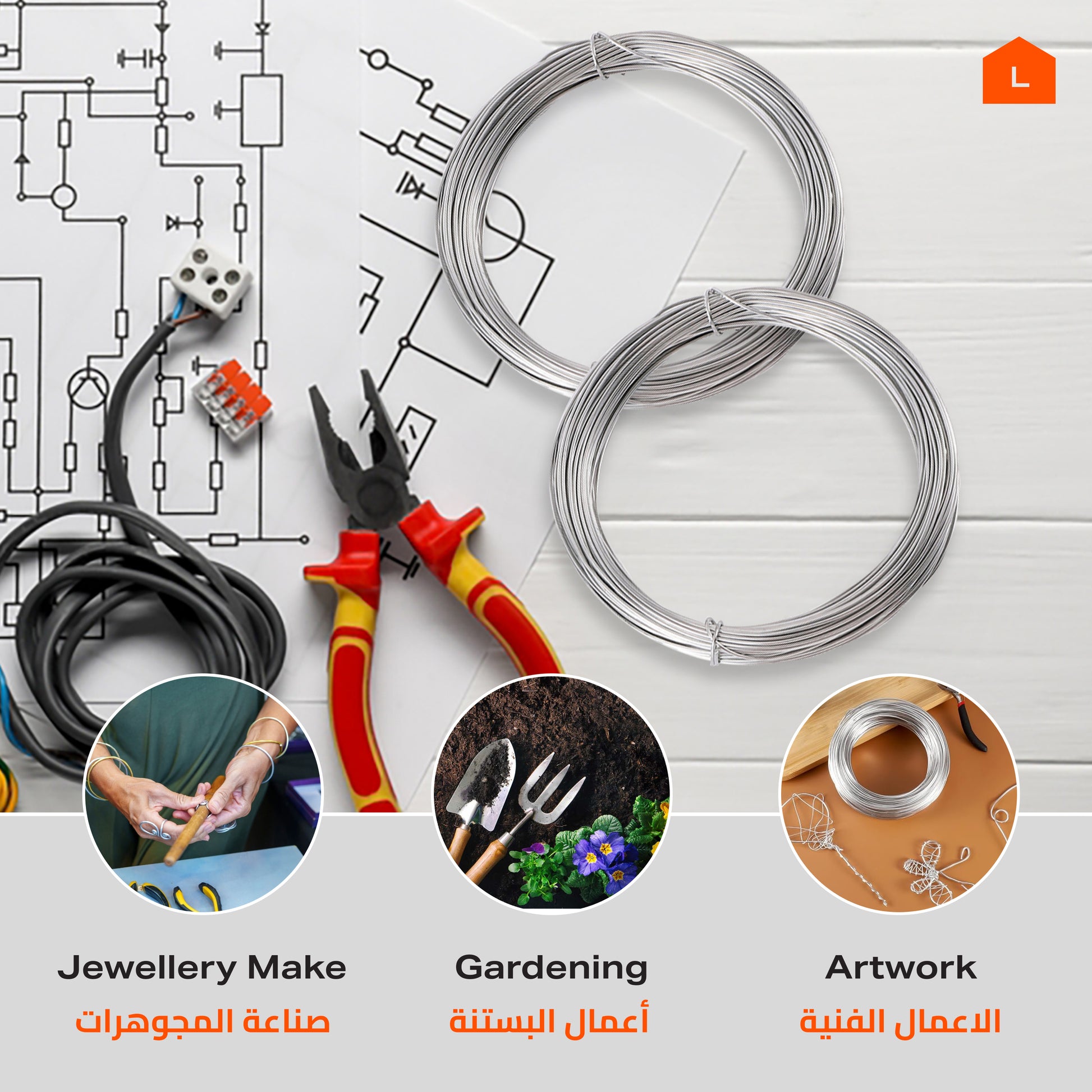 مجموعة أسلاك من قطعتين - سلك فولاذي مرن ومتين بطول 15 مترًا للاستخدام في الحرف اليدوية والسياج والبستنة