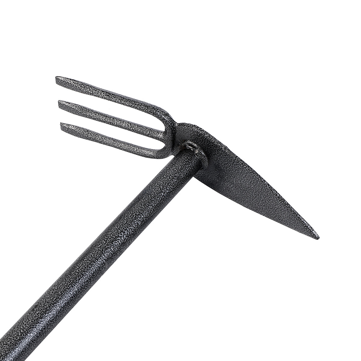 مجرفة حفر وشوكة حديقة بثلاث أسنان بمقبض حديدي - أداة شديدة التحمل لزراعة التربة وإزالة الجذور