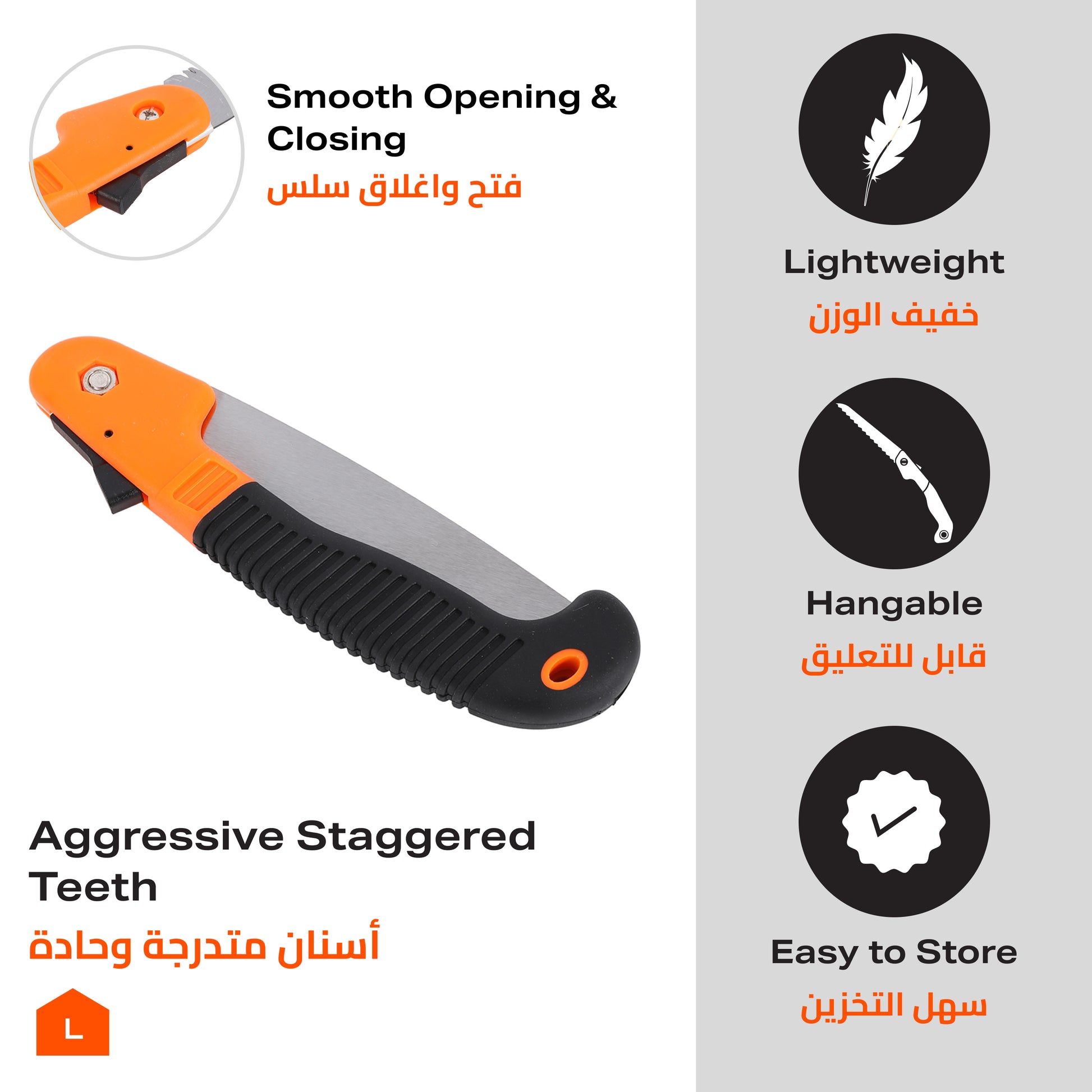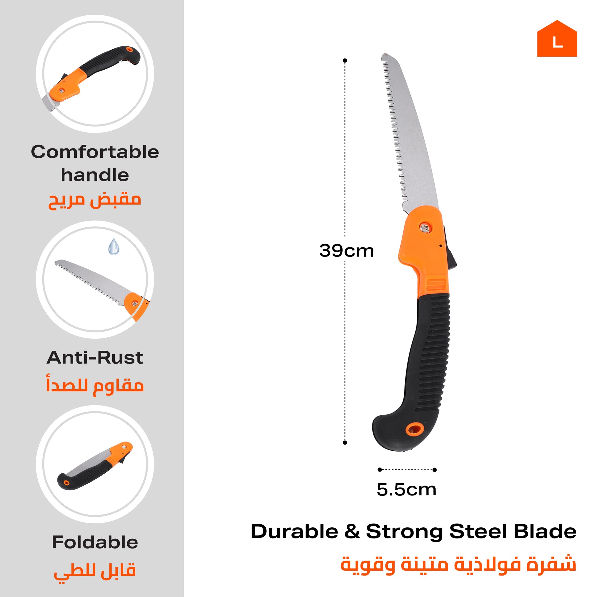 منشار يدوي قابل للطي - منشار تقليم منحني 39 سم - أداة محمولة للخشب والفروع والبلاستيك والتخييم والبستنة