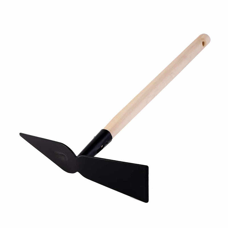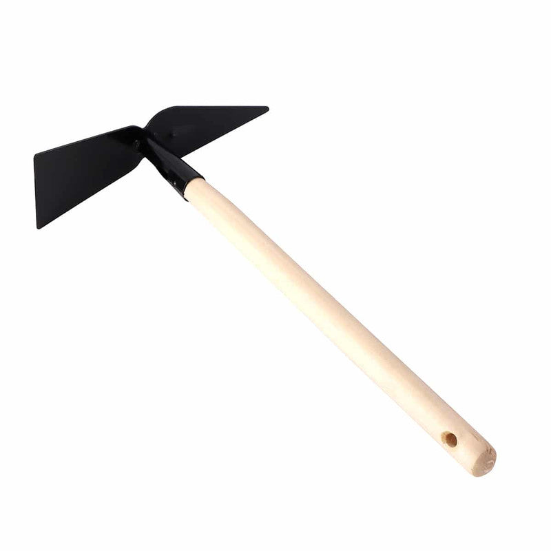 مجرفة بمقبض خشبي - 40 سم - أداة حديقة ثنائية الرأس لإزالة الأعشاب الضارة والزراعة والحفر والبستنة