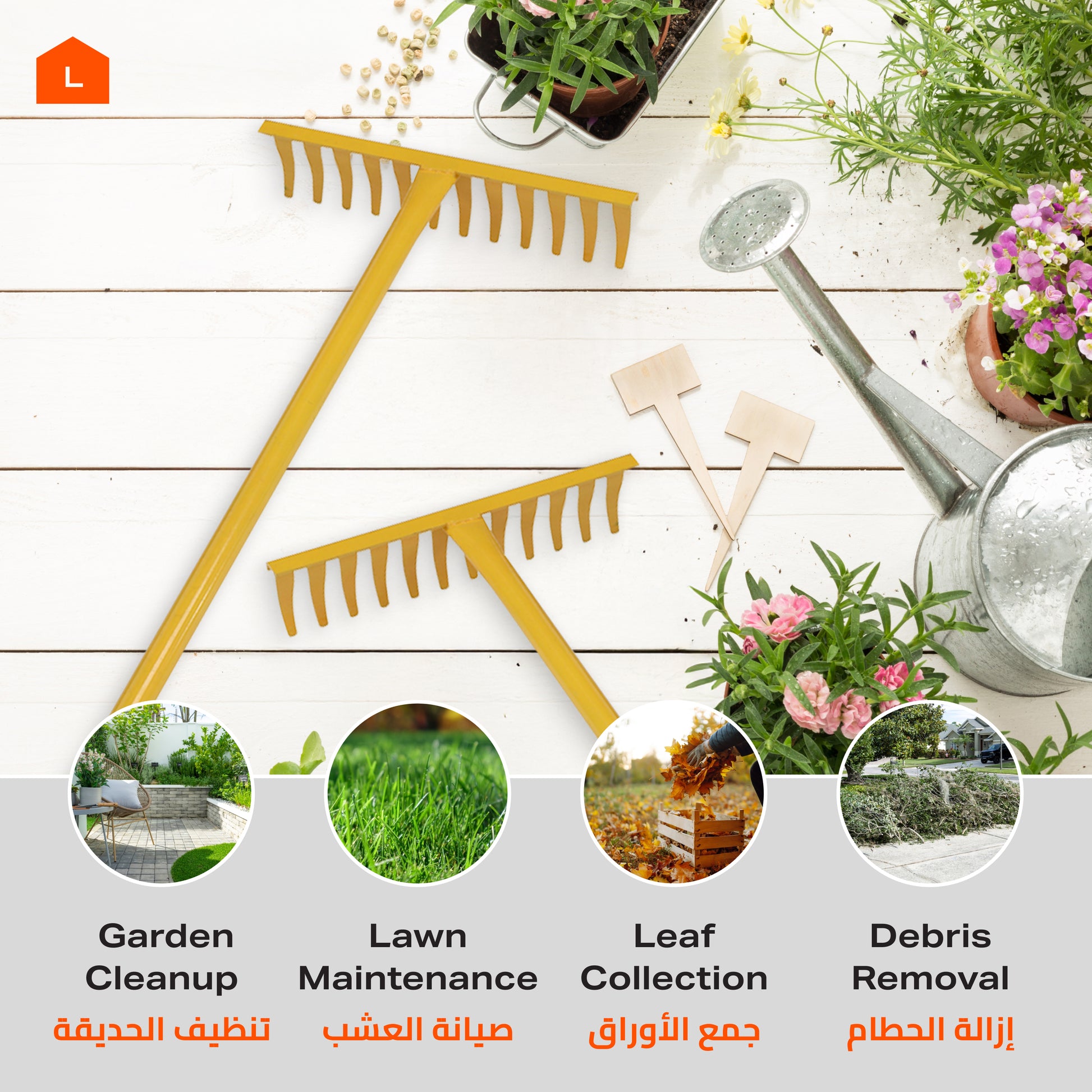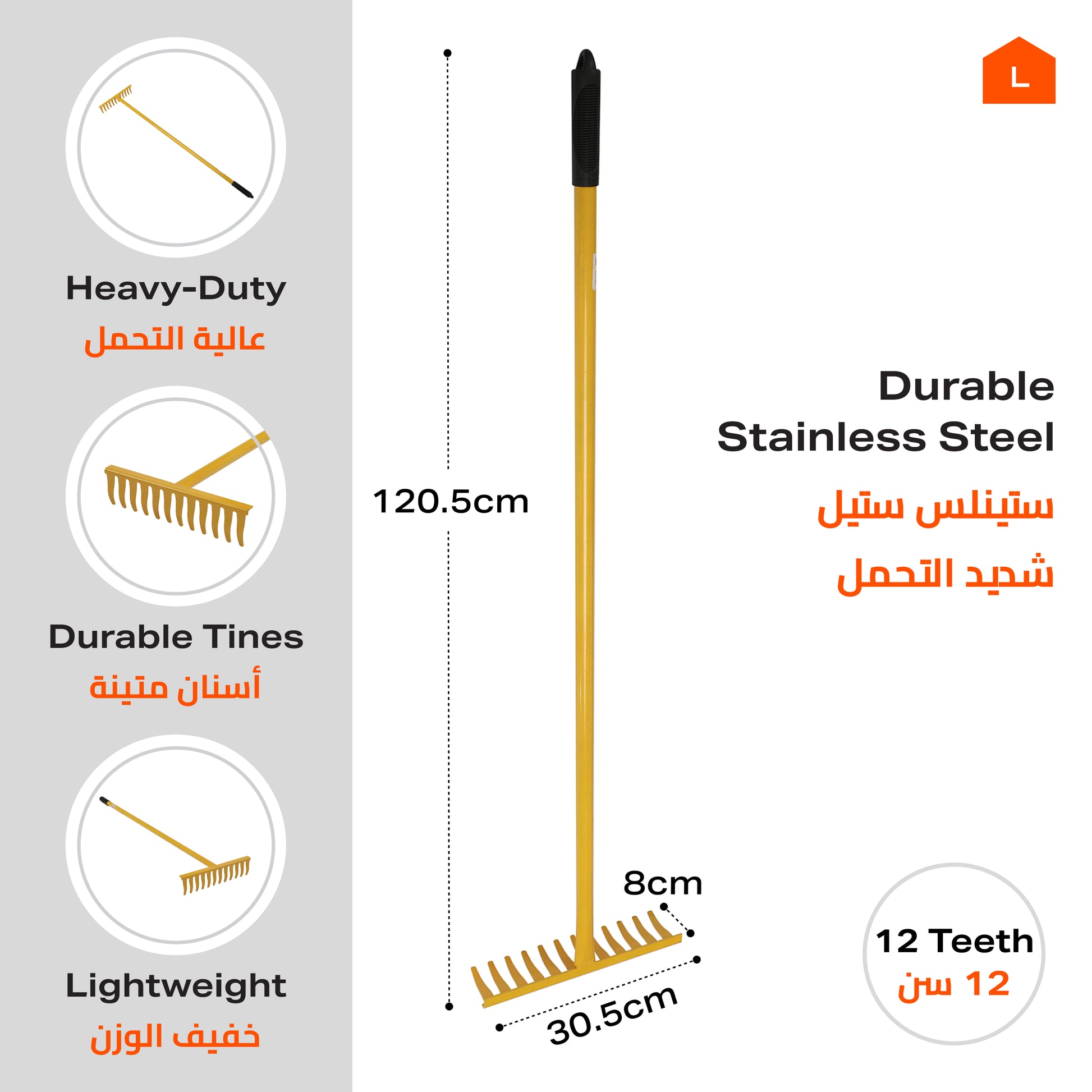 مشط حديقة - 1.2 متر من الفولاذ المقاوم للصدأ لإزالة التربة والرمل والحطام