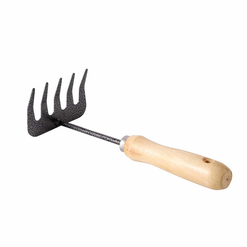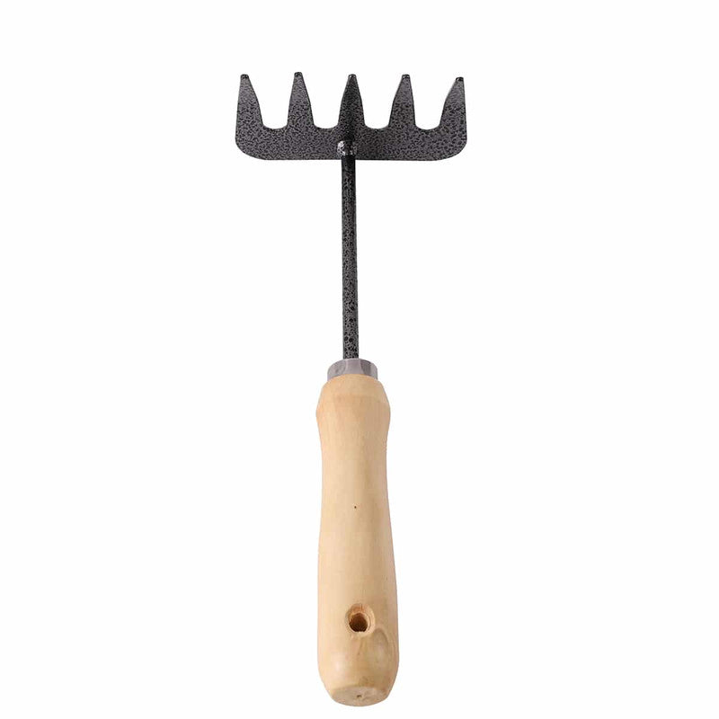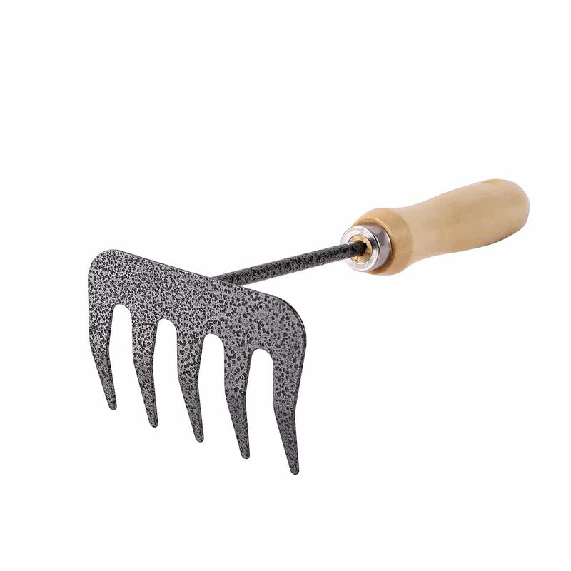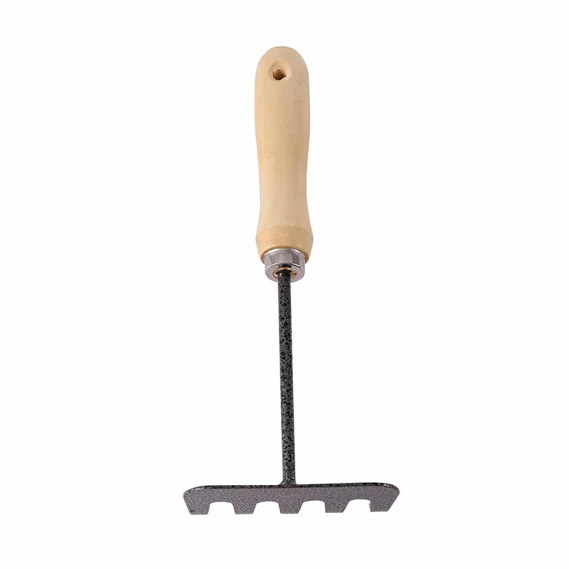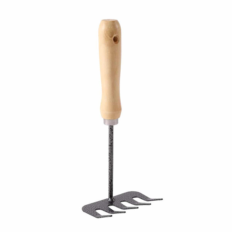 مشط حدائق بمقبض خشبي - أداة يدوية بخمسة أسنان لتخفيف التربة وإزالة الأعشاب الضارة والزراعة في الحدائق والأواني والأحواض الخارجية