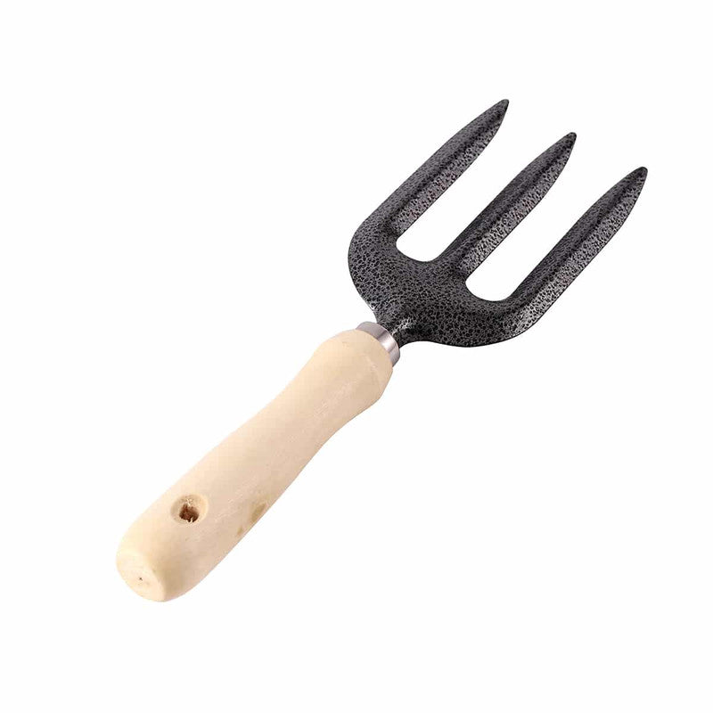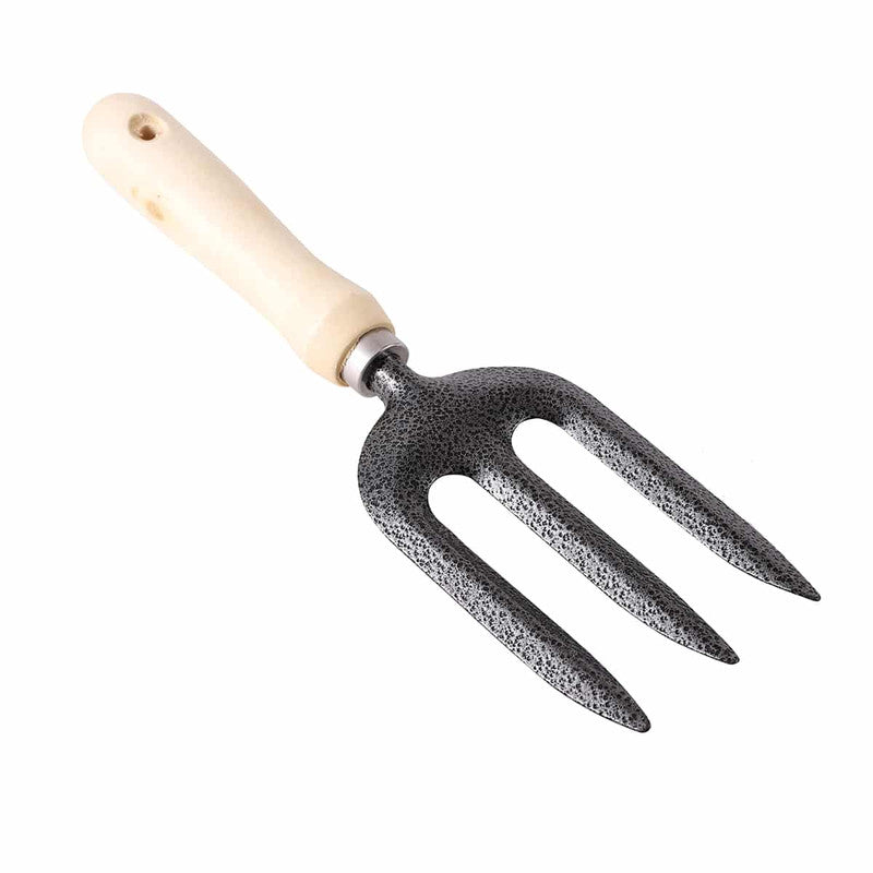 مشط يدوي بمقبض خشبي - شوكة بستنة ثلاثية الأسنان لتخفيف التربة وإزالة الأعشاب الضارة والزراعة - أداة حديقة متينة للاستخدام في الفناء والحديقة والاستخدام الخارجي