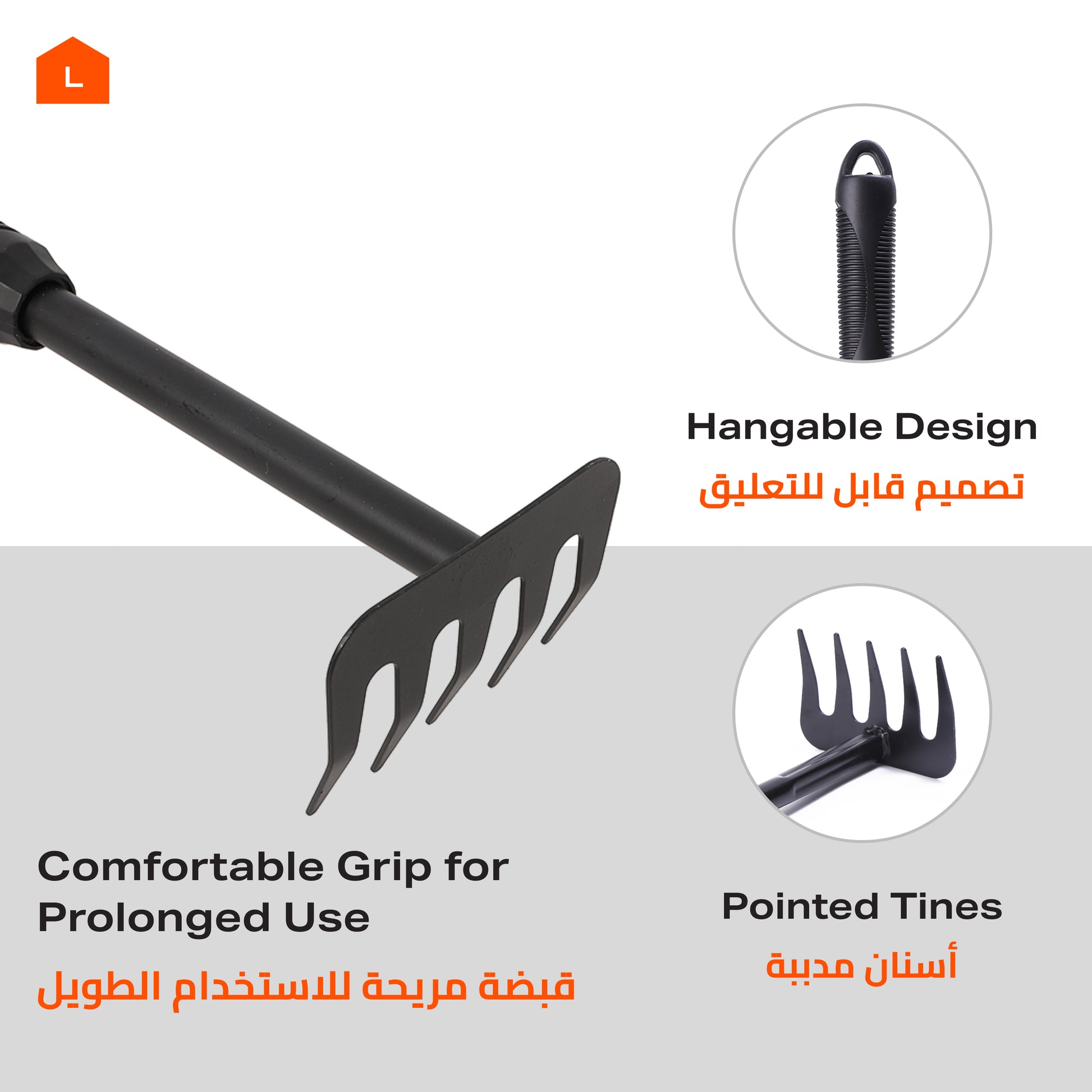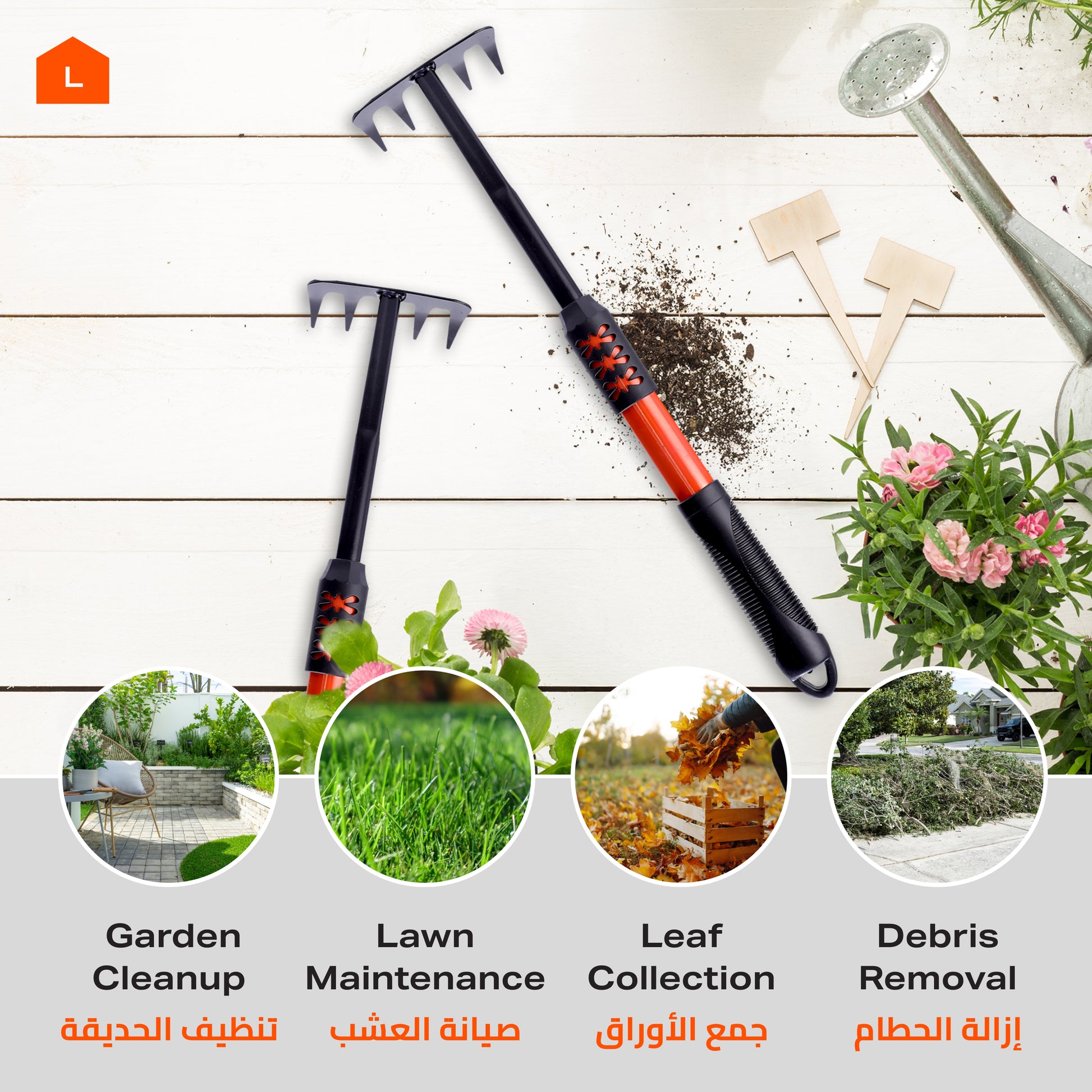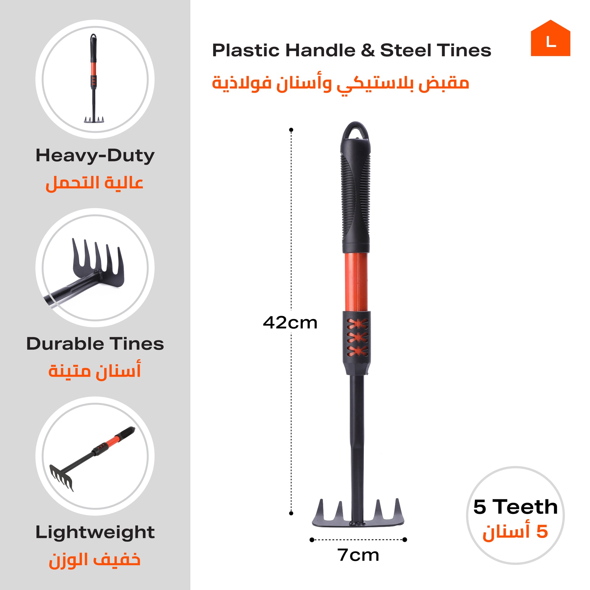 أداة بستنة بمقبض طويل - مشط يدوي بطول 42 سم مزود بخمسة أسنان - مثالي لتخفيف التربة وإزالة الأعشاب الضارة والزراعة والعناية بالحدائق الصغيرة