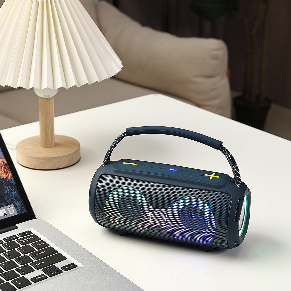 سماعة بلوتوث مزدوج مقاوم للماء - 5 واط مع إضاءة LED - مكبر صوت محمول ستايل بومبوكس للسفر، الاستخدام الخارجي والداخلي