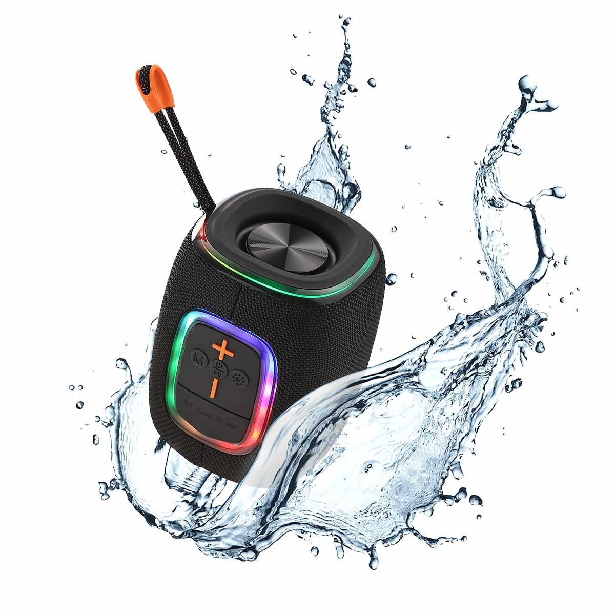 سماعة بلوتوث مقاوم للماء - 7W مع إضاءة LED - مكبر صوت لاسلكي محمول للاستخدام الخارجي، السفر، والاستعمال المنزلي
