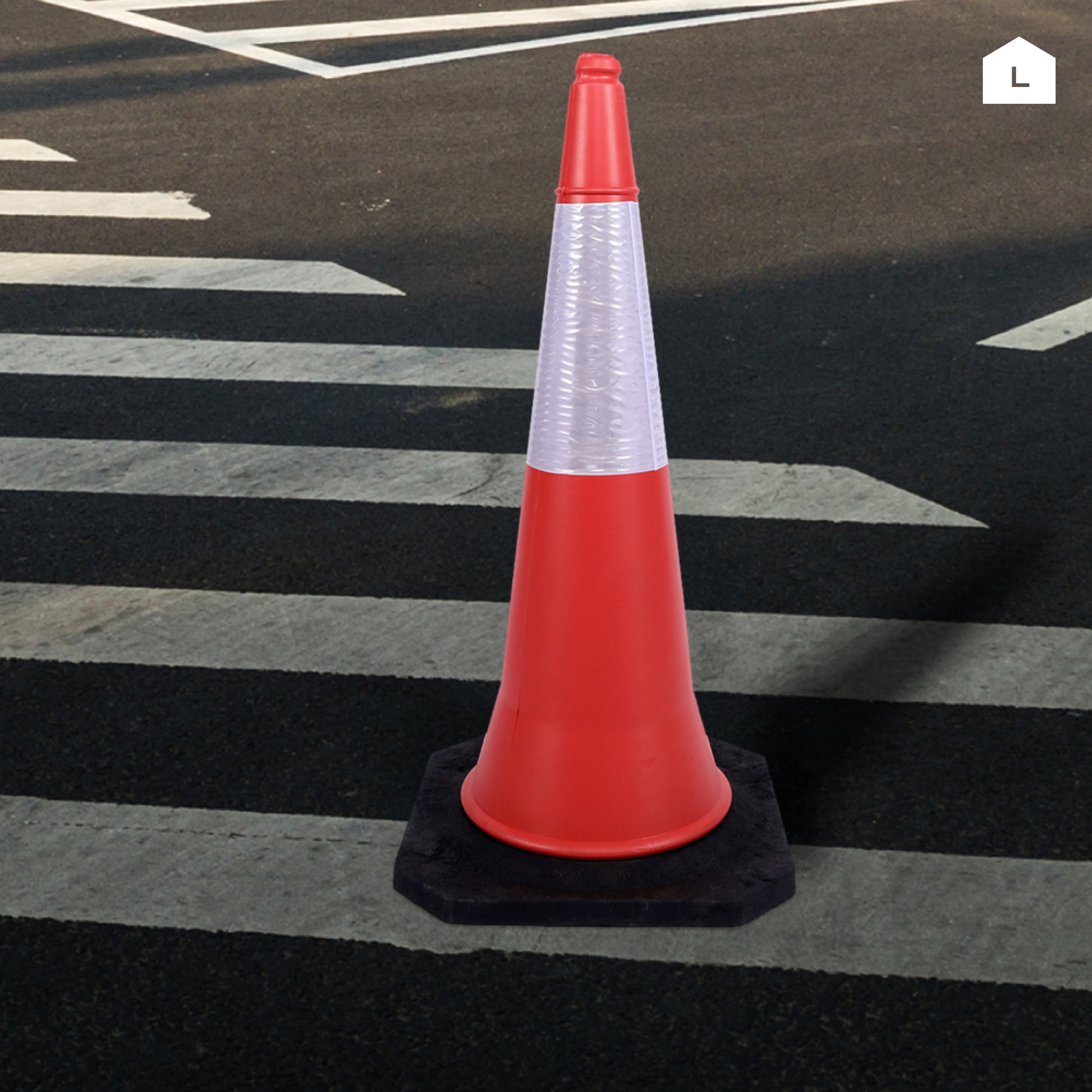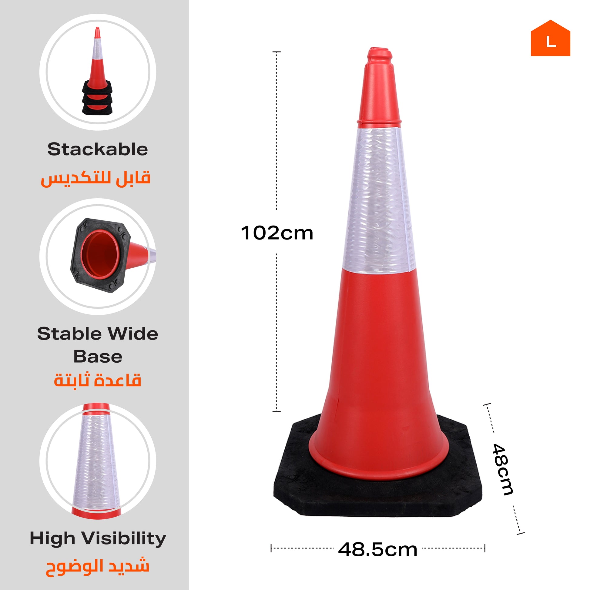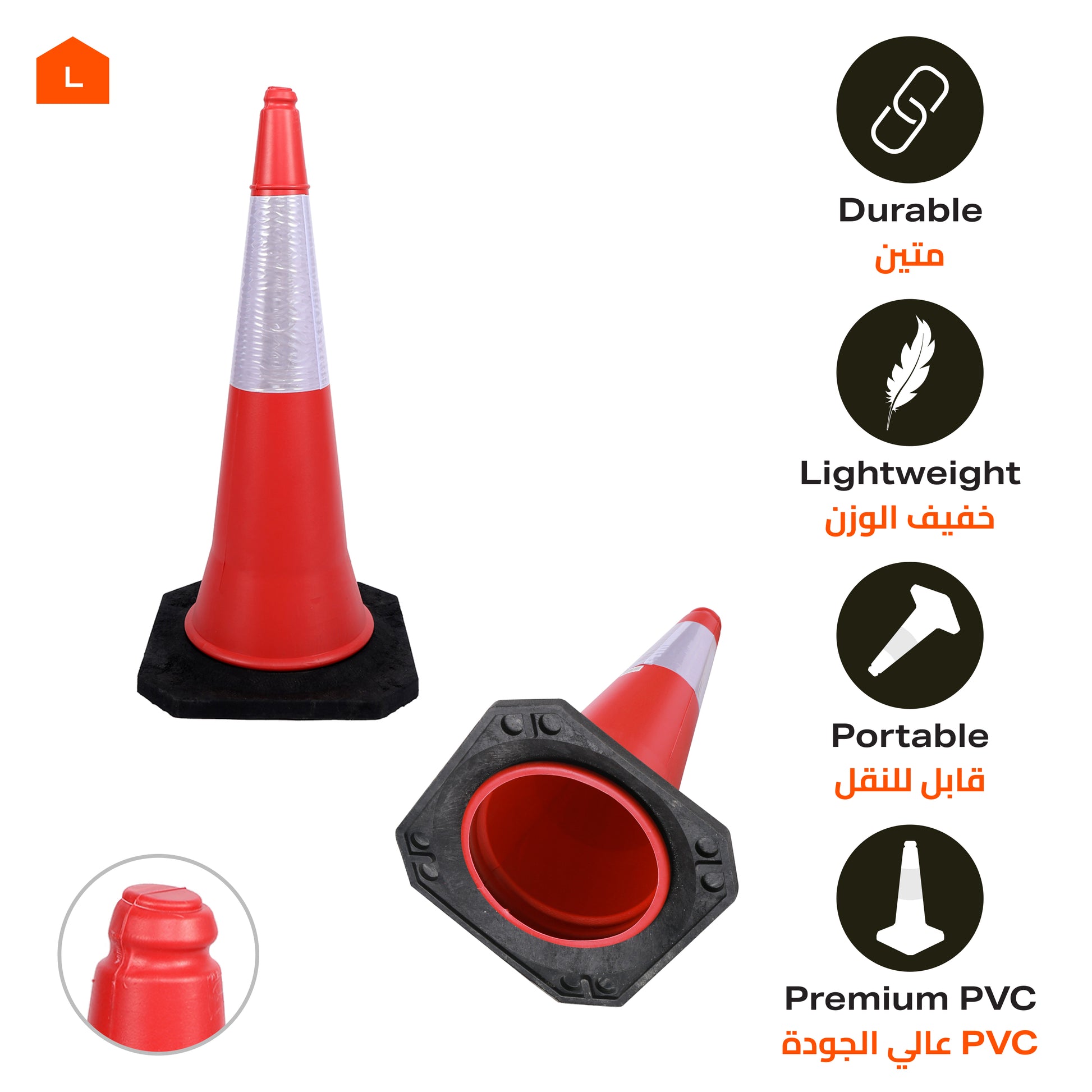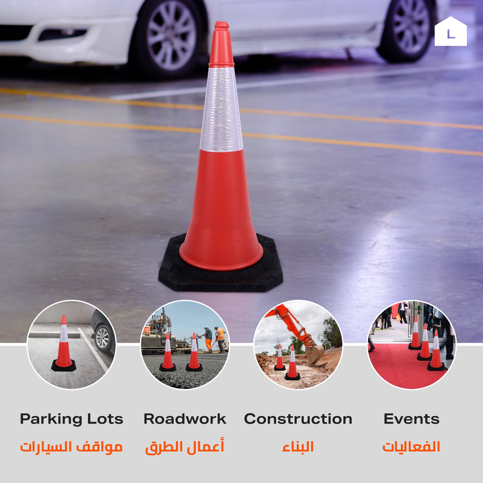 قمع مرور - 1 متر - مخروط أمان عاكس - للاستخدام في السلامة المرورية وأعمال البناء وتنظيم حركة السير