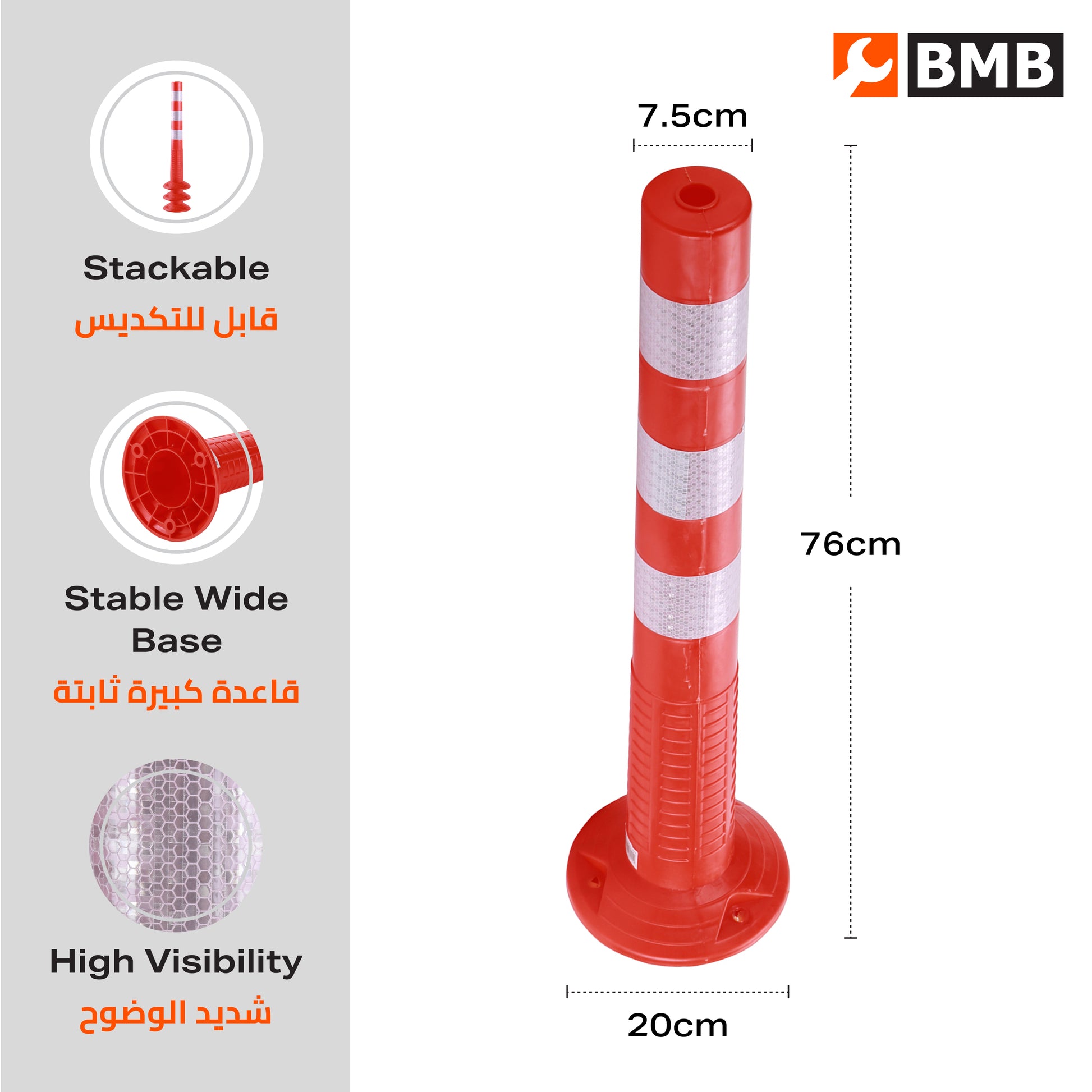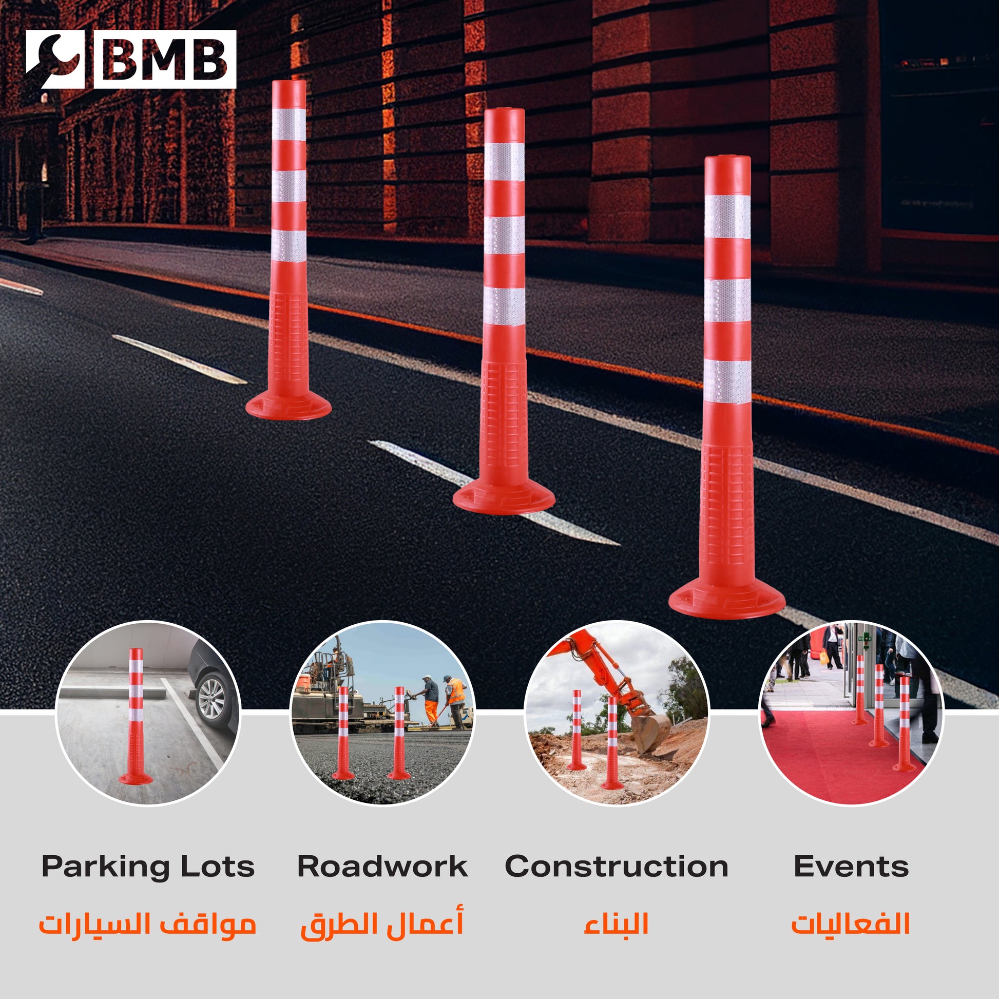 عمود سلامة مروري - 3 قطع بارتفاع 75 سم - عمود تحكم مروري عاكس - للطريق، ومواقف السيارات، ومواقع البناء، وتنظيم الفعاليات