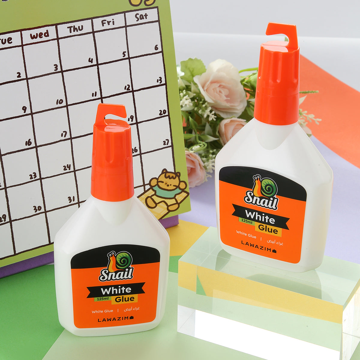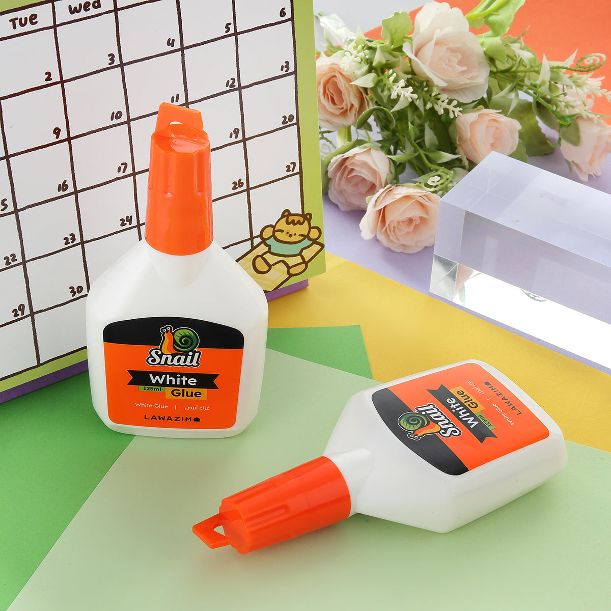 غراء الحلزون - قطعتان 125 مل - لاصق أبيض للورق والكرتون والحرف اليدوية والمدارس والمكتب وسجلات القصاصات والمشاريع المنزلية