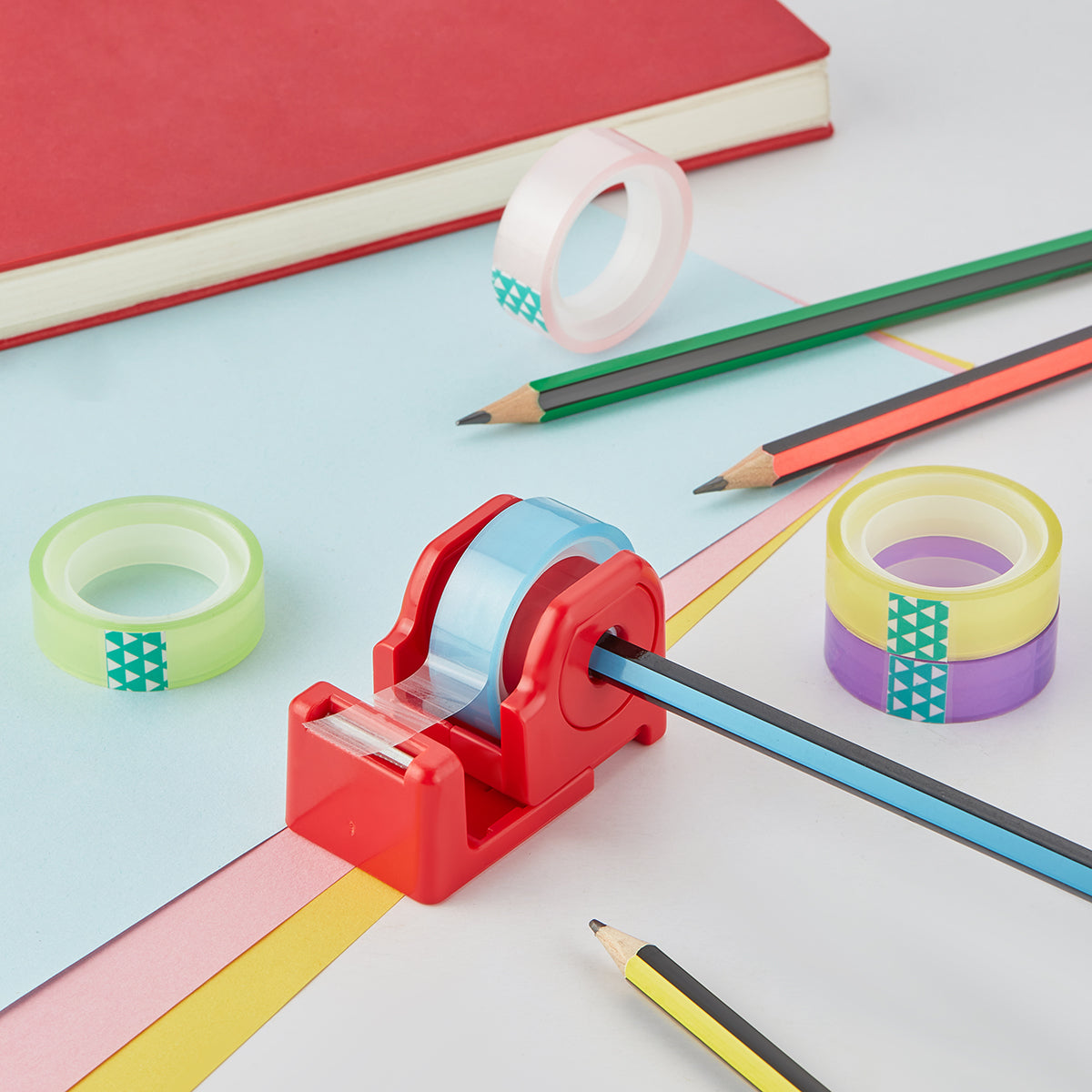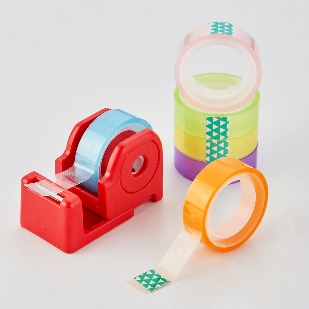 شريط لاصق ملون للقرطاسية على شكل حلزون - 5 قطع - أشرطة لاصقة شفافة مزخرفة مع موزع - للتغليف والفنون والحرف اليدوية والاستخدام اليومي