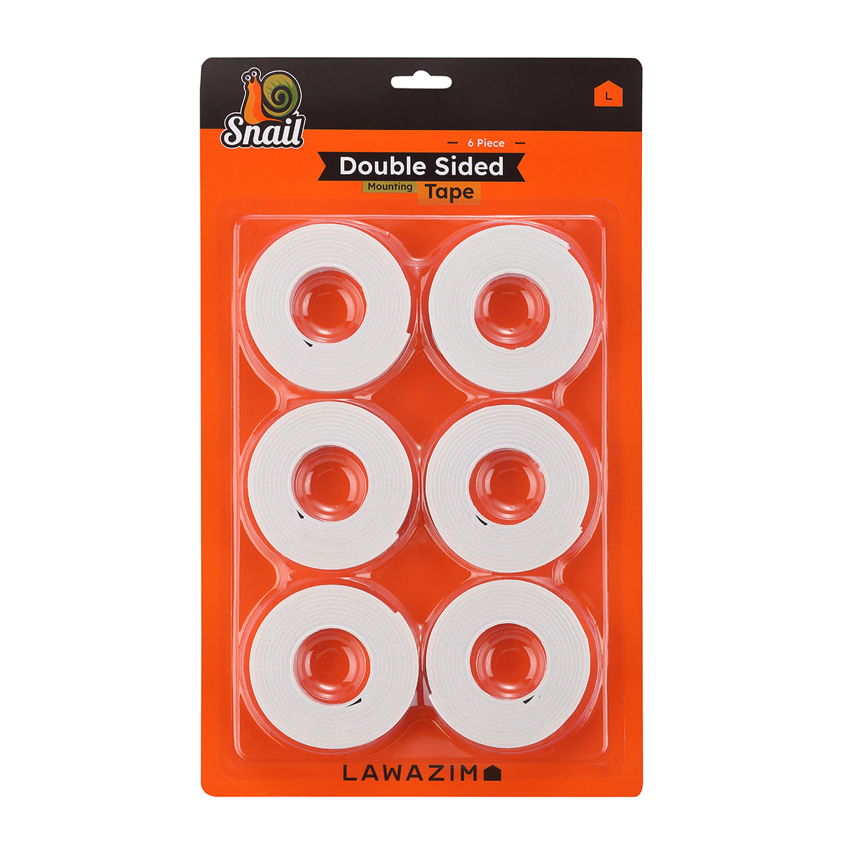 شريط لاصق مزدوج الجوانب من Snail - 6 قطع - شرائط لاصقة من الإسفنج القوي للجدران والإطارات والسجاد والمشاريع المنزلية والاستخدام الداخلي والخارجي