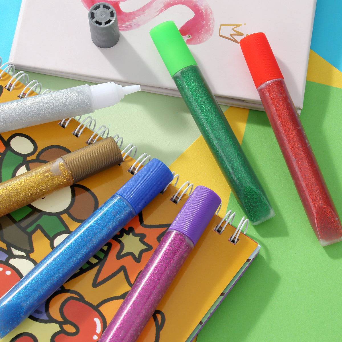 غراء لامع على شكل حلزون - 6 قطع - ألوان متنوعة - غراء حرفي لمشاريع "اصنعها بنفسك"، والمدرسة، وسجلات القصاصات، والديكورات، وصناعة البطاقات، ولوازم الفنون