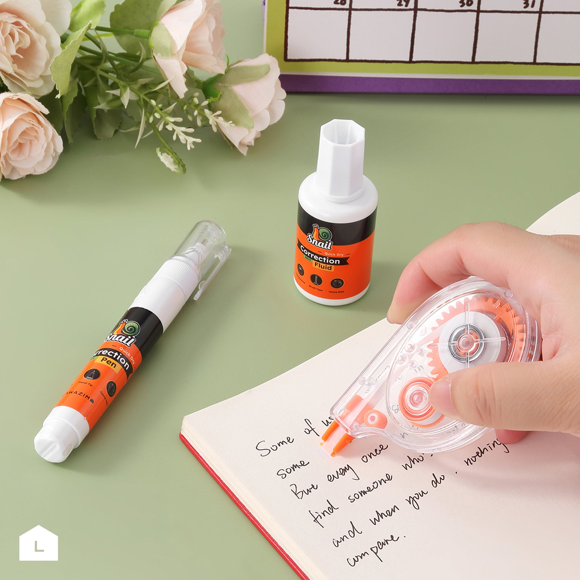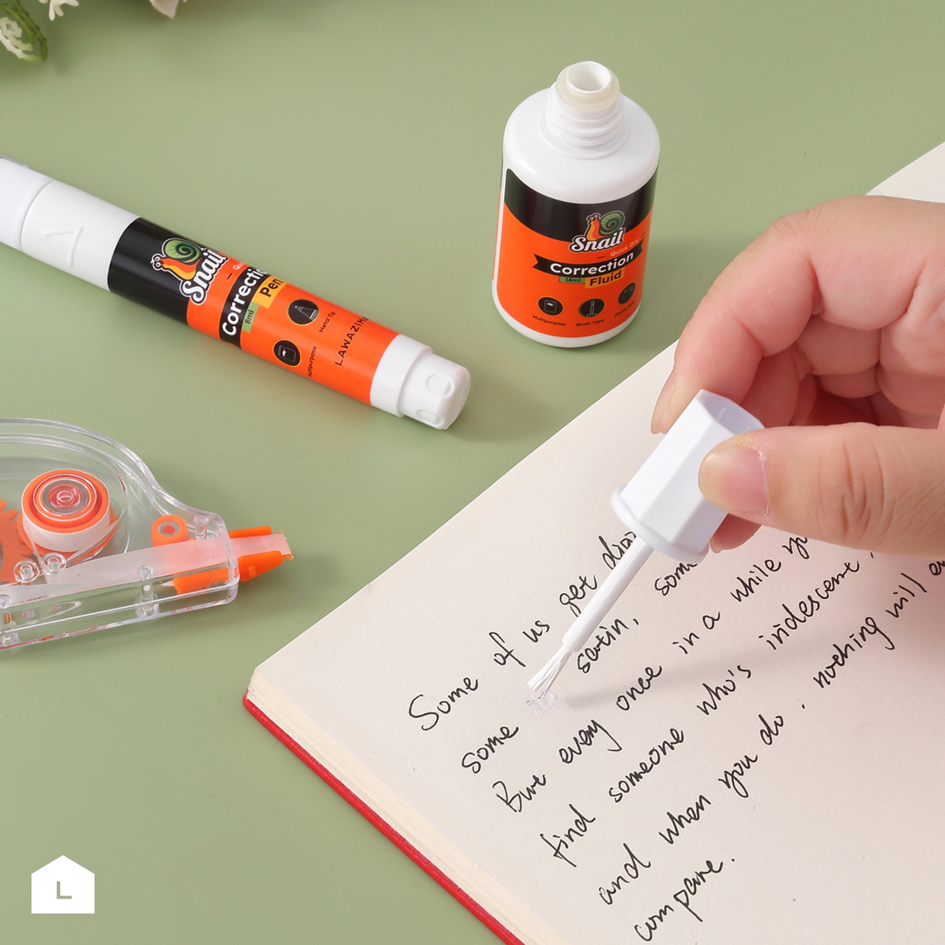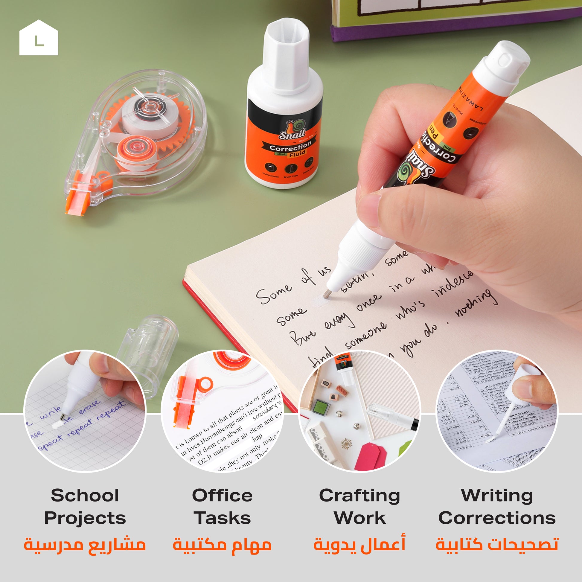 مجموعة تصحيح سريعة الجفاف متعددة الأغراض من Snail - تتضمن قلم تصحيح وسائل تصحيح وشريط تصحيح لتثبيت الورق النظيف في المكتب والمدرسة والاستخدام المنزلي