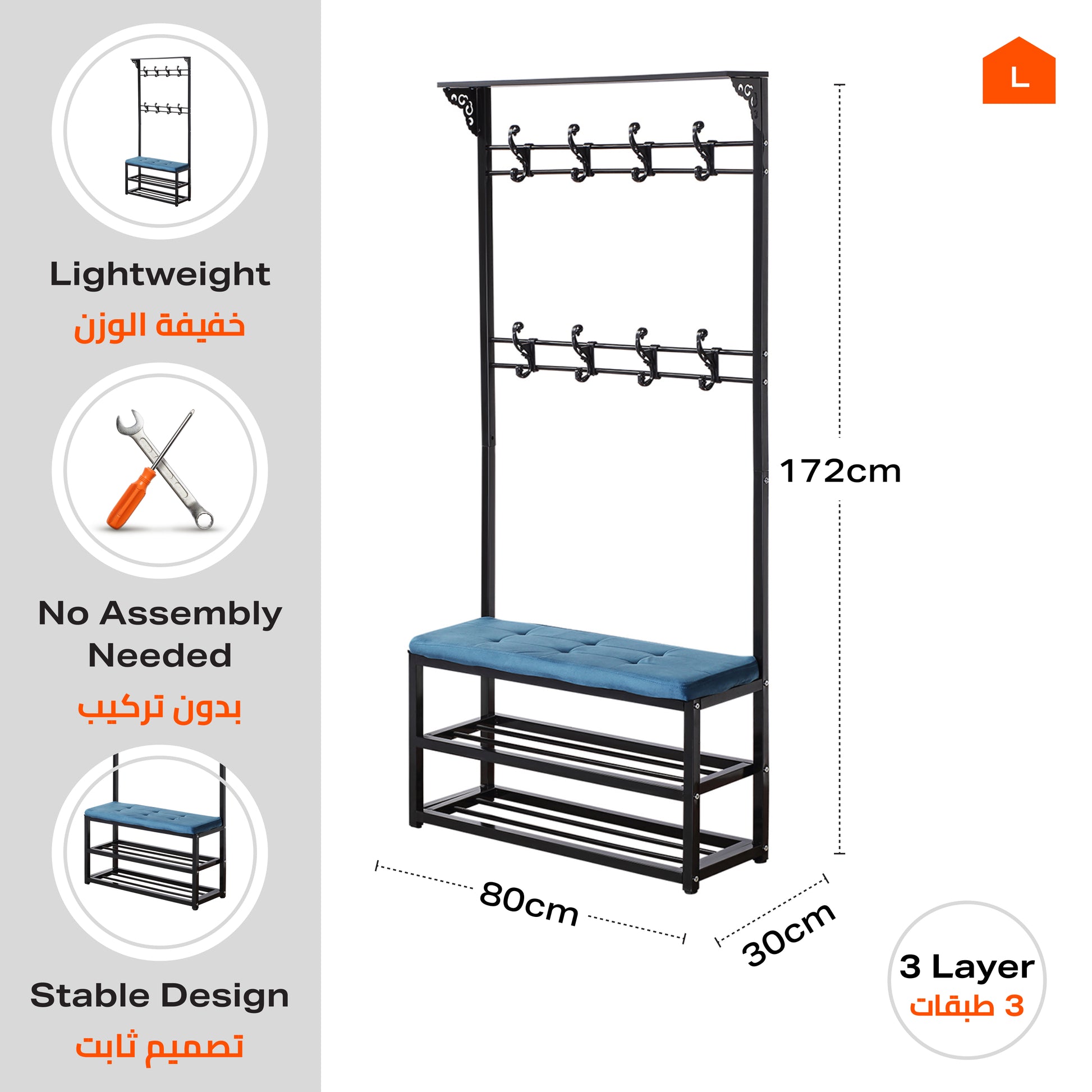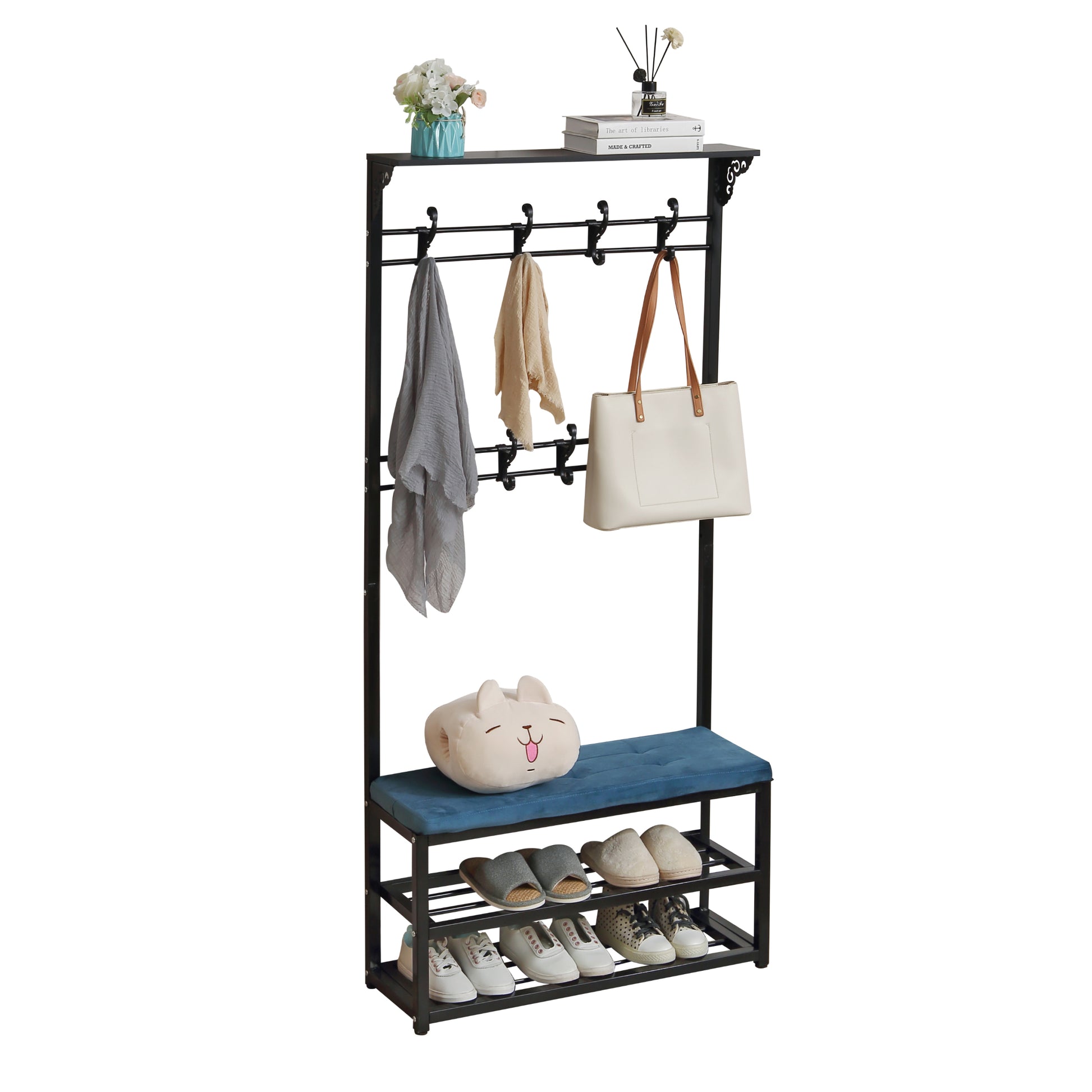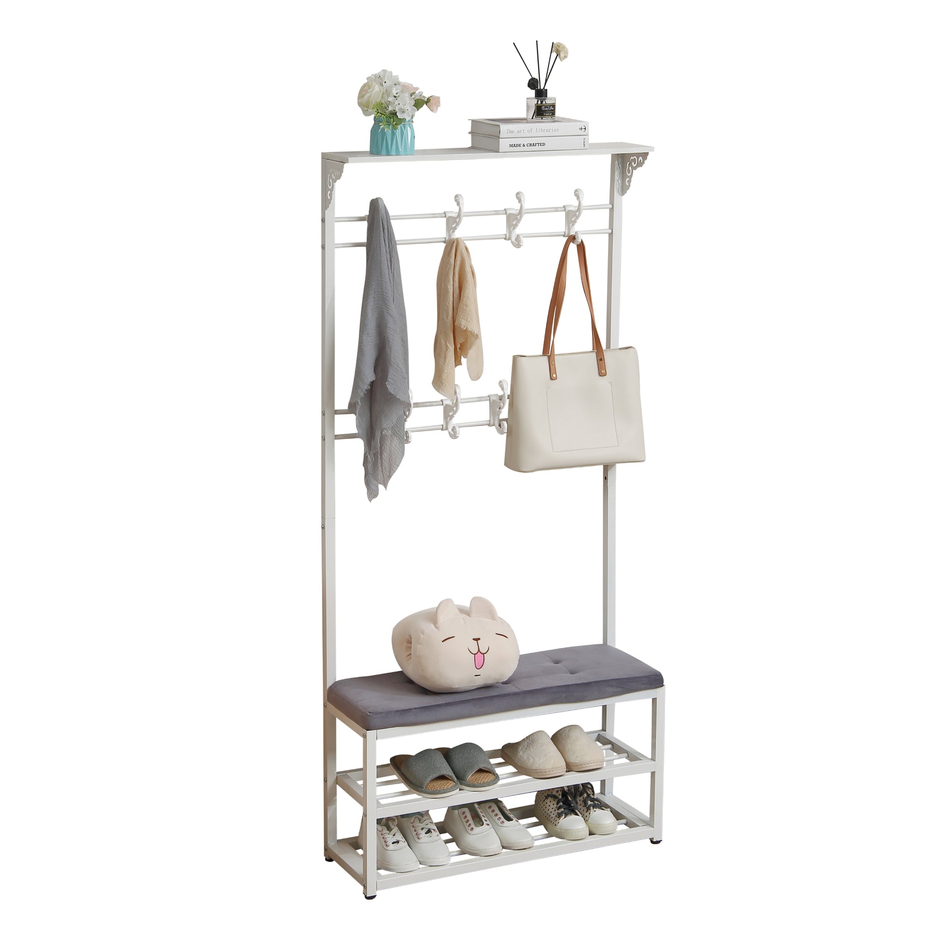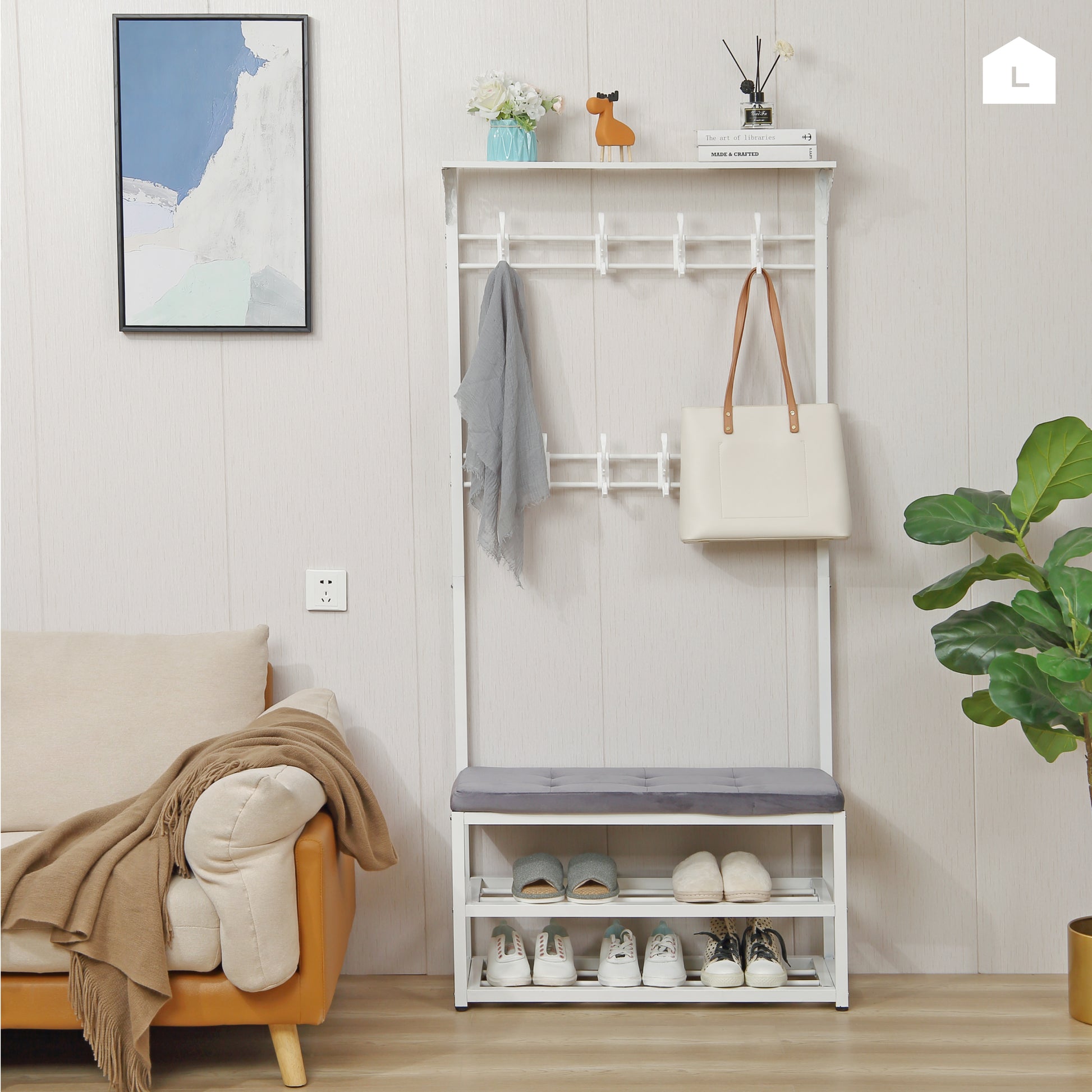 رف أحذية بثلاث طبقات مع علاقة معاطف ووسادة - رف أحذية مع رف علوي - للأحذية، الحقائب، والمعاطف