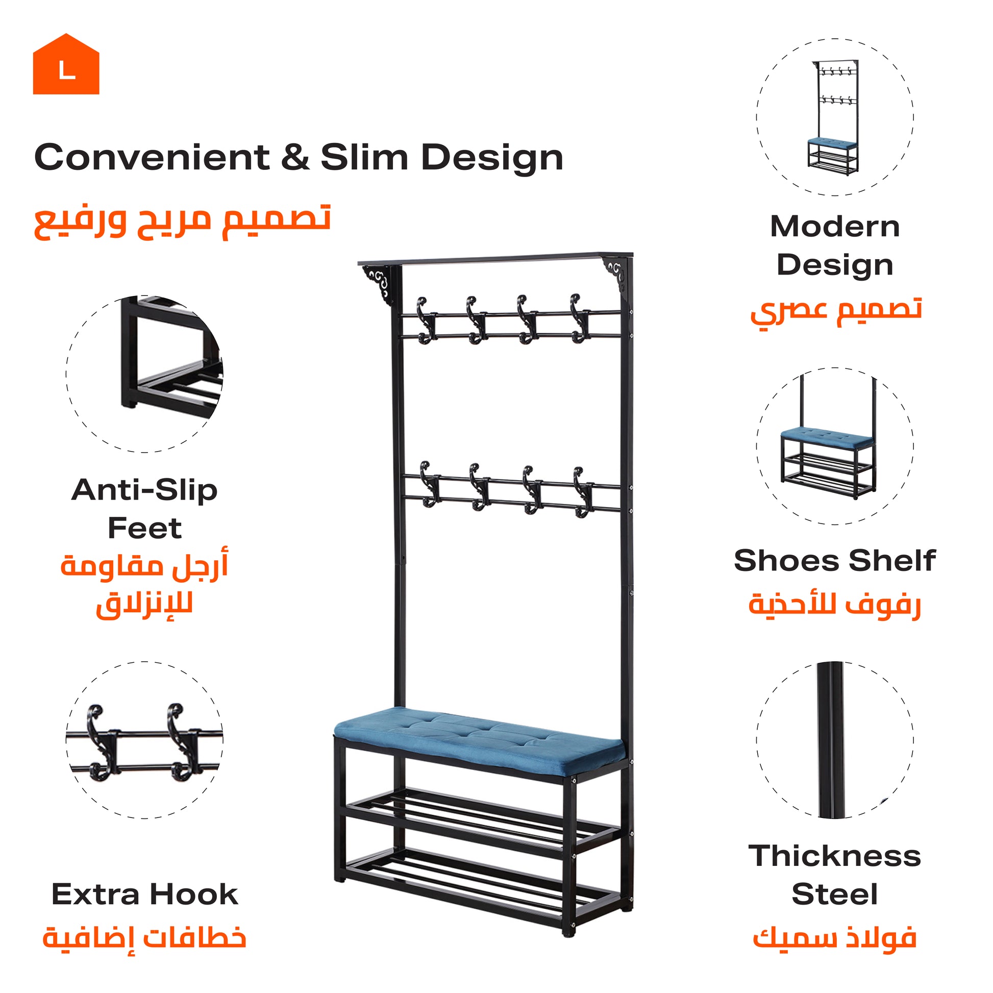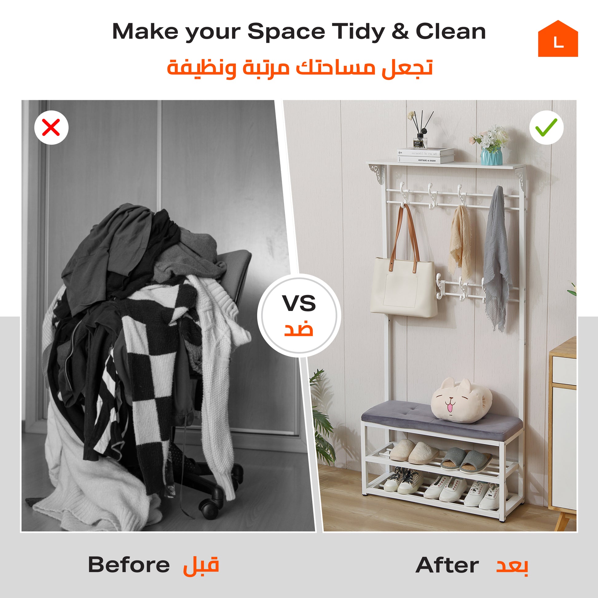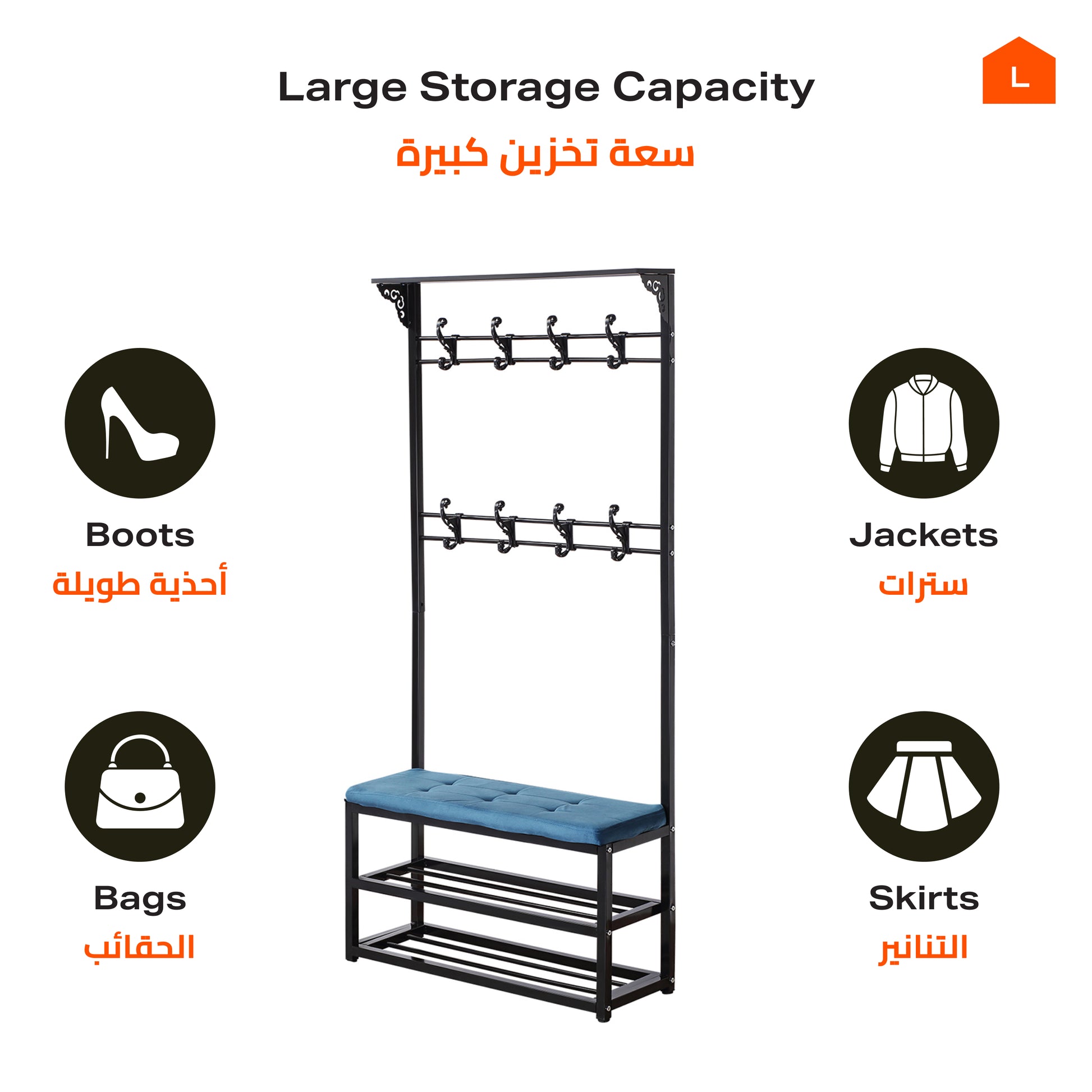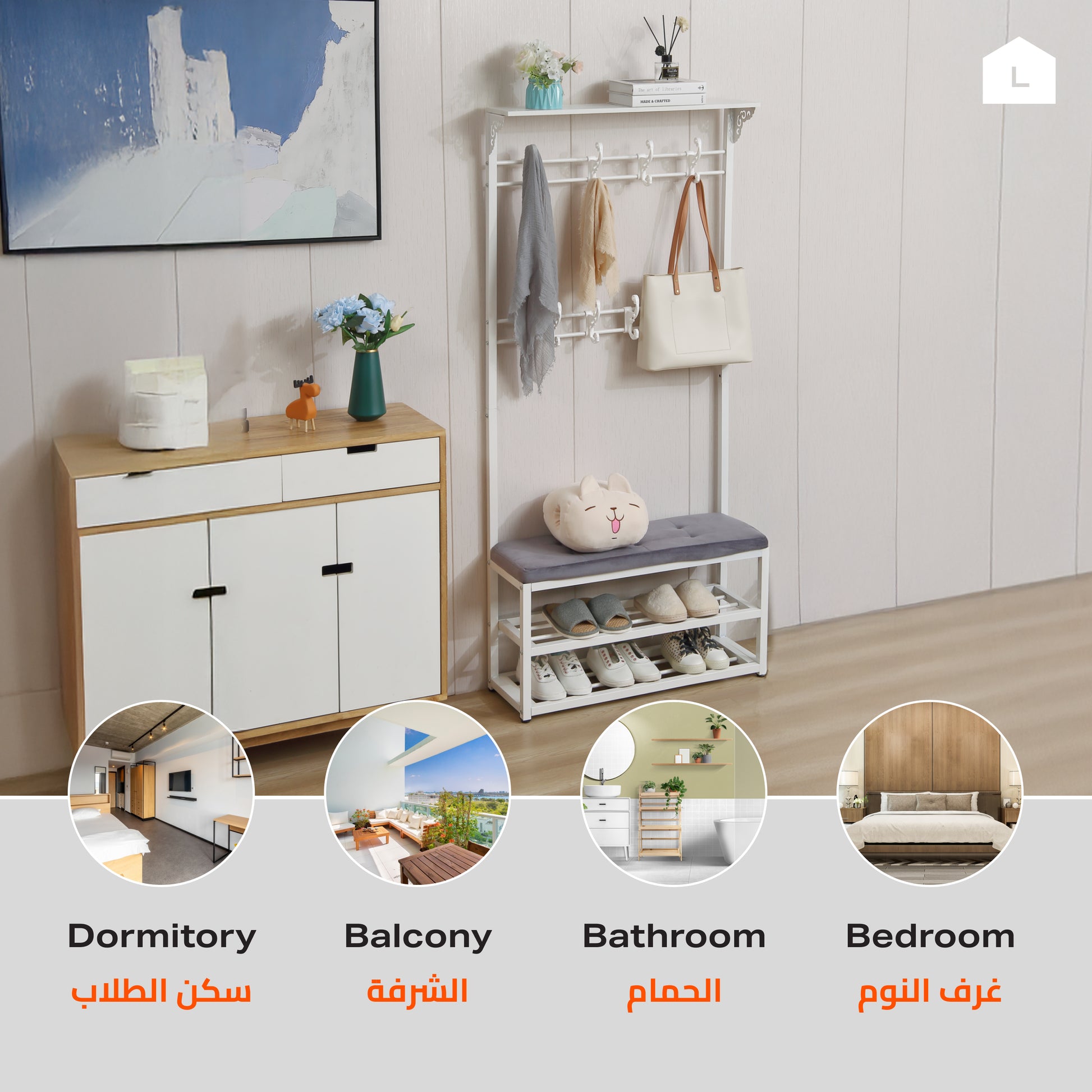 رف أحذية بثلاث طبقات مع علاقة معاطف ووسادة - رف أحذية مع رف علوي - للأحذية، الحقائب، والمعاطف