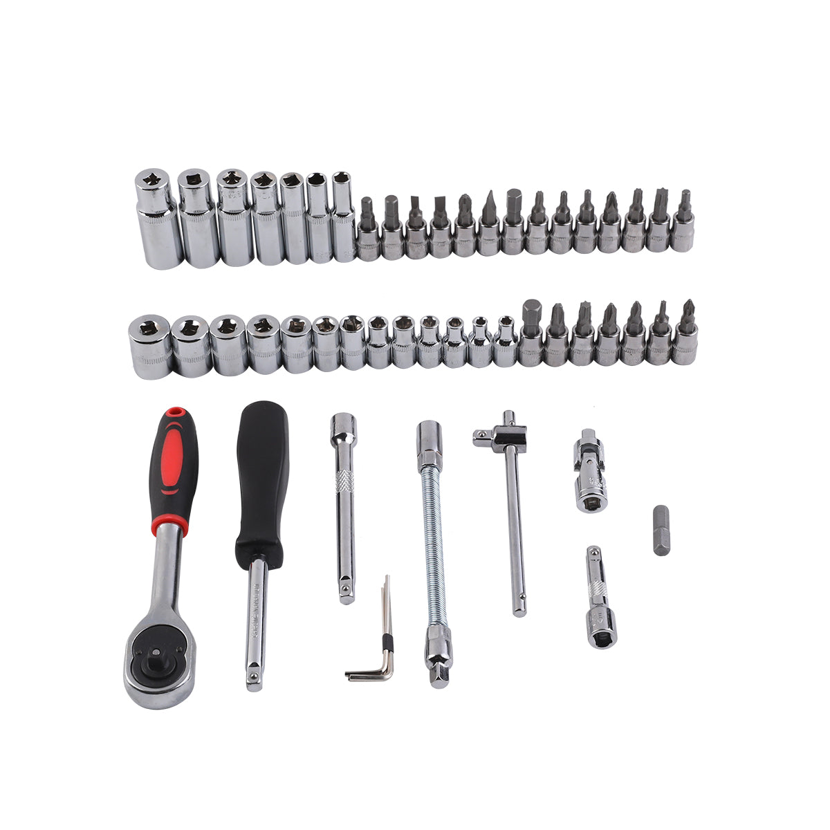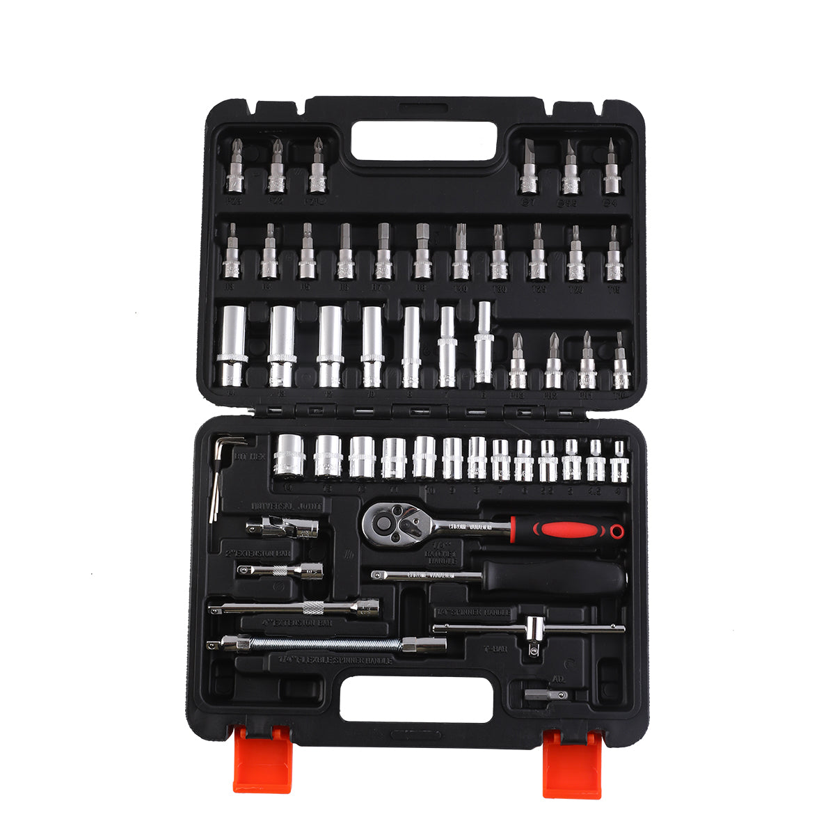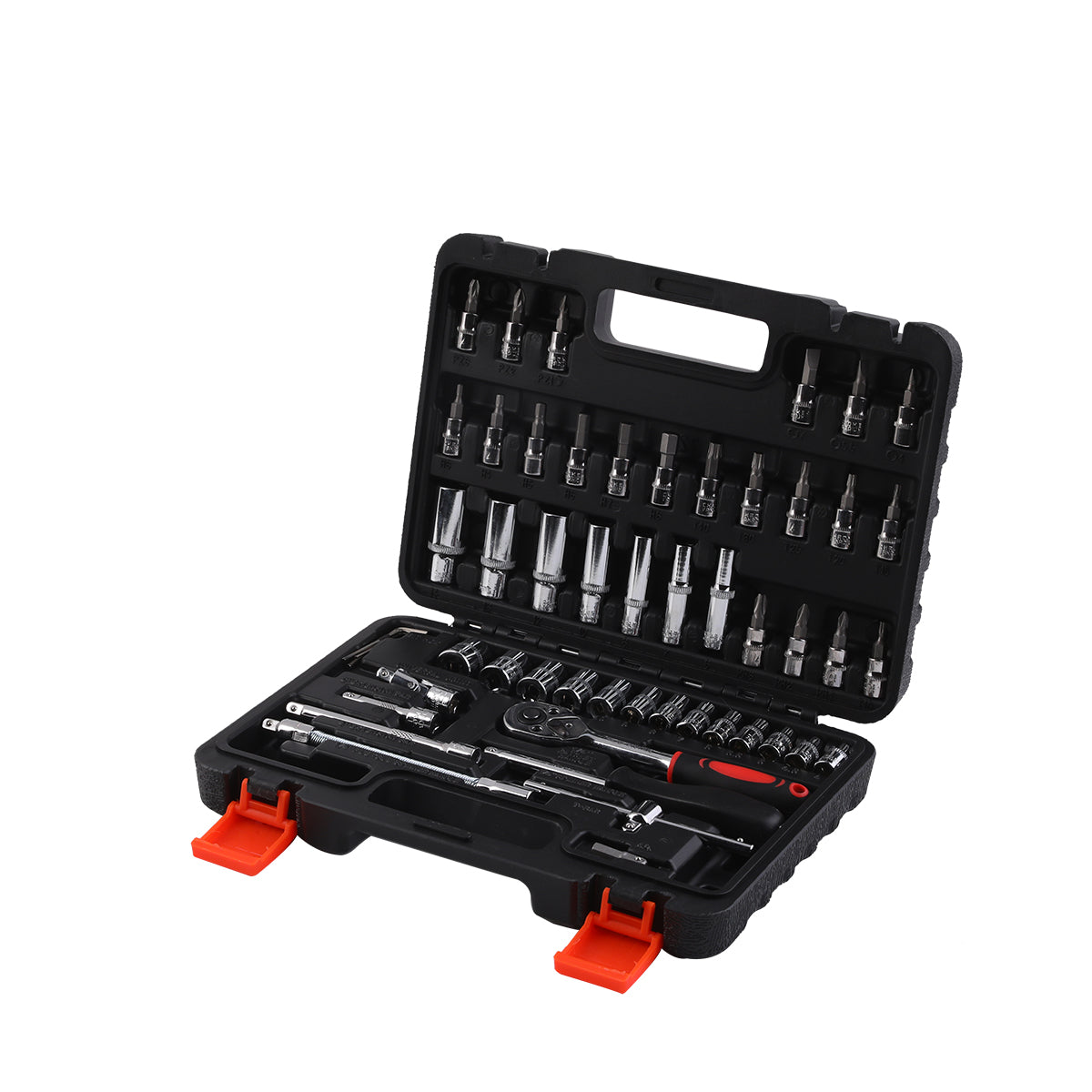 مجموعة أدوات مع حقيبة حمل - 53 قطعة - طقم مفتاح ربط بمقبض سقاطة، ورؤوس سداسية، ومقابس عميقة، وقضيب تمديد لإصلاح السيارات، والمرآب، وصيانة المنزل