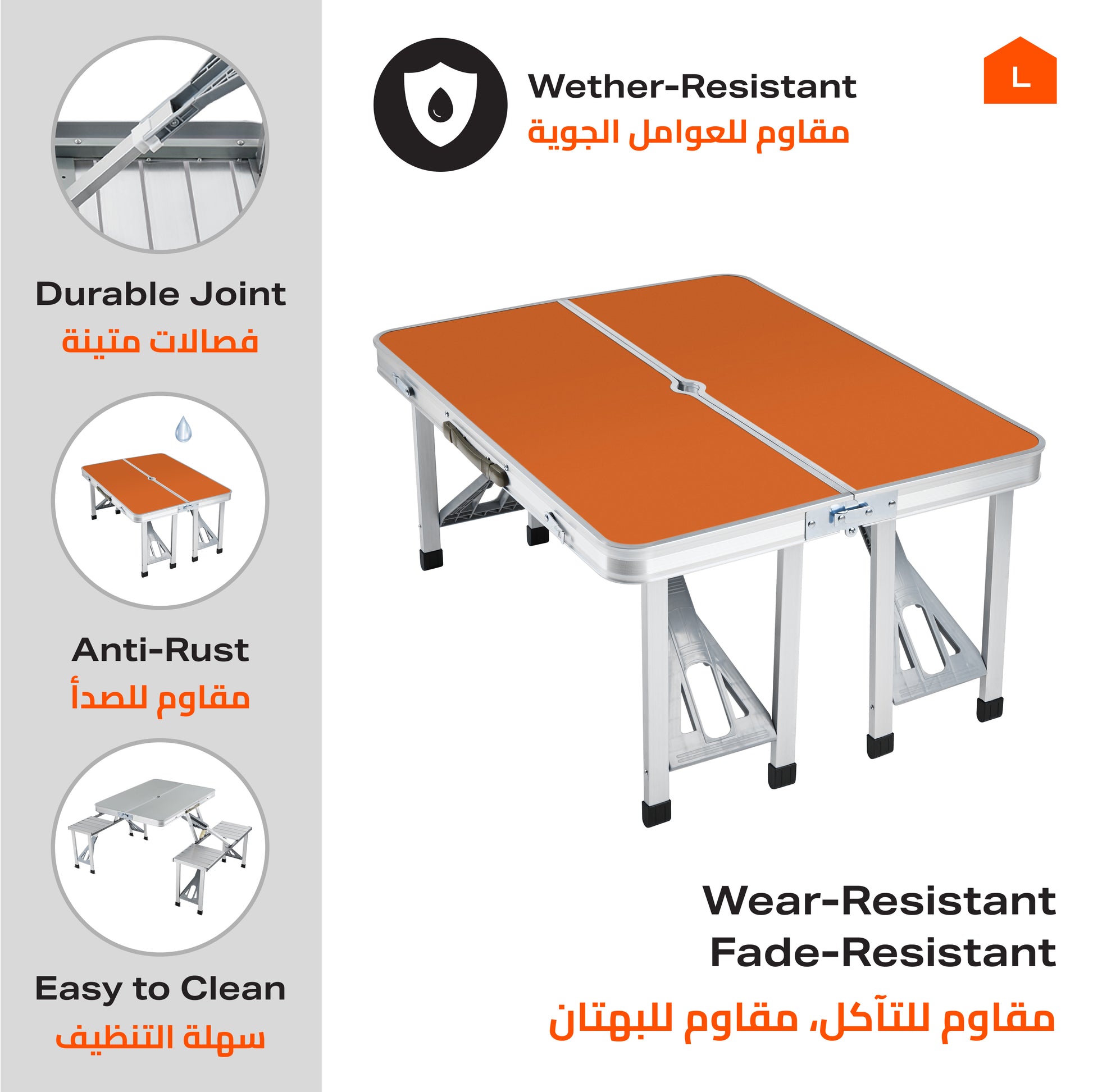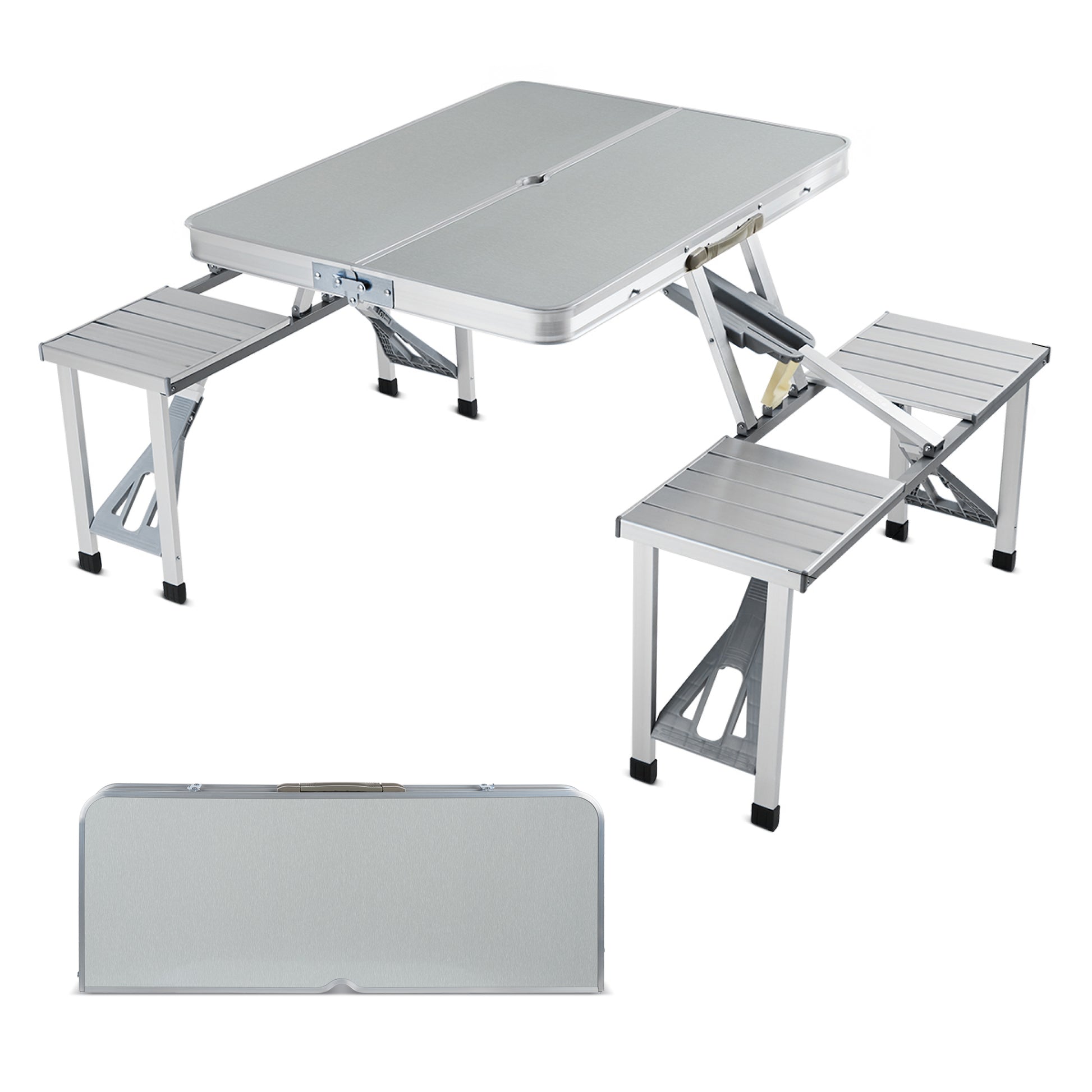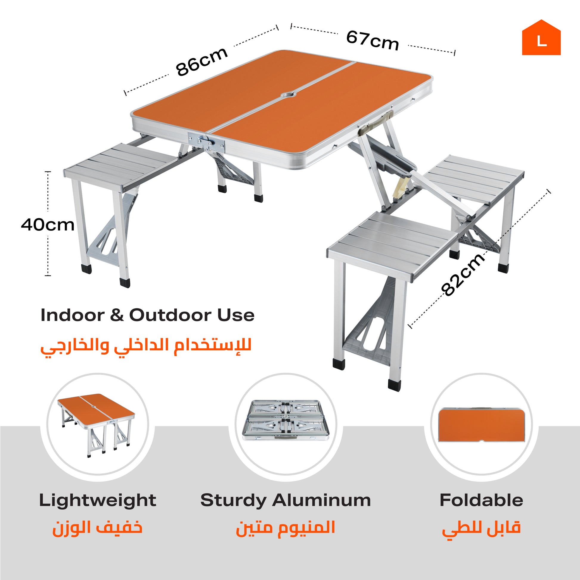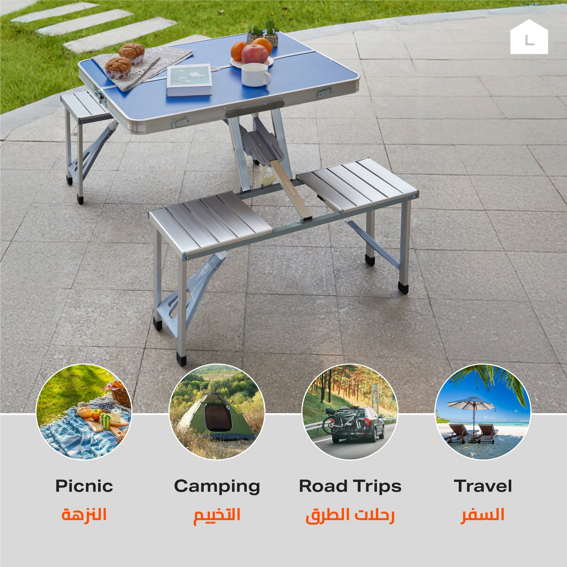 طقم طاولة ألمنيوم قابلة للطي مع كراسي - طاولة ومقاعد محمولة قابلة للطي للرحلات، التخييم، الشاطئ، والاستخدام الخارجي في الحدائق