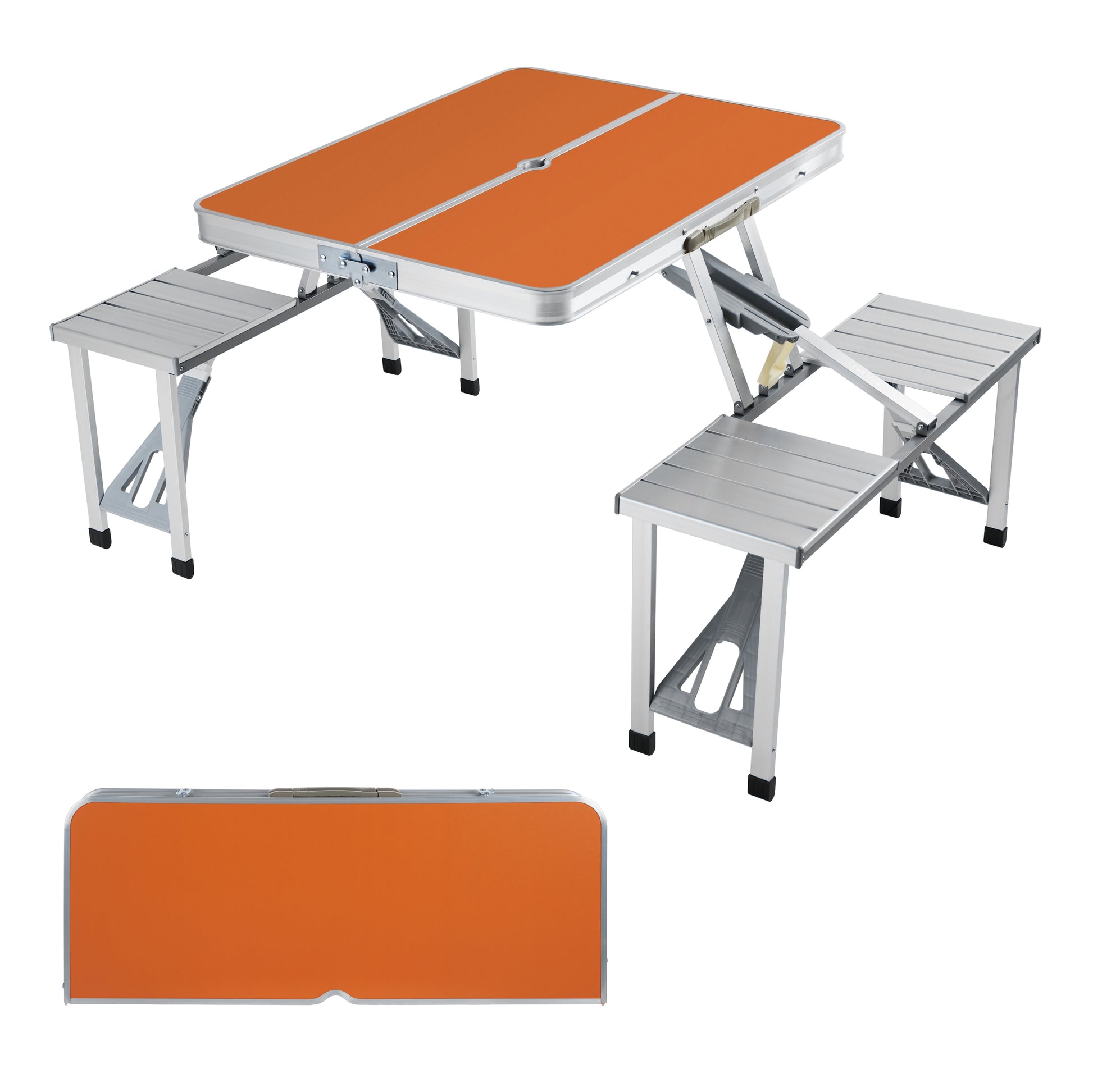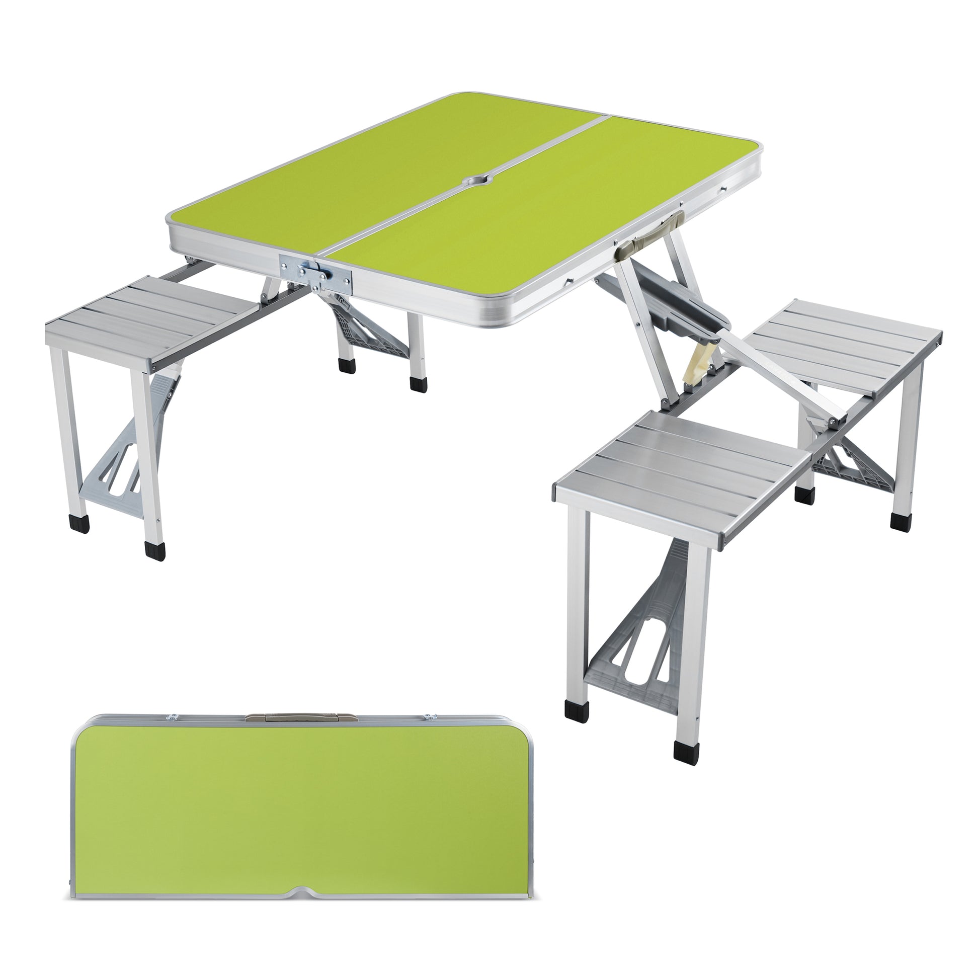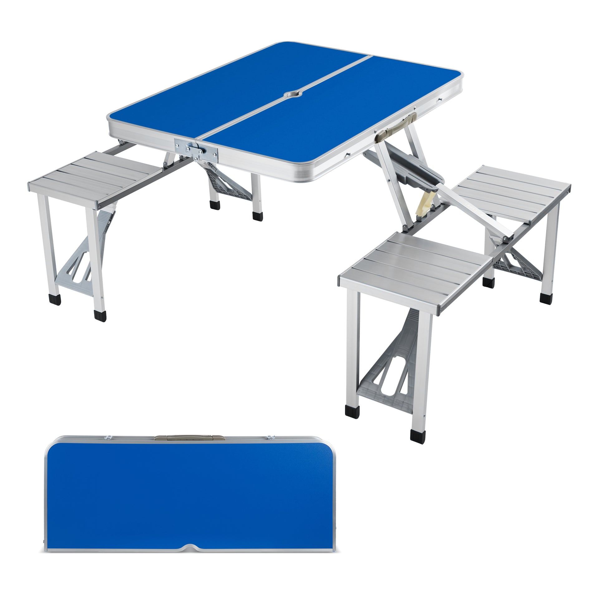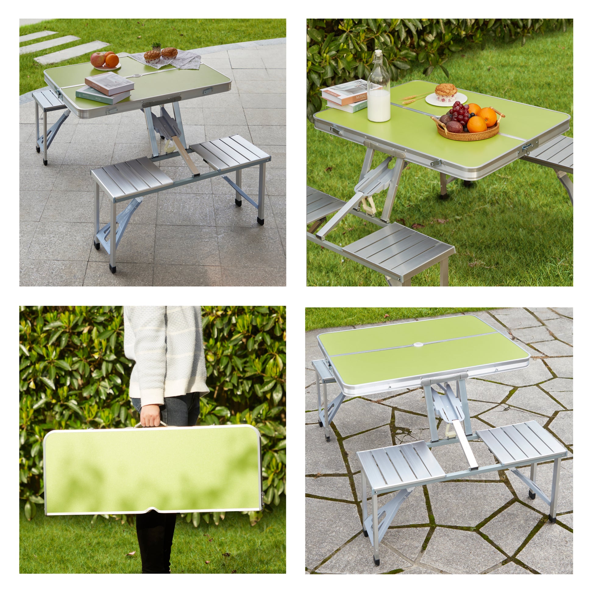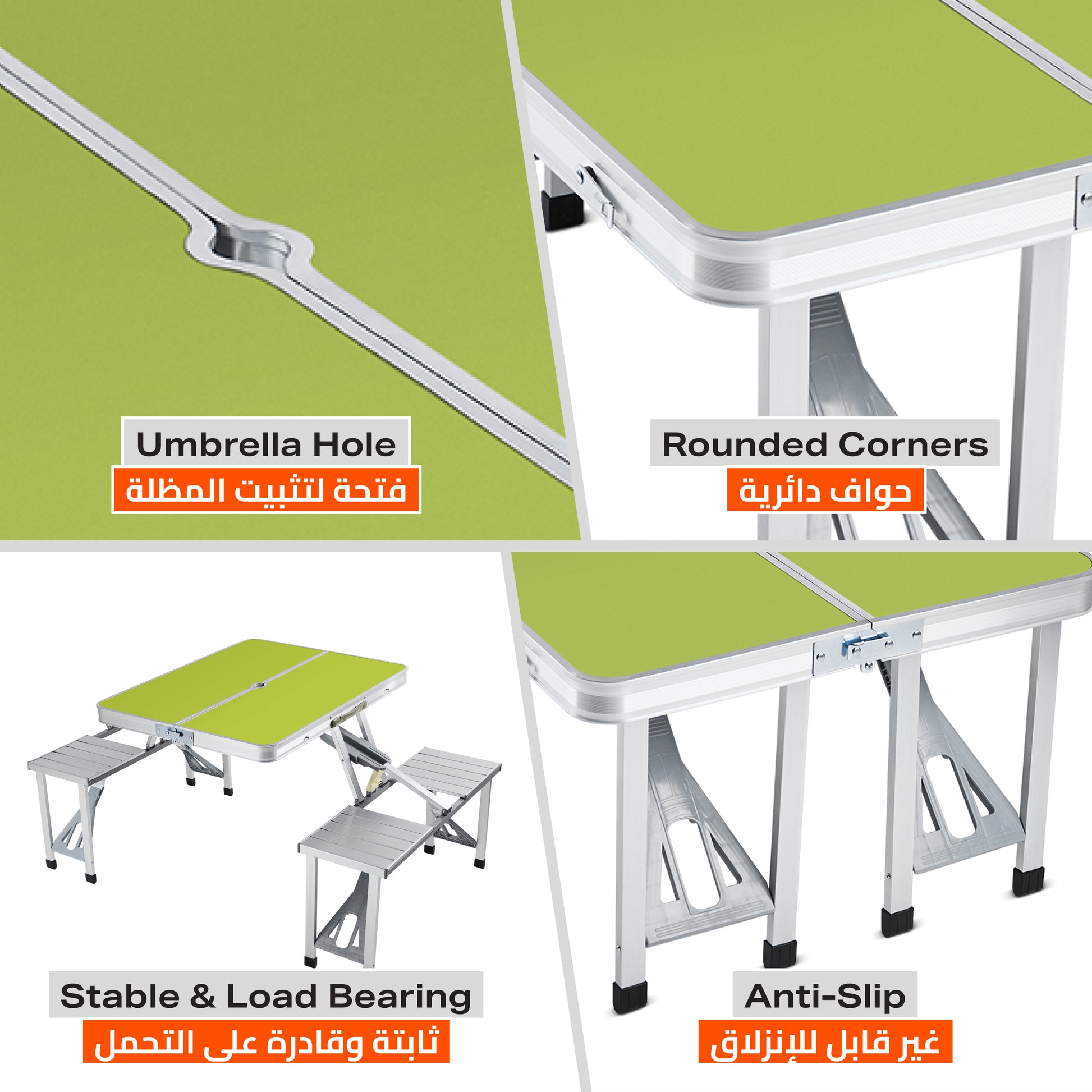 طقم طاولة ألمنيوم قابلة للطي مع كراسي - طاولة ومقاعد محمولة قابلة للطي للرحلات، التخييم، الشاطئ، والاستخدام الخارجي في الحدائق