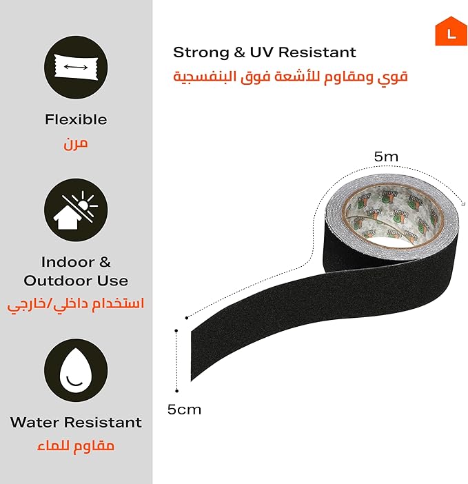 شريط حلزوني مانع للانزلاق - 5 سم × 5 م - شريط أمان مقاوم للانزلاق ومقاوم للماء للسلالم والأرضيات والمنحدرات والسلالم والأسطح الخارجية