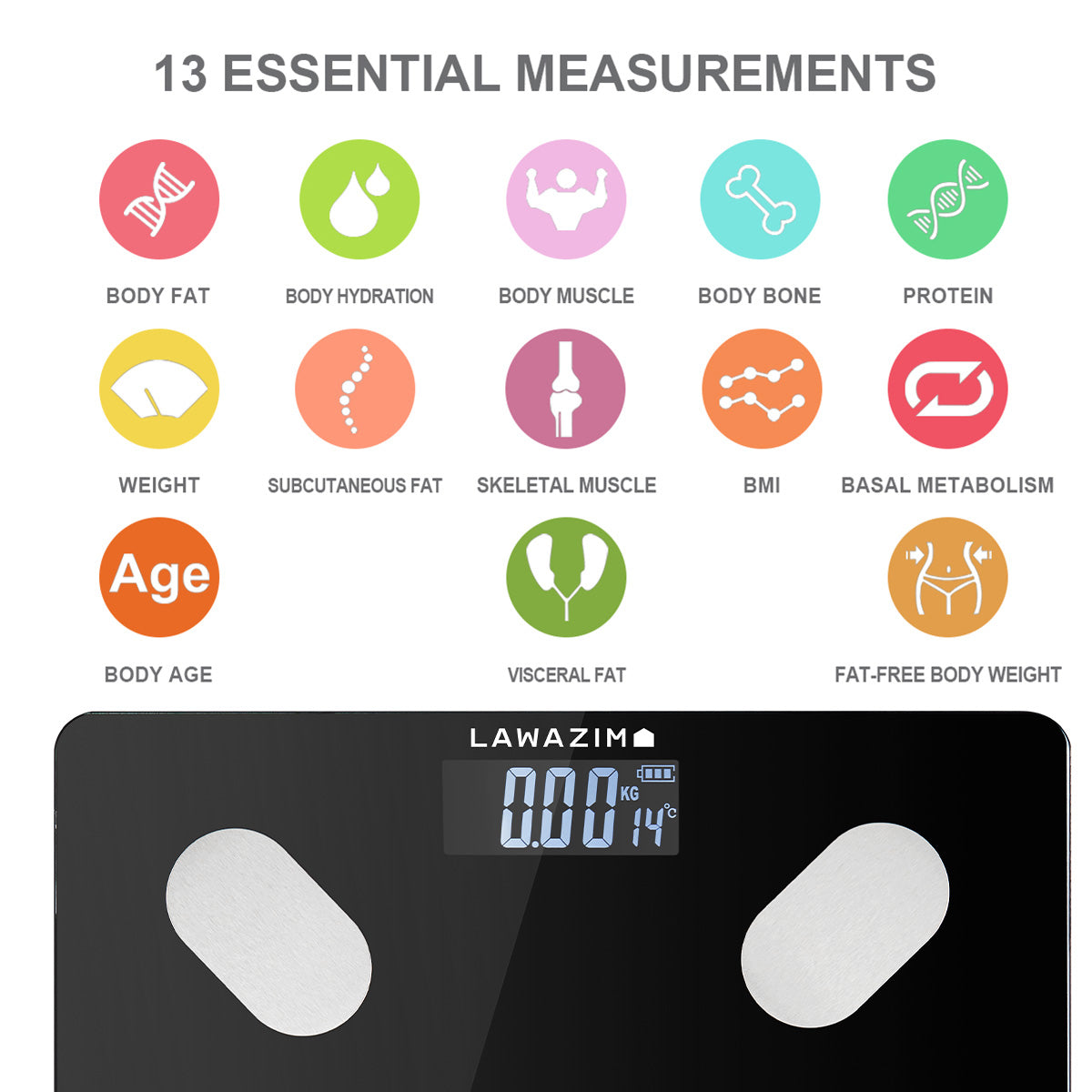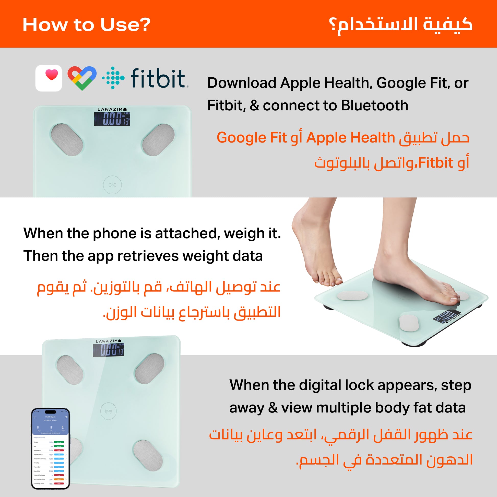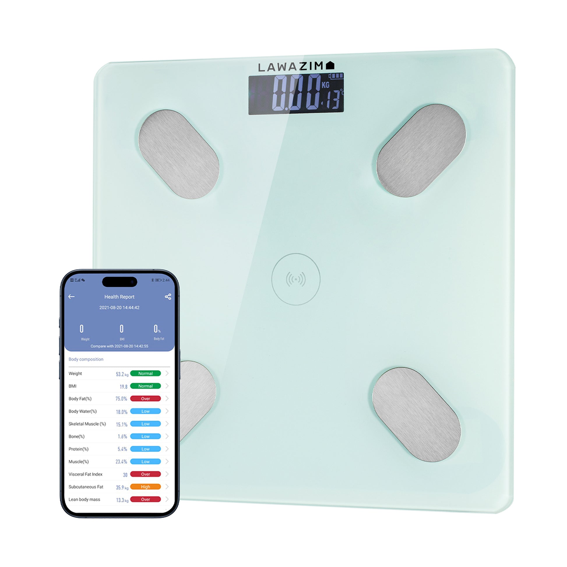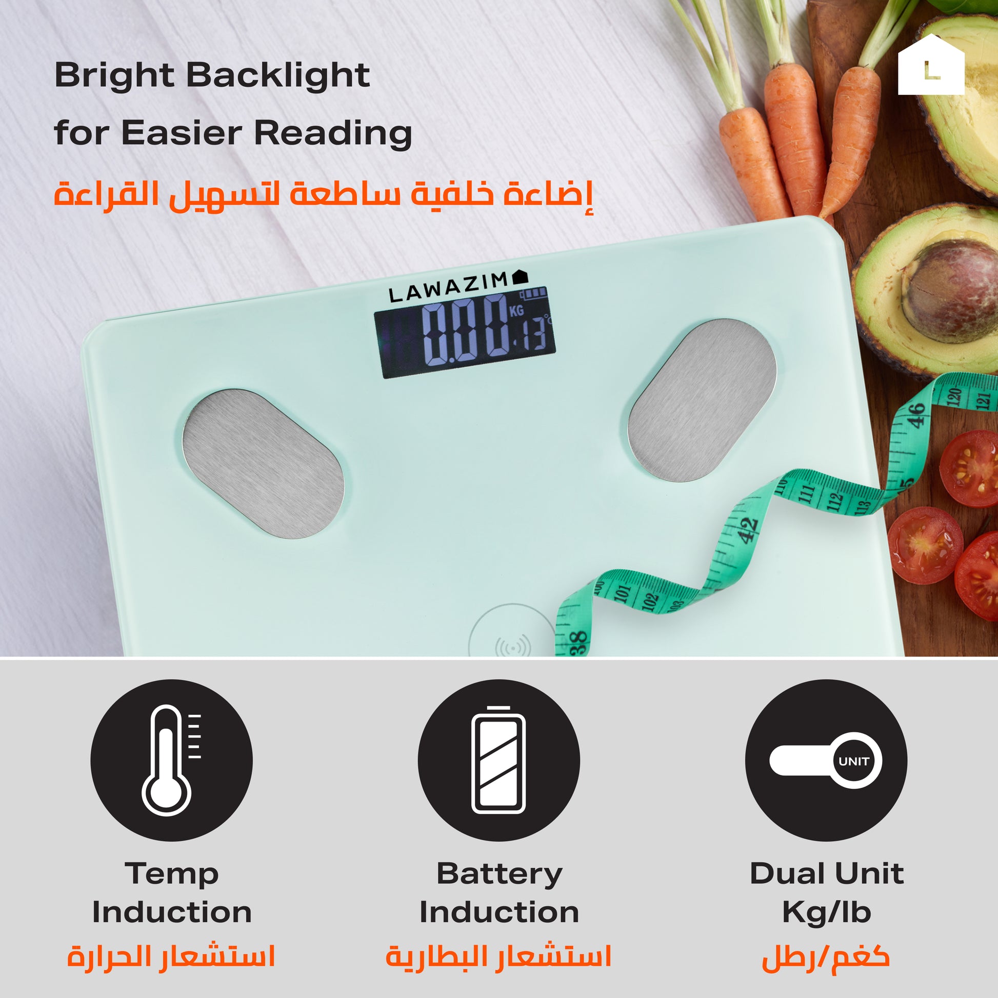 ميزان جسم رقمي مع بلوتوث - ميزان ذكي بمنصة زجاجية لتتبع الصحة، مراقبة اللياقة، وإدارة الوزن