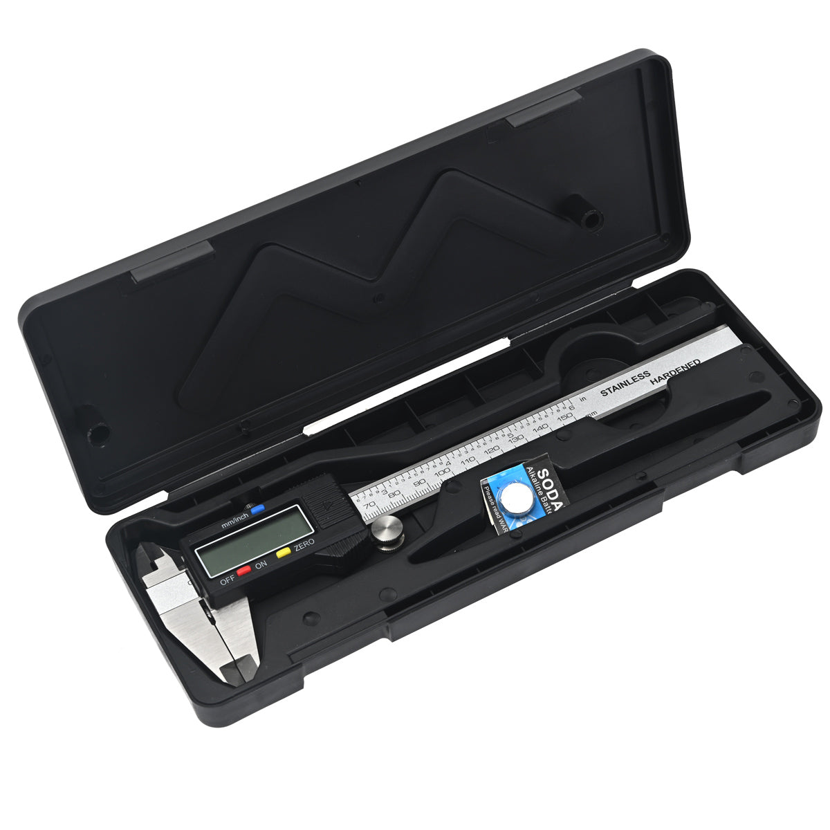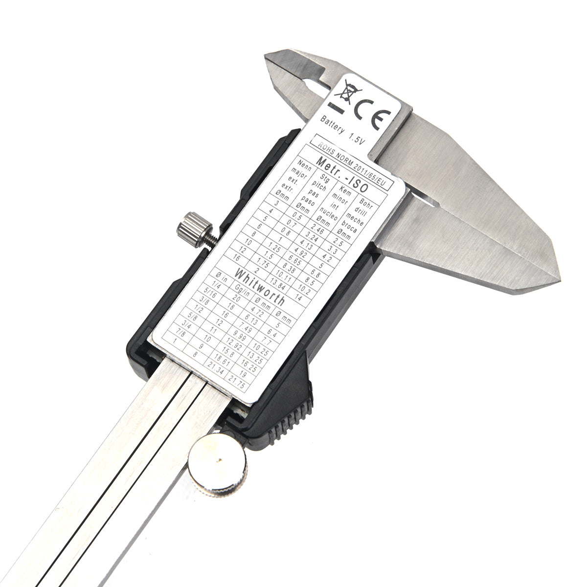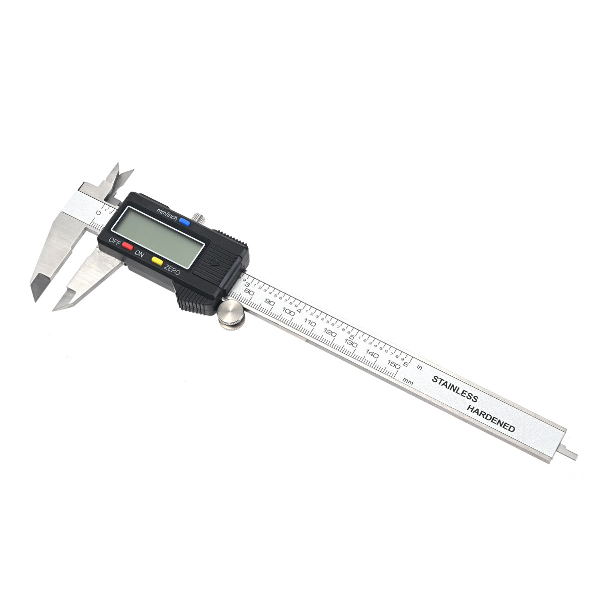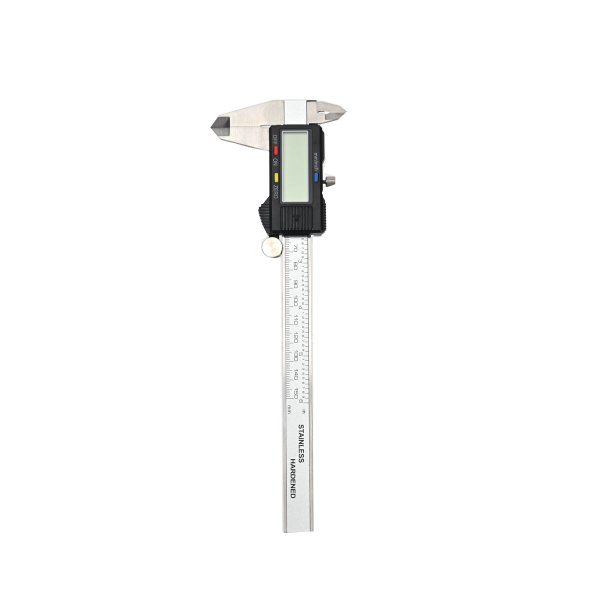 فرجار رقمي - 6 بوصات - فرجار فيرنيه من الفولاذ المقاوم للصدأ مع شاشة LCD، أداة قياس إلكترونية دقيقة لقياس العمق والخطوة